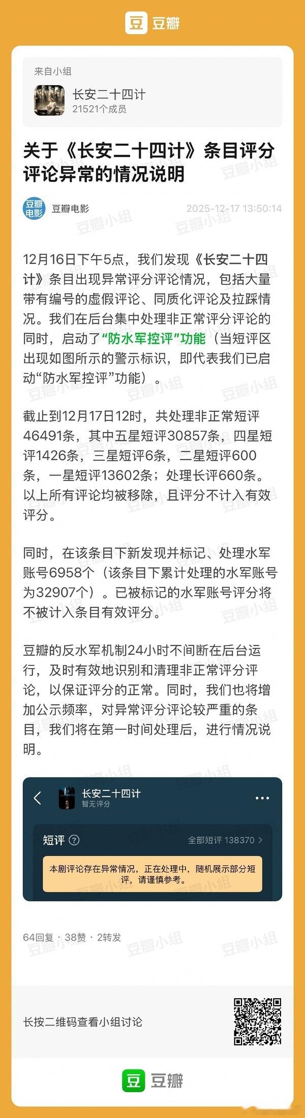 好家伙豆瓣回应长安二十四计异常情况长安二十四计