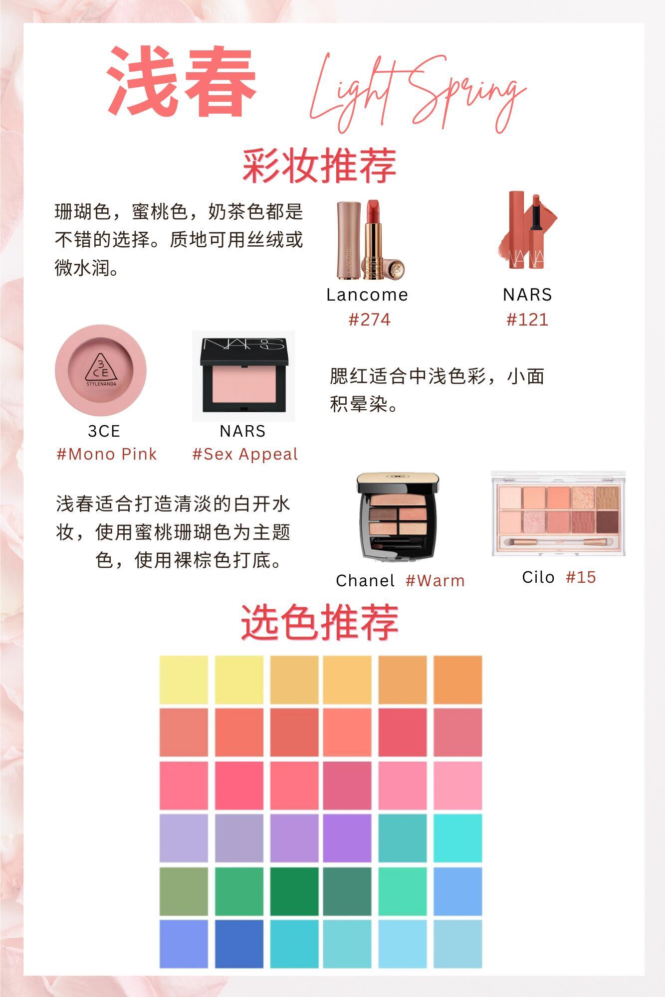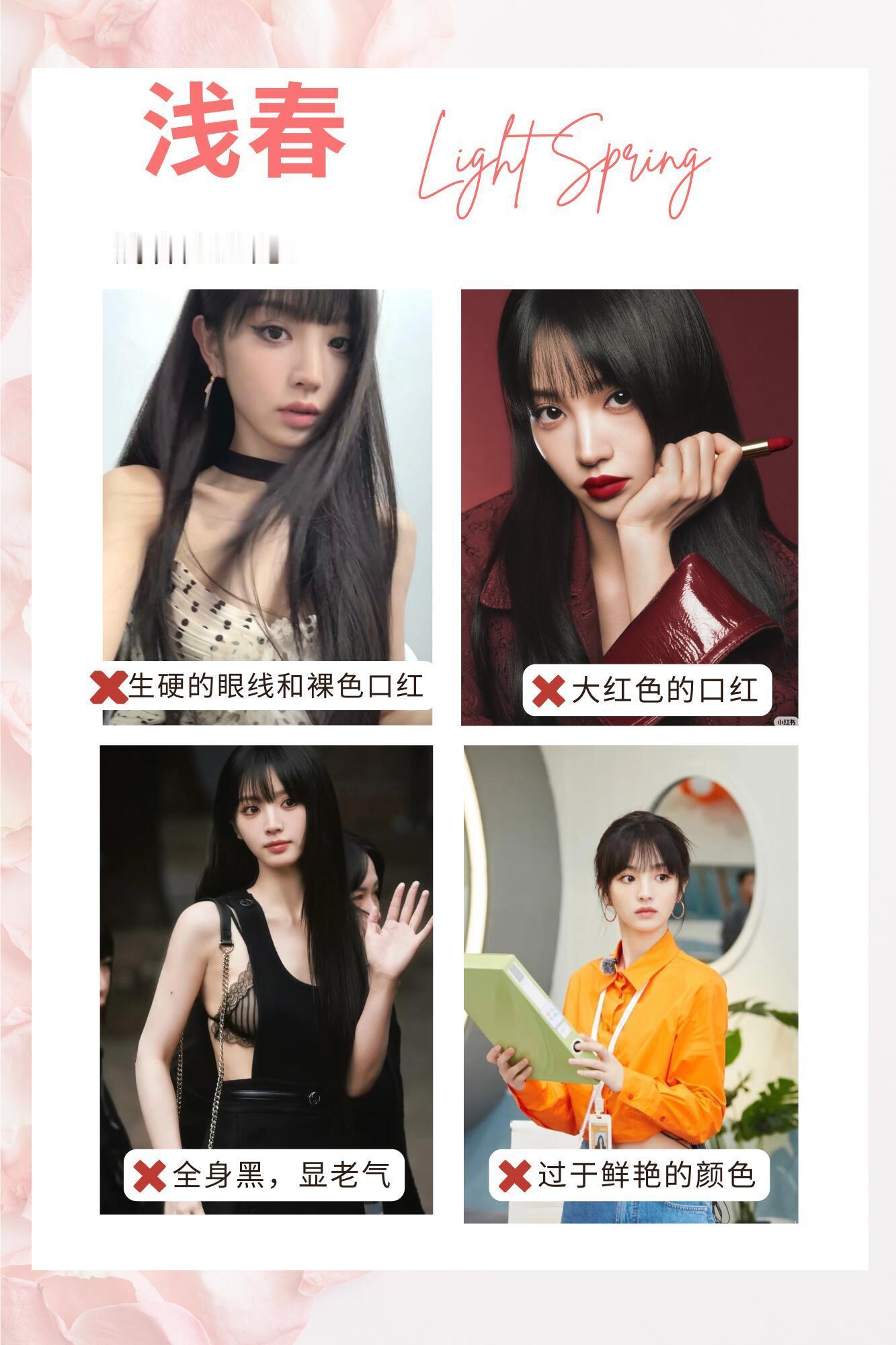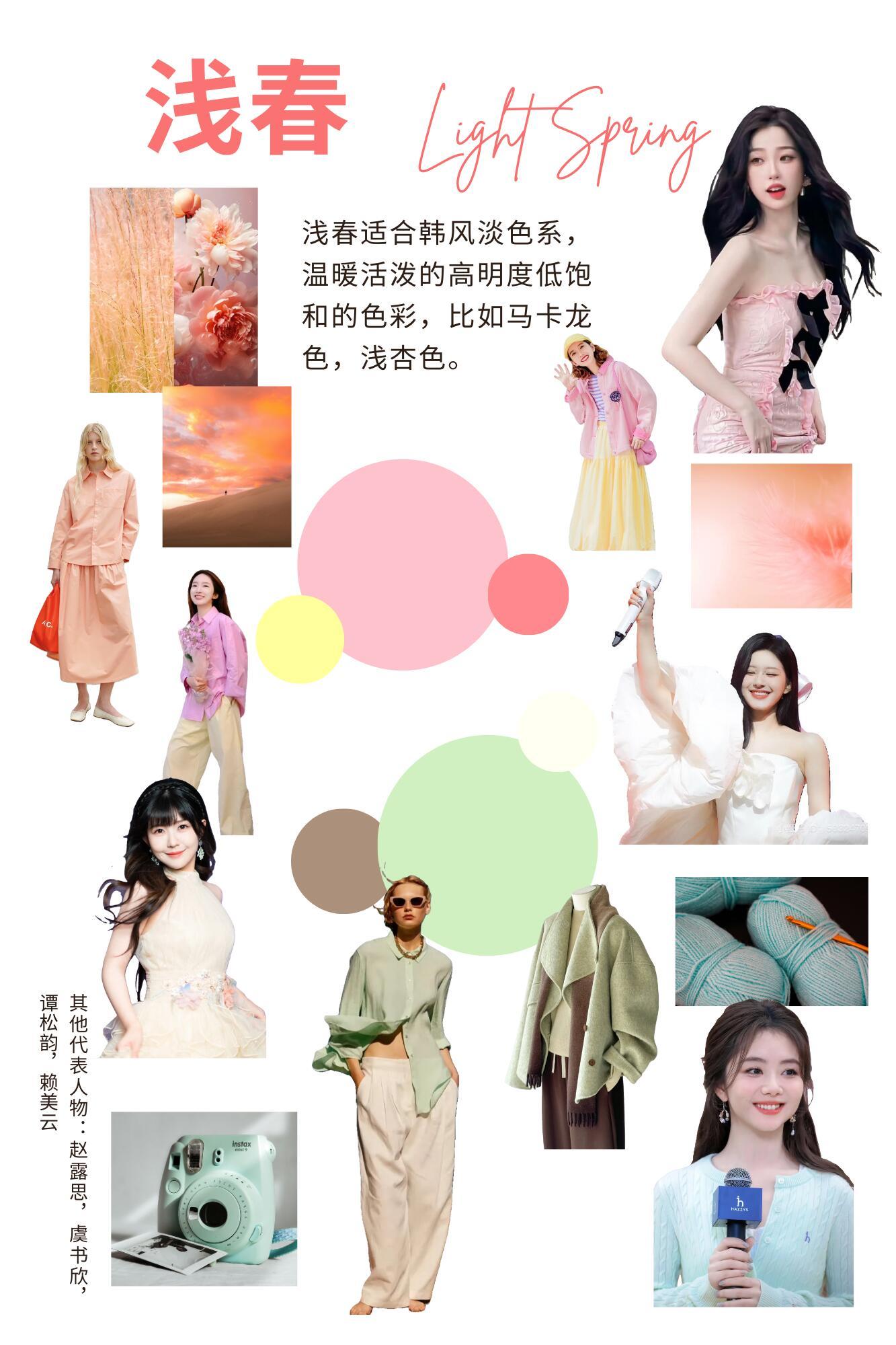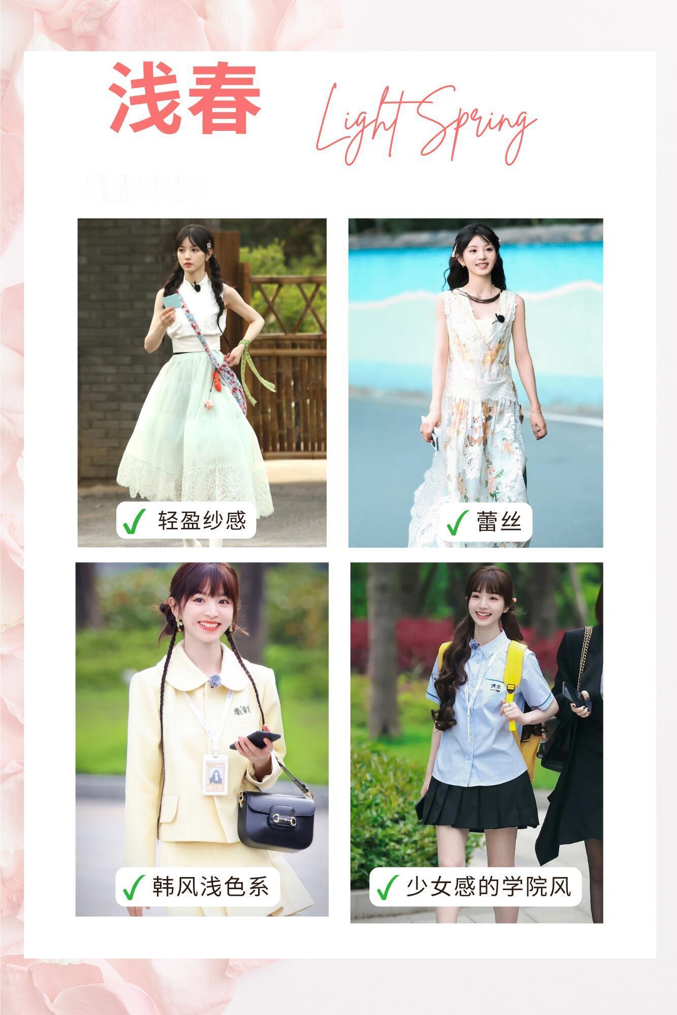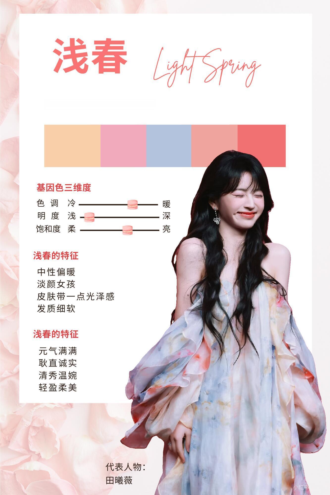 风格大赏浅春系穿搭 浅春型自带温柔细腻的生命力,宛如春日晨光般轻柔明亮。适配柔和清新的暖调浅色系,奶白、蜜桃粉、浅柠檬黄、浅杏色都是优选。需避开深色、高对比与高饱和色,避免显沉闷老气。妆容选轻薄底妆+珊瑚/蜜桃粉,饰品搭金色或玫瑰金,服装用薄纱、蕾丝面料,学院风、美式休闲、韩系风格都超契合。