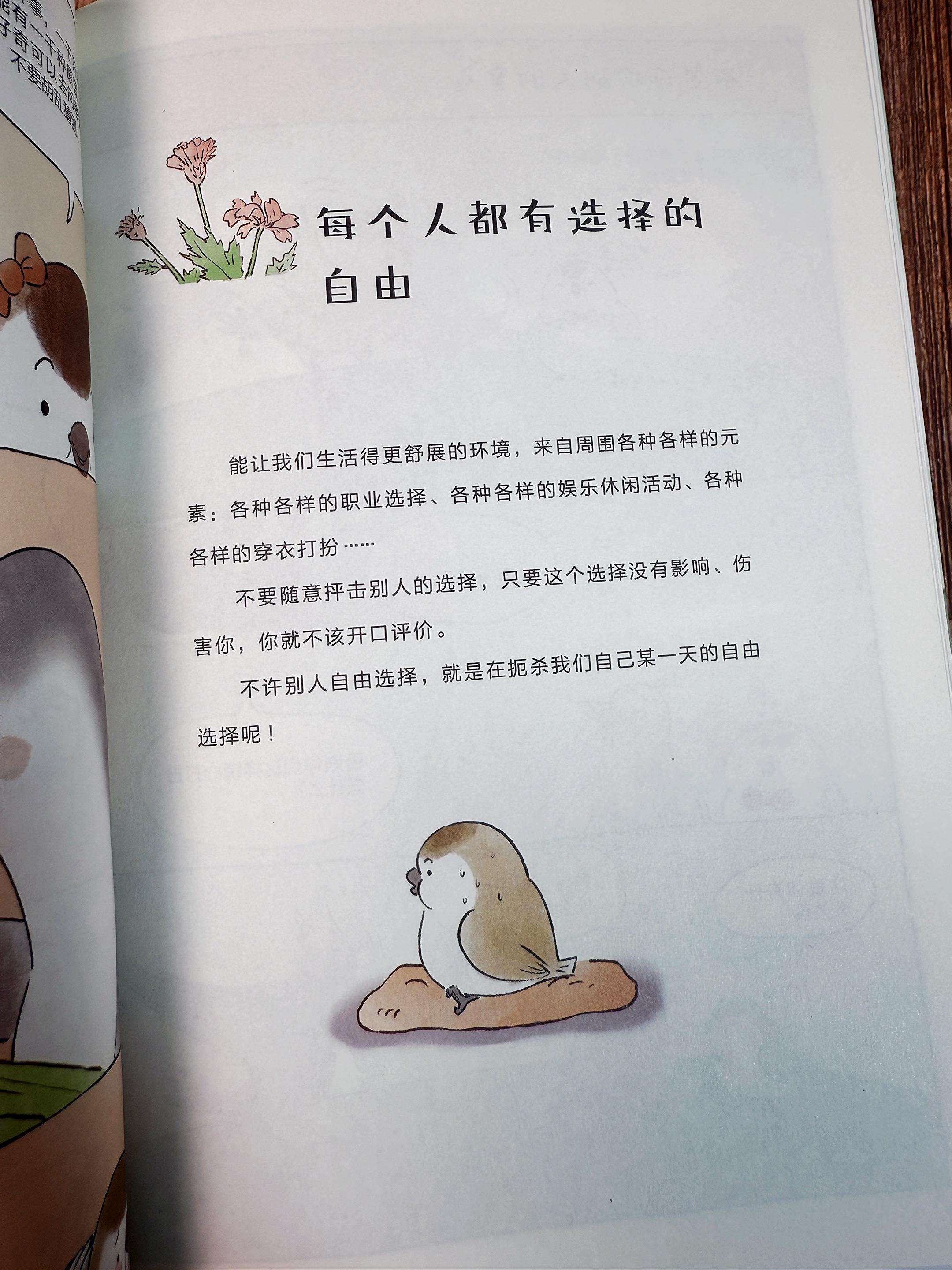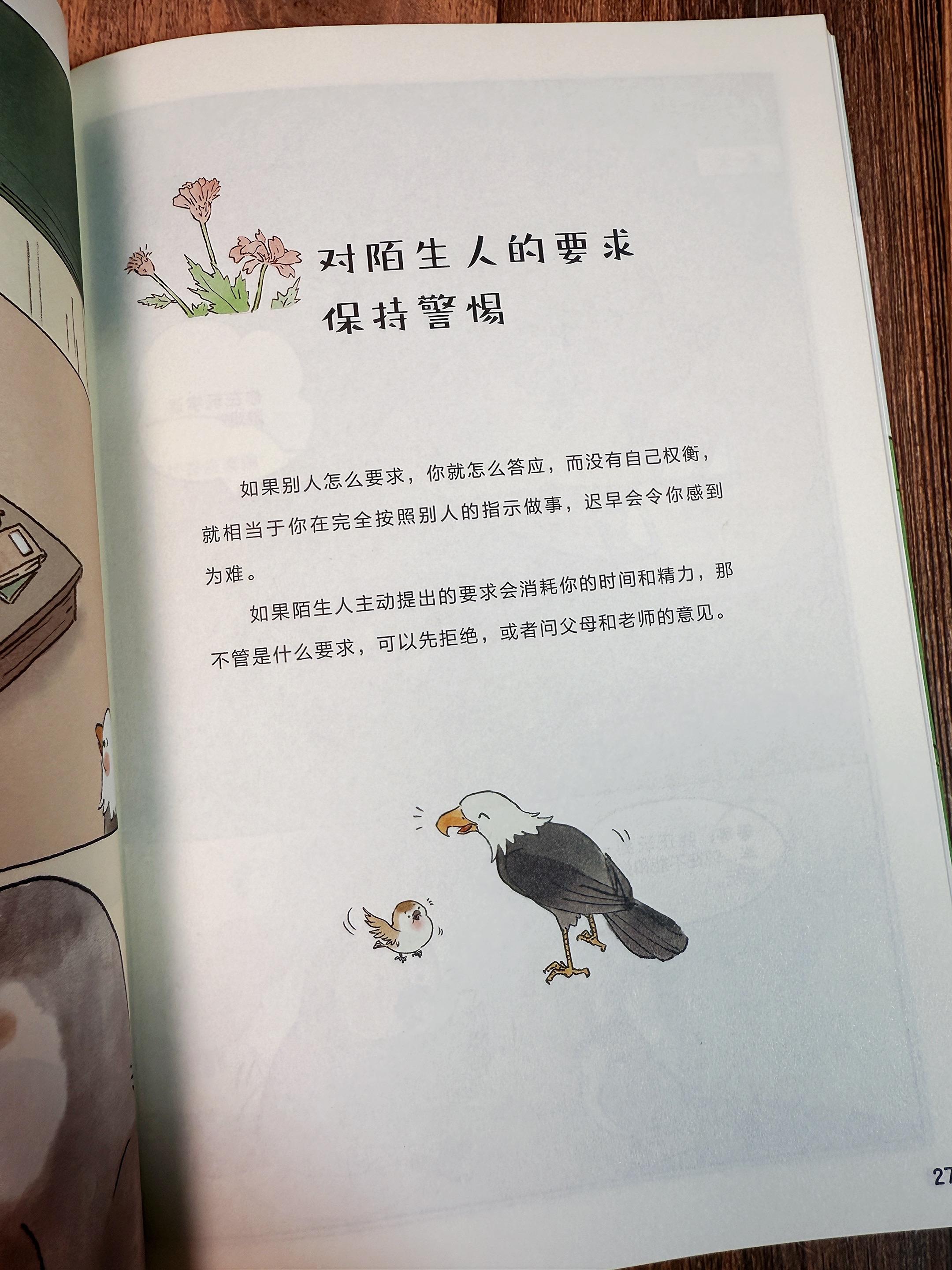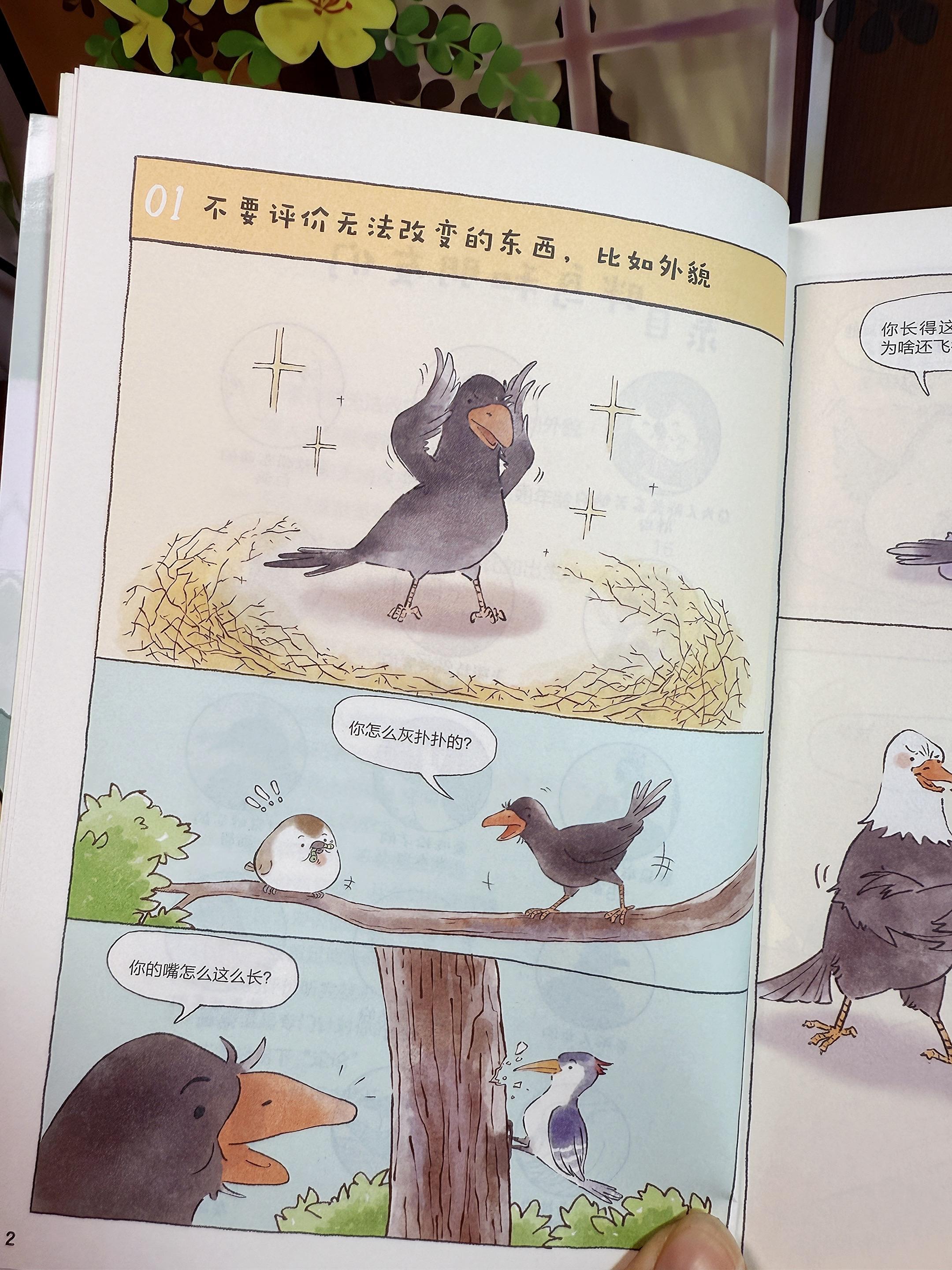 家人们!挖到一套给孩子讲“边界感”的宝藏漫画书!我一个大人看完都想给娃按头安利! 这套《傻鸟学校》一共4本,用萌萌的小鸟故事把 “怎么拒绝”“不随意评论别人”“分清自己和别人的事”这些大道理,讲成了孩子能看懂的小日常~孩子学会说“不”,不用再当“小包子” 知道“别人的事不是我的事”,不瞎掺和也不被绑 架 懂了“我的事我做主”,不委屈自己也不冒犯别人关键是画风软萌,每页都是小漫画,娃翻着翻着就 把 “边界感”刻进骨子里了,老母亲再也不用吼着教 “别老管别人闲事”“要学会拒绝”!