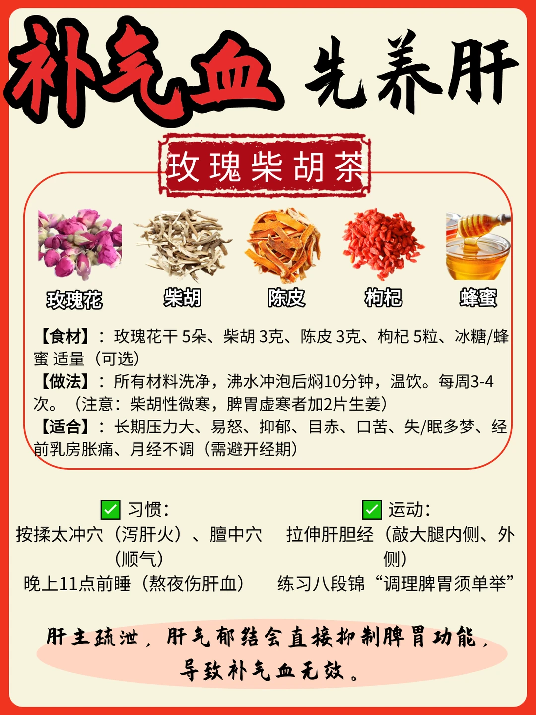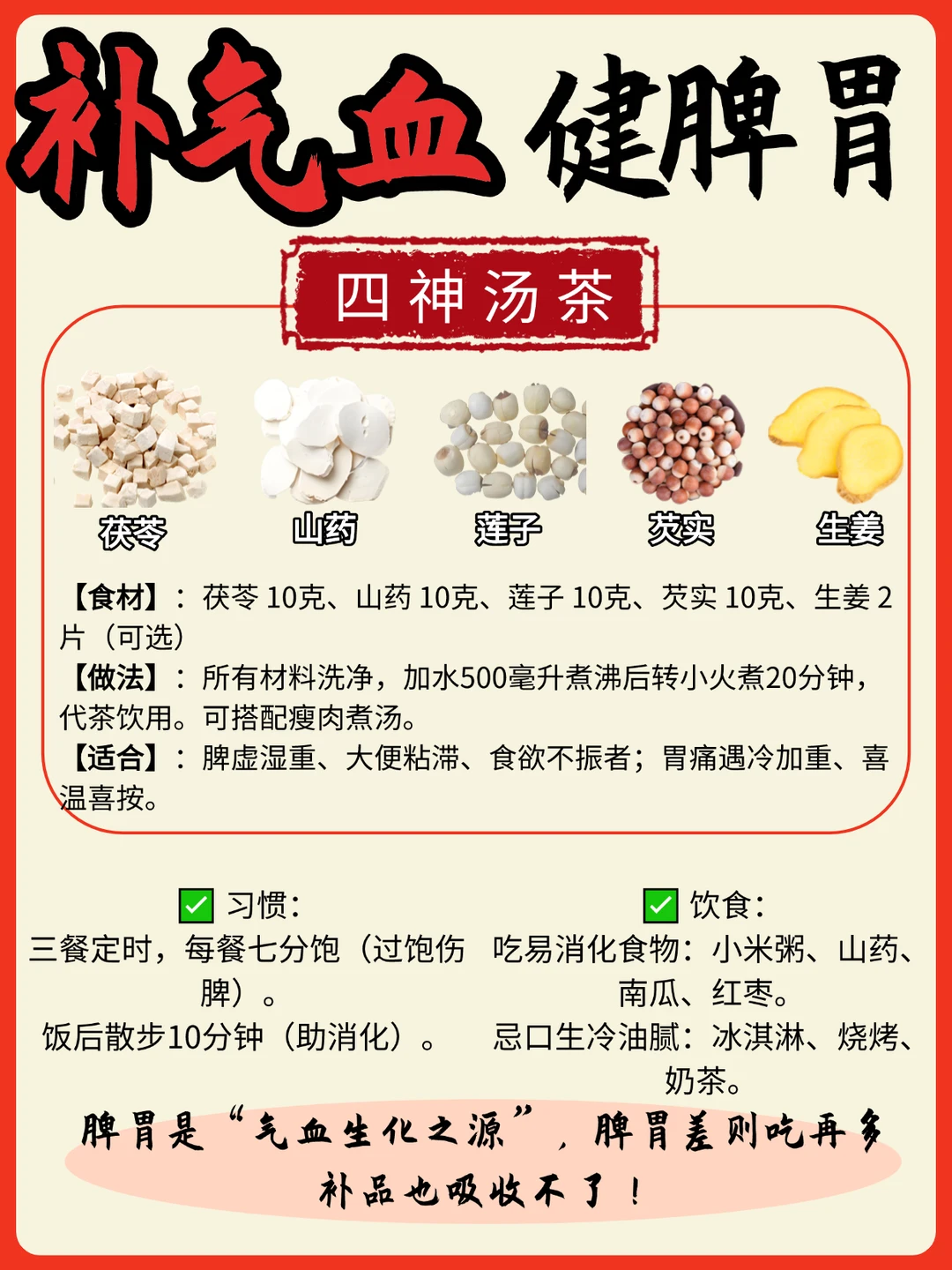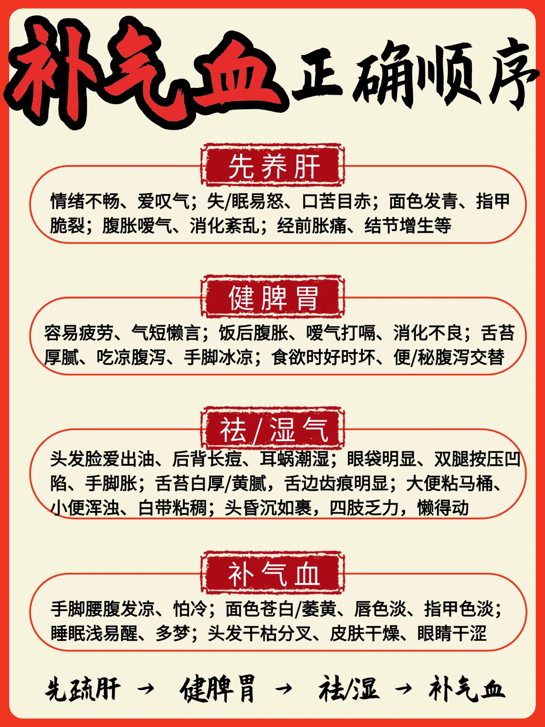 💡补气血正确顺序:先疏肝→健脾胃→祛湿→补气血! (顺序错=上火/胀肚/白花钱)