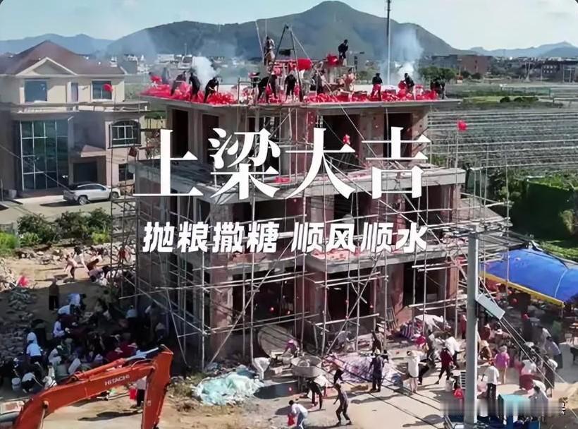 “上梁大吉”是老辈人盖房子时一定要做的一件大事,意思就是祝福房子结结实实、一家人平平安安。最热闹的环节就是“抛粮撒糖”——把粮食、糖果从房梁上抛向四面八方,既是为了给新家讨个好运,也是把这份喜气分给乡亲邻居,盼着住进去后吃喝不愁、一切顺利。 这个老规矩在全国很多地方都流行。像北方的河南、山东、山西等地,办得特别认真,常常会拜一拜木匠的祖师爷鲁班;而南方的江苏、浙江、安徽等地,讲究更多,说吉利话、贴红纸,还会拜拜当地的神仙。 不管时代怎么变,这份热热闹闹的仪式,装的都是人们对“家”的看重和盼头。它不只是房子盖成了,更意味着一个新日子开始了,里面藏着祖祖辈辈的念想,也装满了对将来幸福生活的盼头。房屋上梁 上梁风俗 上梁仪式 农村新房上梁 老家房子上梁 上梁布置 新房上梁对联
