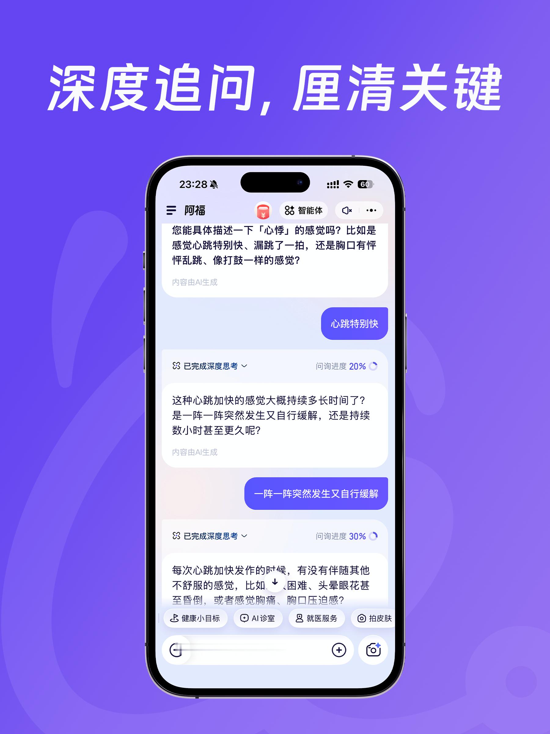 AI医生请回答 这两天到处刷屏的蚂蚁集团推出的 AI 健康管理应用【蚂蚁阿福】,我也用了一段时间了,探索后才发现,它根本不只是个能聊天的问答工具,而是藏着一整套超实用的健康管理办法,这几个超好用的功能,一定要收藏起来。✅AI 诊室几分钟帮你判断轻重缓急!使用感像在跟专业医生沟通,一套流程下来和做了预问诊一样,描述症状的时候可以选择打字、也可以打电话或者语音输入。之前心跳有点快,去问阿福了,它会主动问我是明显的心慌还是情绪激动的情况下发生的?、有没有其他伴随症状比如胸痛或者呼吸困难,持续时间多久有没有心脏相关的检查报告?,不用我费劲组织语言就能精准说清不适。最后根据实际情况,综合给出属于你的参考建议,而不是那种全网通用的模版,真的很严重会让你去线下就诊,阿福上就能一键跳转挂号。✅健康档案-管理全家健康只要把过往的病历、用药史、体检报告上传到阿福,就能给自己生成健康档案,也可以增加父母或者孩子的,这样这样每次咨询时,阿福就能综合这些信息,给出真正适合的建议,越用越懂你。✅“全能照相机”这个功能解决了我好几个日常难题:拍体检报告能直接解读,还能把多次的数据放在一起对比,不用再对着密密麻麻看不懂的指标头疼;偶尔皮肤起个小疙瘩,拍一下就能识别常见问题,心里也有底;出门带药怕记混禁忌,拍下药盒就全清楚了,还能设置服药提醒,我之前总忘吃维生素,现在跟着提醒再也没漏过,实测准确率挺高,日常小问题基本都能应对。✅新更新的“健康小目标”功能帮你把健康习惯坚持下去比如你可以设置用药提醒,阿福会准时推送通知,对我这种常忘事的人很友好。你也可以设定每日喝水、运动等小目标,让它帮忙打卡督促以前总靠意志力坚持,经常半途而废,现在跟着提醒走,健康管理慢慢就融入生活了,一点不费力。以前用健康 APP,都是有问题了才想起来查一下,解决完就搁置了,健康管理一直零零散散的。但用蚂蚁阿福的这段时间,我明显感觉健康管理变得系统又高效 —— 就像有个贴心朋友时刻记着我的健康事,该喝水、该吃药、该运动了都会提醒,专业的医疗资源也不用特意找,随手就能用到。健康管理从不是 “临时抱佛脚”,也不能只停留在 “问一问”。解锁蚂蚁阿福的隐藏功能,就是用智能工具构建更高效、全面的健康防线。早发掘、早用透,不仅能解决当下小不适,更是对健康的长远负责。科学使用是发挥工具价值的第一道防线,用对功能,才能让健康管理事半功倍。戳此下载蚂蚁阿福