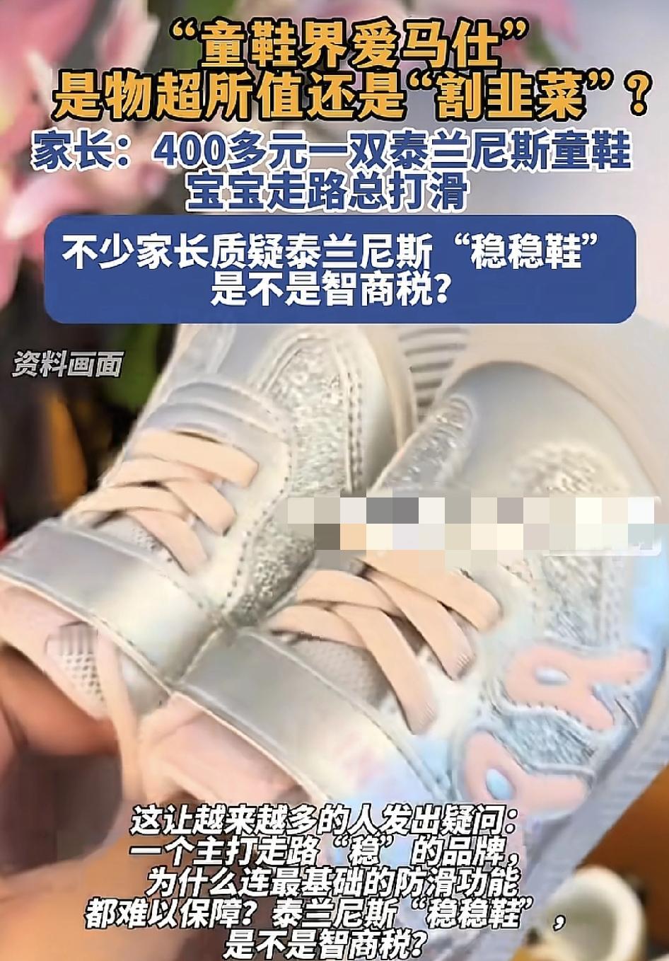 北京海淀一位妈妈给孩子从商场买了一双价值400多元的泰兰尼斯童鞋。这双被外界称为最稳的鞋子,妈妈却发现孩子经常会在走路时打滑。发现这种鞋子的底纹太浅太平,与此同时,很多妈妈都有相同的担忧。很多宝妈之所以选择买一双价格这么贵的同学玩,除了它是品牌以外,还是因为穿得放心。不过很多佛系的妈妈觉得孩子的鞋一年一换合适就好,没必要追求啥品牌。