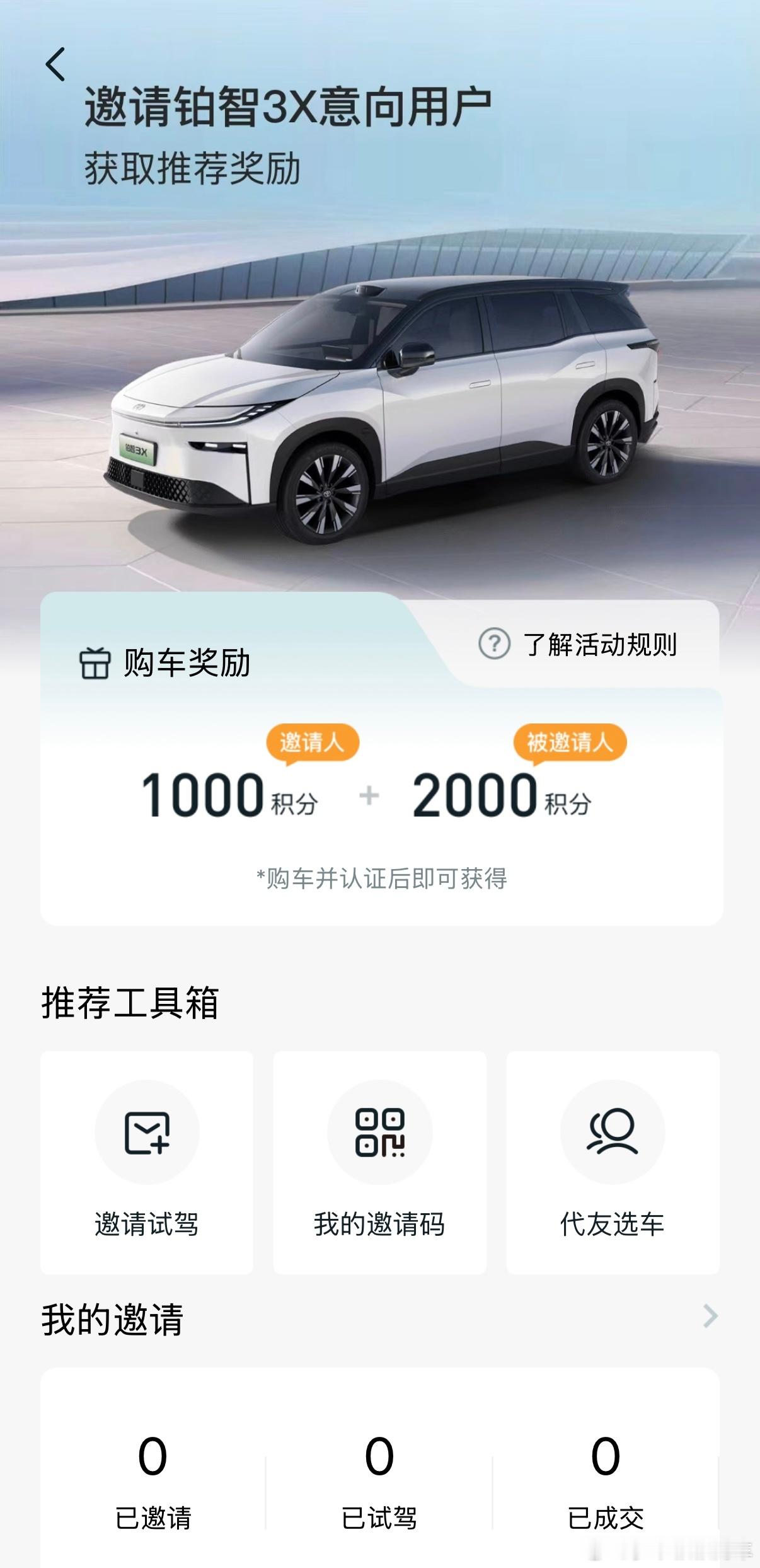 转回微博,在广汽丰田新能源App上才看到,原来铂智3X也是有推荐奖励的。 广州