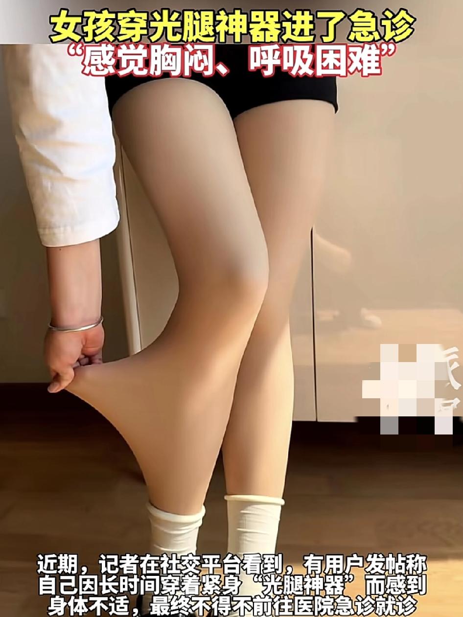 光腿神器是冬季女性特别喜欢穿的一款连脚袜。不过近日有不少网友称自己长期穿着这种光腿神器出现了胸闷呕吐,呼吸困难。等状况,这种光腿神器为了达到美观的效果,设计上都会过于紧绷,这就压到了人的很多神经,淋巴管等等,长期穿一定会影响血液循环和新陈代谢。有的商家为了减少成本,甚至会运用一些质量差的布料,就更容易诱发皮肤过敏,炎症。