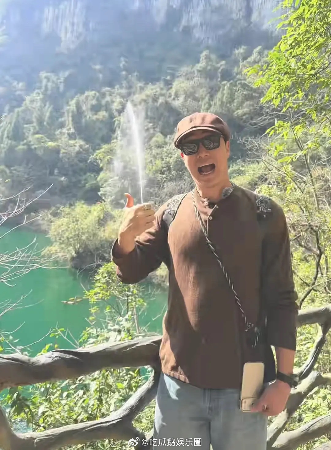 刘翔带老婆游清江画廊,爬山大喘气体力下降,42岁穿得像18大学生!