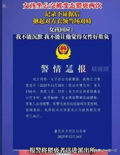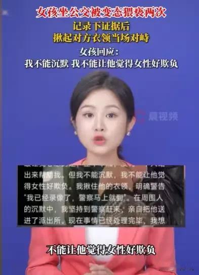 重庆,女孩坐公共汽车,人挤人,突然感到有只手在摸她,她看着周围的人都对此视而不见,她忍了,结果,那只手第二次又摸了过来,这一次,她忍无可忍了,她进行了漂亮的反击,将摸她的那个男子送进派出所,女孩说,我不能沉默,我不能让他觉得女性好欺负! 好不容易等到公共汽车来了,人很多,女孩赶时间,也不在意,一跃身就挤上了公交车。 车上的人确实不少,女孩刚上车没多久,就感觉特别的挤,女孩没在意,以为只是人多的缘故,挤一点也无所谓。 可这也太挤了,她一直感觉自己有人贴着自己一般,女孩只能往空余的地方挪了挪,她还一直以为,这只是太挤而已。 但这挤得不对劲,她突然感觉有只手过来摸她,她很快意识到,有人趁挤,搞小动作,占便宜了。 可这一次,她无凭无据,她也不敢出声,毕竟她还摸不清对方的企图,但她已经很气愤了,觉得身边的这个男子,竟然在光天化日之下,众目睽睽之中,做出如此让人大跌眼镜之事,实在令人气愤。 她希望男子只是仅此而已,不要再骚扰她,她可以在没有证据之下,就此不了了之。 但这个男子胆子实在太大了,得逞了一次,又来了第二次,那只手又摸过来了。 这一次女孩决定反击,她首先就是要拿到证据,她默默地拿出手机,将男子的一举一动全部拍下来。 男子浑然不知,还在得逞的成就中得意。 很快女子拿到证据之后,一个反手过来,就抓住了男子的衣领,当面进行对峙。 她问,男子为何要摸她?男子一开始的时候,看着全车的人都沉默寡言,只是眼睛看过来,并没有帮女孩说话,他和女孩对抗着,还想否认自己的行为。 女孩拿到证据,可不想轻易地放过男子,她大声地说道,她要将男子送进派出所。 这一刻,男子才意识到自己遇到事了,他看着女孩那坚定的目光,即使全车的人都没有帮女孩说一句话,他依然感受到女孩的来势汹汹。 如果他真的被送进派出所,被家人朋友知道,事情就闹大了,男子赶紧求饶道:“我错了!”他希望女孩放过他。 女孩依然眼神坚定,一手抓着男子的衣领,一只手报了警,她将男子送进了派出所。 整个过程,女孩干得干净利落,将猥亵她的男子,亲自送进派出所,整个过程她为自己的勇敢,感到佩服,同时,事后,她也感到害怕。 当时就她一个女孩,面对一个壮汉,为自己讨个公道,车上那么多的人,有人是看见的,他们却视而不见。 女孩在为自己讨公道的过程中,车上的人没有一个人敢帮她说一句话,若是她真遇到亡命之徒,或许她的结果就不一样了。 她心有余悸,回想起这件事,虽然有些害怕,但她不后悔。 当一切有了结果,女孩才分享自己的这个经历和感受,她也希望能提醒广大的女子,出门要懂得保护自己的。 她告诉广大的女子,如果遇到这样的事情,一定要冷静,先把证据拍摄下来,然后再勇敢地站出来,要自己为自己讨个公道。 她说她不能沉默,不能让男子觉得女性是好欺负的。 当自己都不沉默,犯罪之手才有可能停止,如果沉默下去,只能成为忍气吞声的受害者。 同时发生这样的事件,有一点,她很不舒服,在全车的人都知道这件事的经过时,却没有人敢站出来为他说一句话,让她孤军奋战,要是胆小一点的女孩,遇到这种事,或许就忍气吞声了。 所以女孩更要告诉广大女子,遇到这种事,在保护自己的同时,不能沉默。 女孩遇到的这样的事情,没有忍气吞声,她勇于为自己讨回公道,她的勇敢是值得人敬佩的,男子应当为自己的行为付出代价,他的行为已经构成了猥亵。 《治安管理处罚法》第44条规定:猥亵他人的,或者在公共场所故意裸露身体,情节恶劣的,处5日以上10日以下拘留;猥亵智力残疾人、精神病人、不满14周岁的人或者有其他严重情节的,处10日以上15日以下拘留。 事后,女子已经将男子送进了派出所,民警将会对男子做出相应的行政处罚。 我们应该为女孩的勇敢点赞,同时女孩也告诉了广大的女子,遇到这种事情,要懂得保护自己,更要懂得为自己讨回公道。 你是否敬佩女孩的做法?
