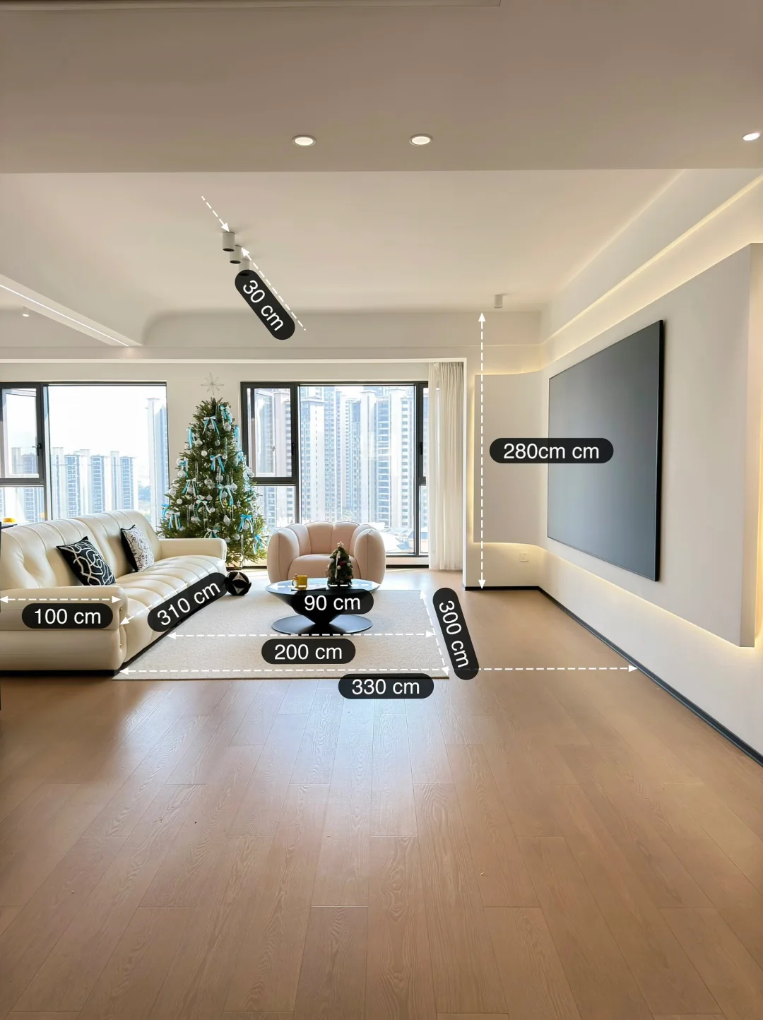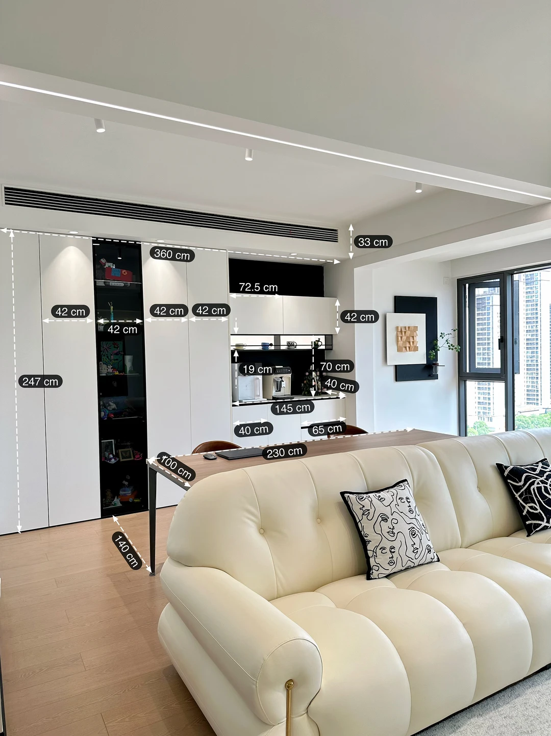 ▫️hi大家好!这里是宜可可的家🏠 我家被问最多的就是尺寸,分享给大家参考👇: ▪️房屋情况说明: 建筑面积140平,套内118平 ▪️客厅区域: 横厅尺寸:开间7米 x宽6米 客厅大白墙 沙发距离电视墙:330cm 沙发尺寸:310cm 地毯尺寸:200cm*300cm ▪️餐厅区域: 开间2.6米*宽2.7米 餐桌尺寸:60x80cm ▪️吊顶: 客厅中间无吊顶,层高280cm 单眼皮边吊高度:33cm 我家费用清单一起附上👇 封阳台:11735 水电材料+工费:9500 防水:1000 砸墙铲顶:550 (回收旧门抵掉1300) 水泥沙杂费:5000 瓷砖及材料+泥工工费:16500 木工工费+材料:8500 石材:2200 水槽:459 油漆+工费:9500 所有的门:10500 地板:23726 踢脚线:947(自己安装所以没有工费) 美缝:1500 柜子:43000 集成吊顶:2500 开荒:800 淋浴房:3200 空调出风口:350 燃气相关费用:750 全屋灯具:6300 开关插座:950 洗衣池:2400 👇客厅软装 沙发:3500 单人沙发:2751 餐桌椅:3800 地毯:1500 茶几:1900 大长桌:1350 窗帘:2300 👇主卧软装 床:2780 床垫:1910 窗帘(主卧+儿童房+客卧):1700 飘窗垫:300 👇儿童房软装 床+床垫:3035 窗帘在主卧清单包含了 👇客卧软装 床+床垫:4700 窗帘在主卧清单包含了 👇卫生间 马桶:3500 花洒:2000 浴室柜:1900 👇电器清单 洗碗机:4700 热水器:1080 风管机:11500 空调挂机:8400 烟机燃气灶:3200 冰箱:5700 投影+幕布:6500 洗衣机+烘干机:4349