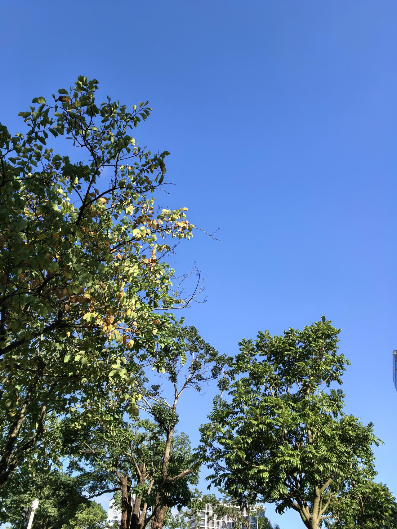 深圳的冬天就这么美。我们楼下的树木郁郁青青,生机勃勃。透过葱葱茏茏的树枝看天,天