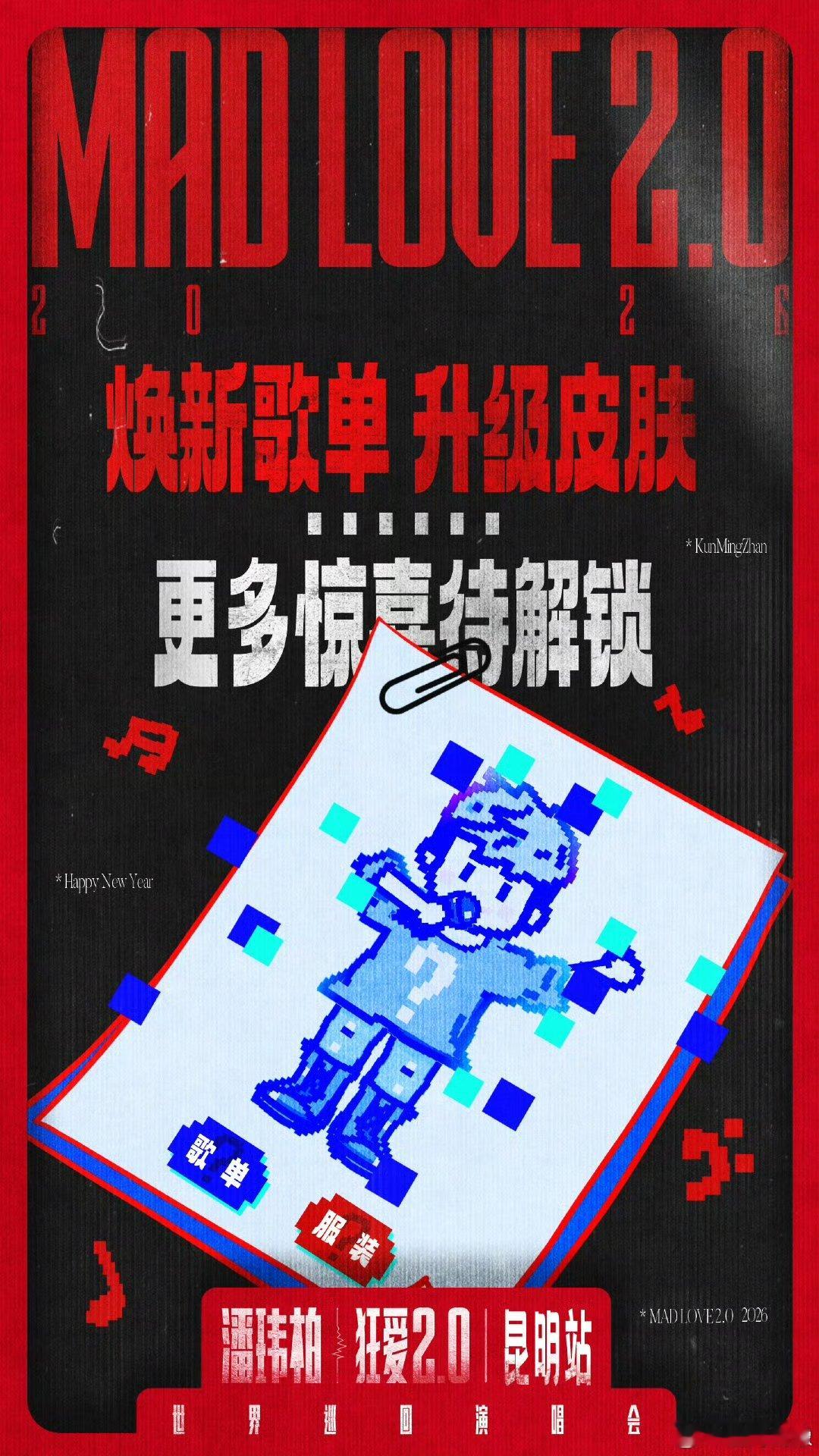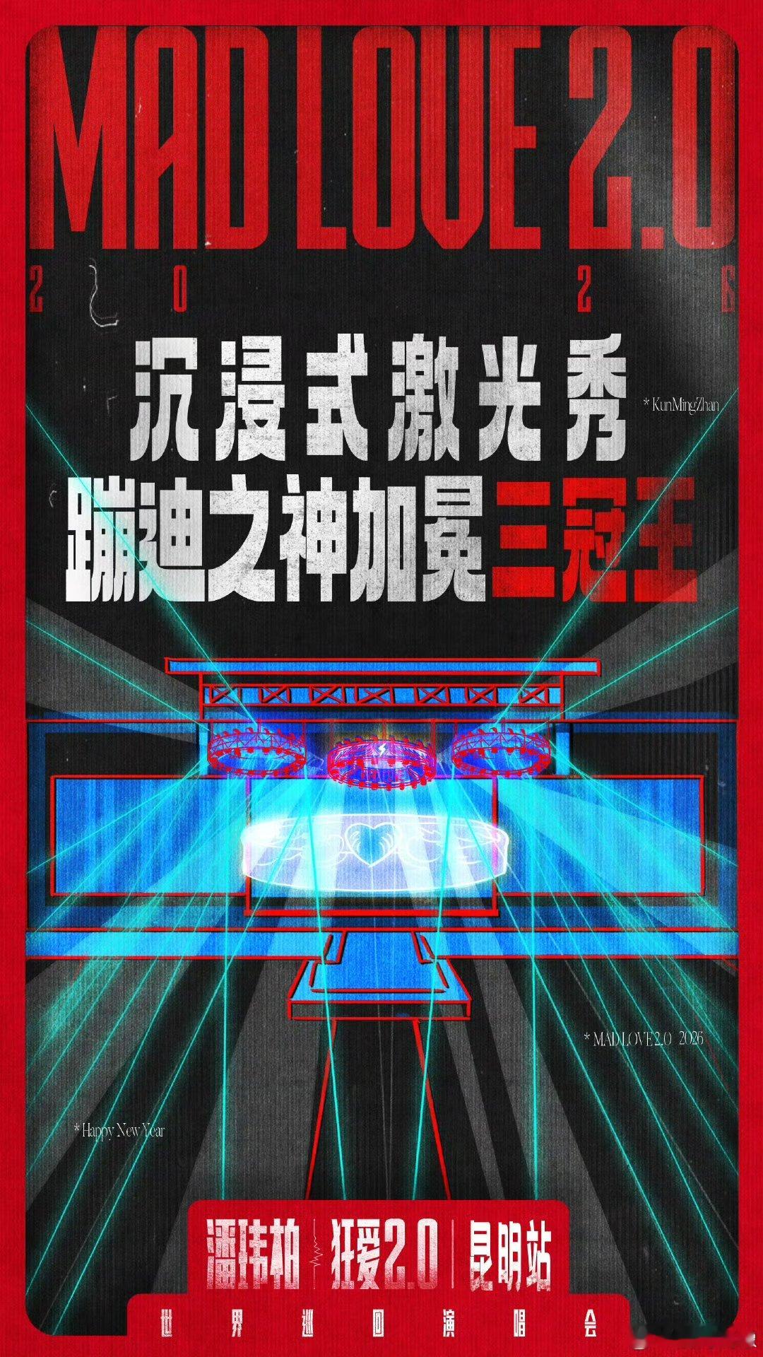 潘玮柏演唱会长宽高plus版 潘玮柏新年限定版演唱会来了!昆明站舞台全方位plus,延伸台零距离互动,步步高升机高空开唱,新服装+金曲,2026开年就在燃炸现场跨年~