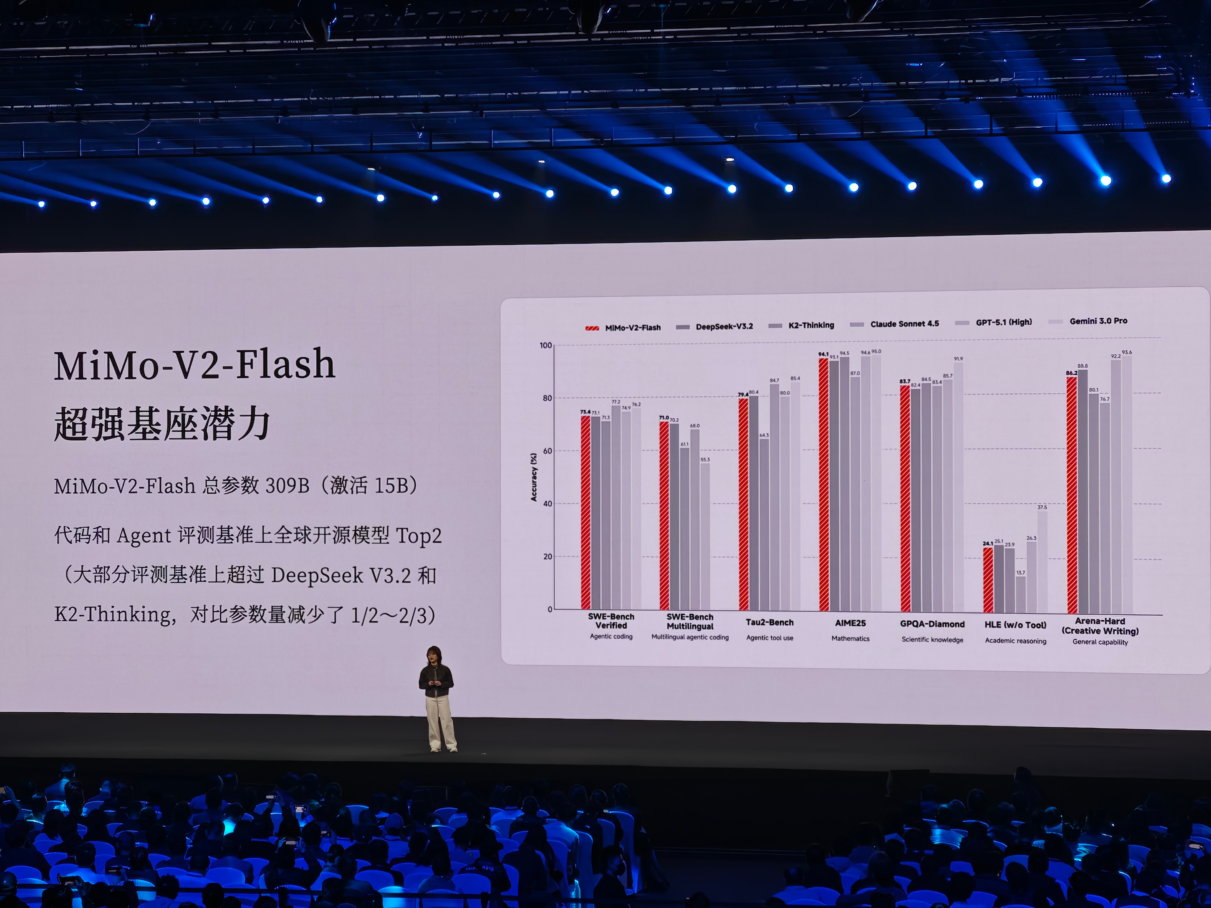 昨天去2025小米“人车家全生态”合作伙伴大会现场,全程干货满满。这不仅仅是生态大会,更是小米硬核科技的集体秀场。震撼的是小米生态的规模:AIoT连接设备破10.4亿台,全球月活7.42亿,CarIoT都和比亚迪、广汽丰田等4家车企合作。开车靠近小区自动触发回家模式,门锁解锁+空调调温一气呵成,手机、汽车、家居真的实现无缝联动,再也没有设备割裂感。而且新公布的MiMo-V2-Flash大模型!3090亿参数,还以MIT协议全开源,指令响应快到离谱。相信不少朋友体验过刚刚公布的MiMo,响应非常快。未来五年2000亿研发投入,开源开放的姿态还吸引了超120万开发者入局。能明显感觉到,小米已经不是在做单一产品,而是用大模型当神经网络,把人、车、家串成了真正的超级生态,真的看到了未来智能生活的样子!