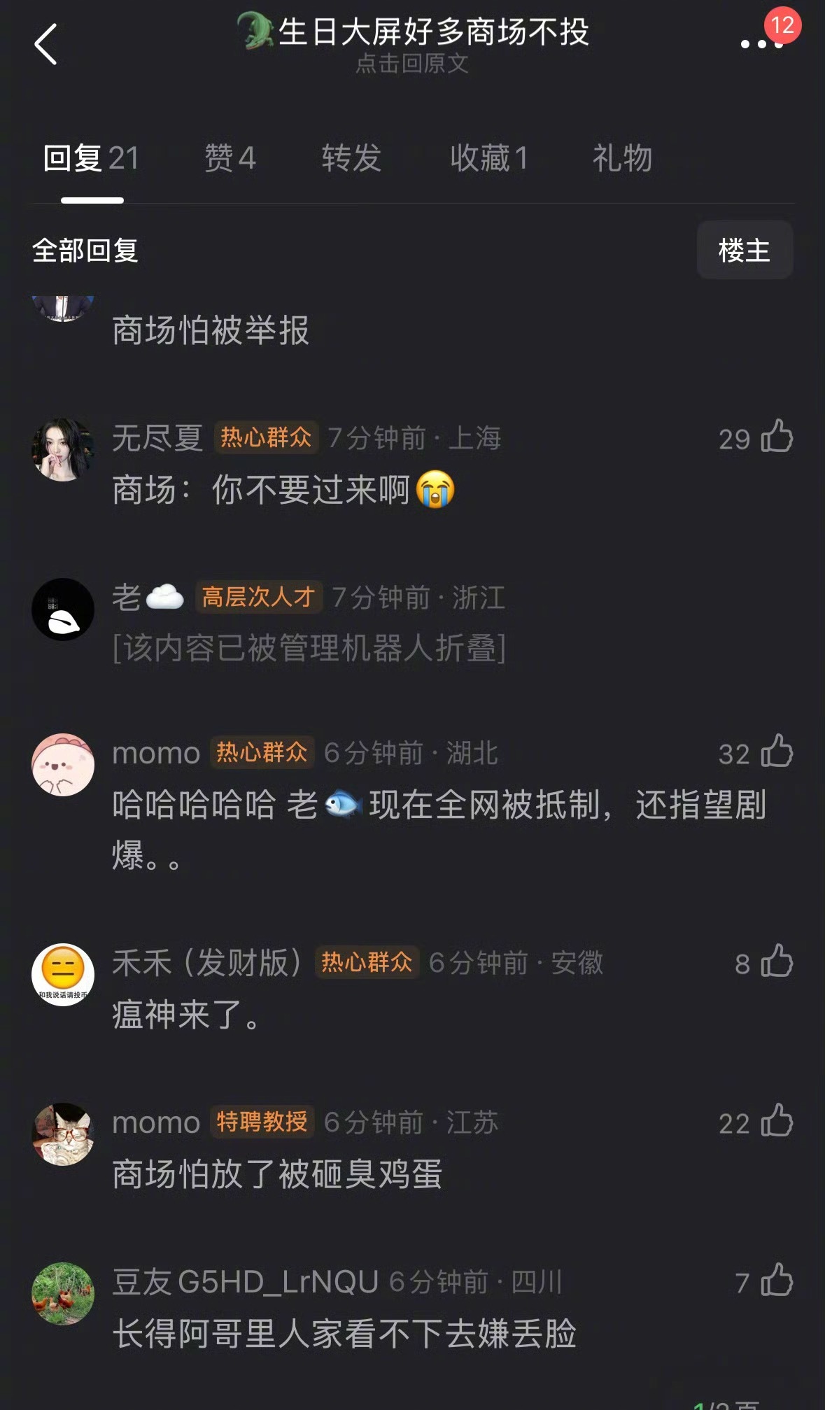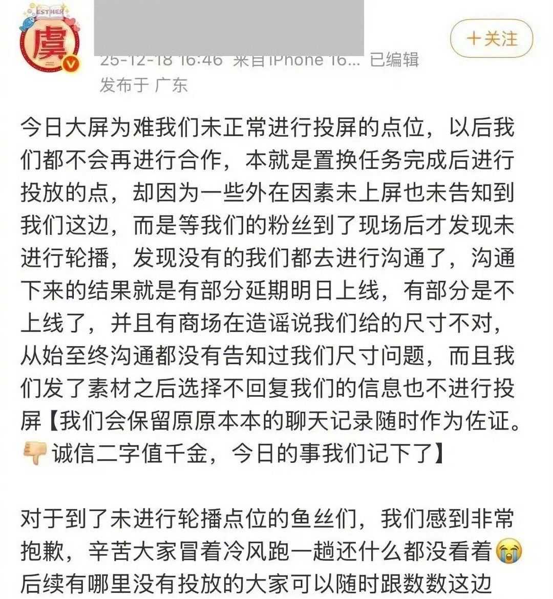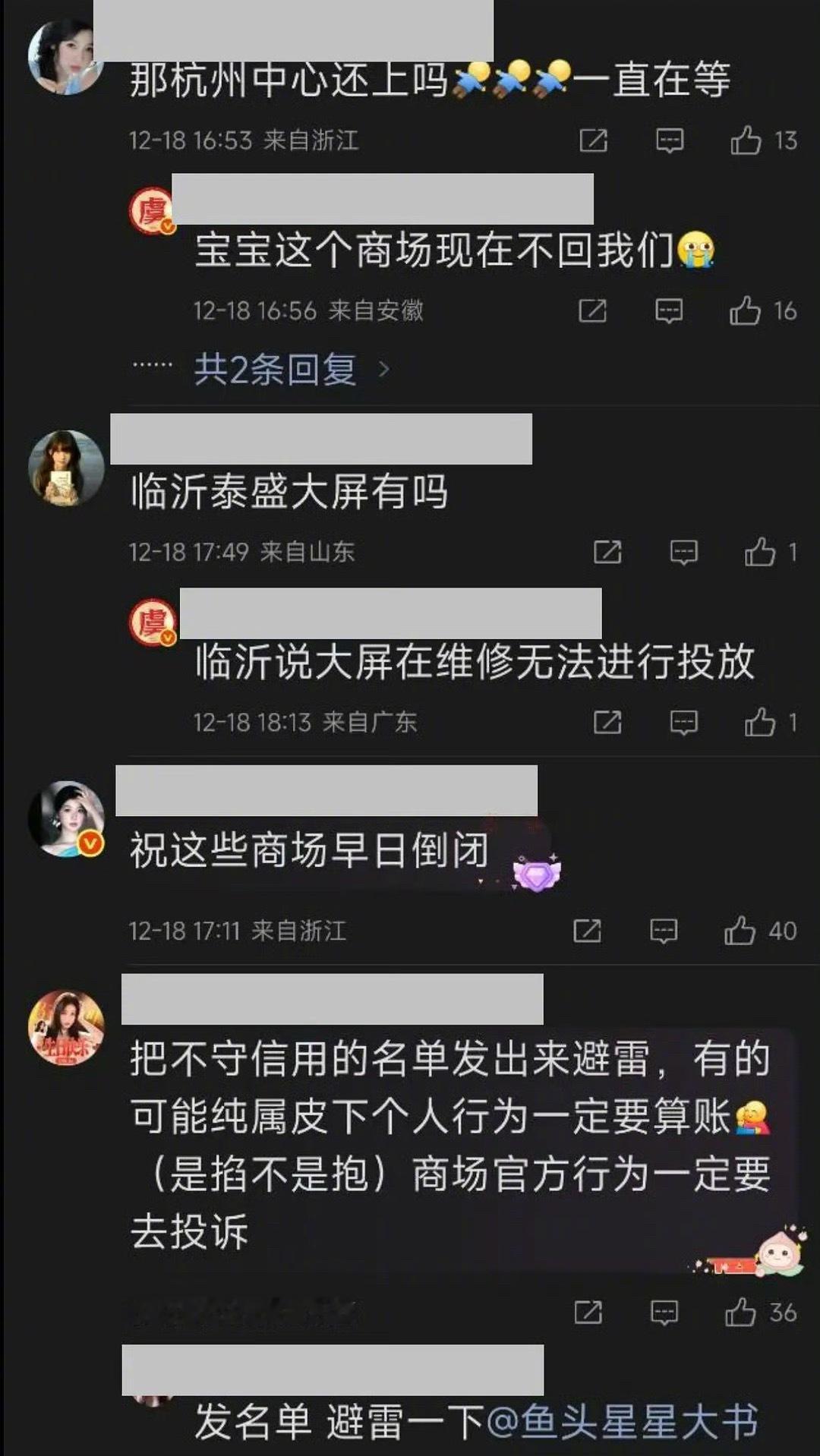 虞书欣持续被退货,好多商场都不接收她的大屏广的投放了。