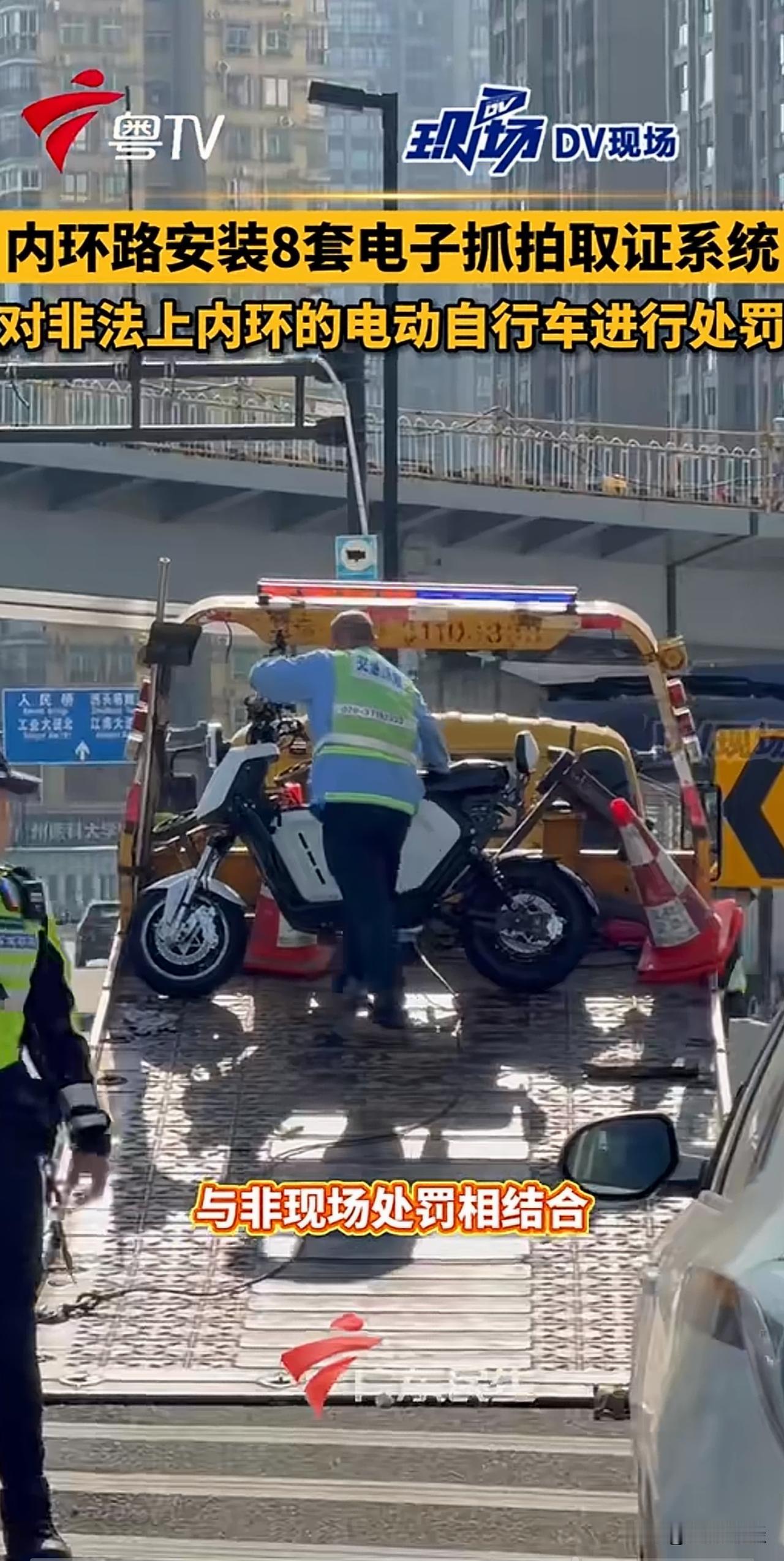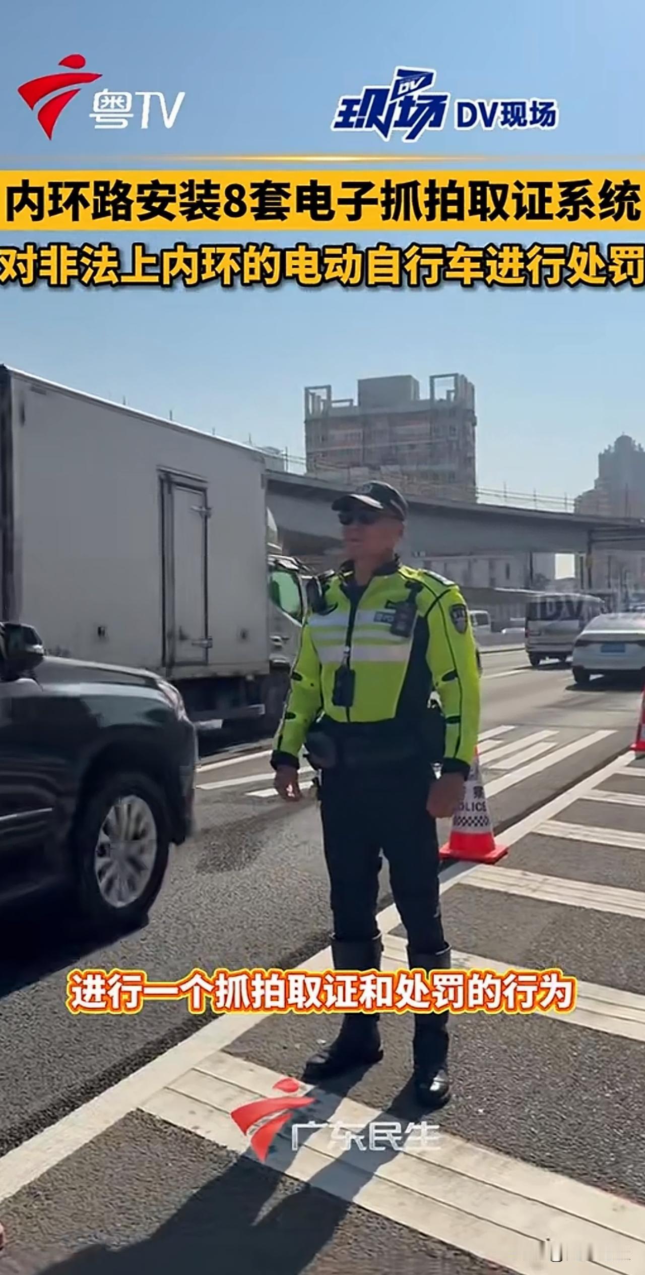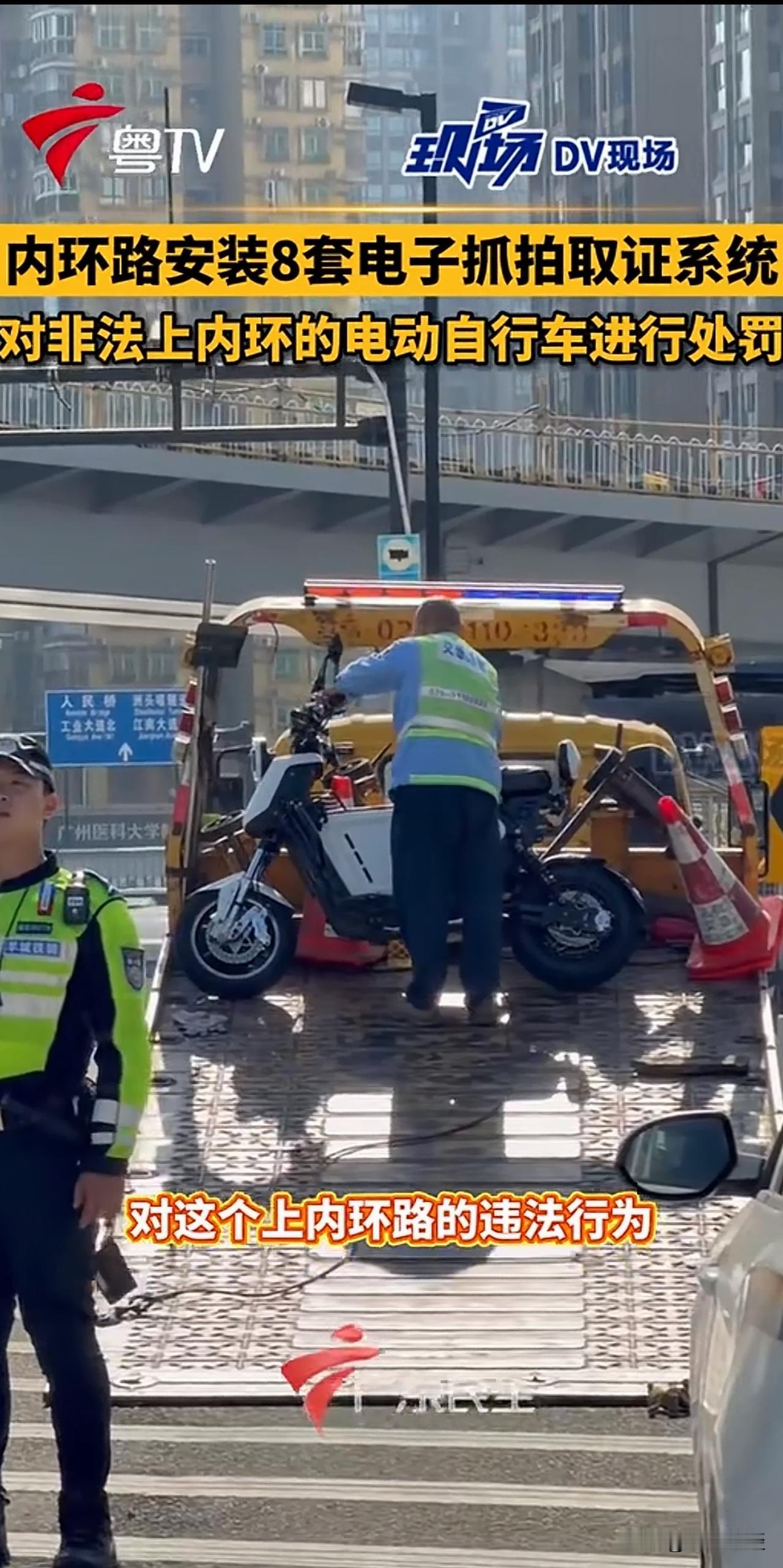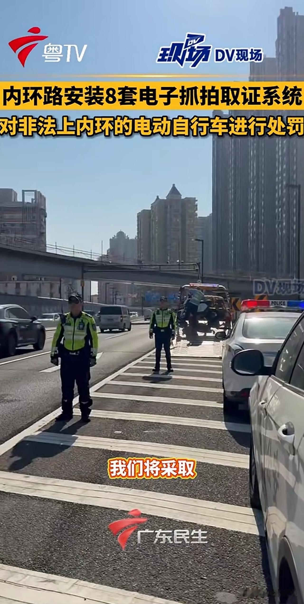 好消息!广州内环路安装了8套电动自行车电子抓拍取证系统,对电动自行车违反禁行规定,违法上内环路的电动自行车进行抓拍和现场执法相结合的方式进行处理。 通过各种措施,减少电动车违法上内环路,维护交通秩序,值得点赞! 广州内环路是市区环中心城区快速通道,道路复杂,车流量大,速度快,没有非机动车道,也不允许电动自行车上去行驶。 但还是有些电动车驾驶人,冒险闯禁区,上内环行驶,在车流中穿梭,非常危险。万一发生事故,容易造成非机动车驾乘人员伤亡。 还是不要冒险的好,毕竟生命只有一次,没有再来的机会。