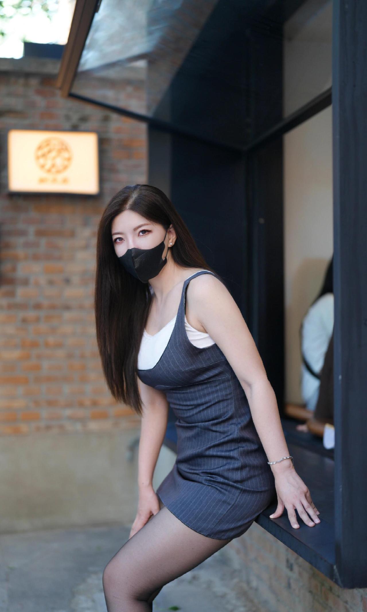 【砖巷里的慢时光】 红砖墙晒着太阳,风里飘着老街区的味道。 她站在那里,像一首没写完的小诗。条纹裙的棱角,被阳光磨得柔软,黑丝与细高跟,却又带着点不经意的飒爽。口罩遮住了半张脸,眼神却亮得很,像藏着许多想说的话。 长椅上的片刻慵懒,窗沿边的侧身回望,都成了时光里的注脚。原来不必奔赴远方,街角的一隅,就装得下所有温柔的情绪。 红砖不语,却记下了这一段,关于风和心动的故事。