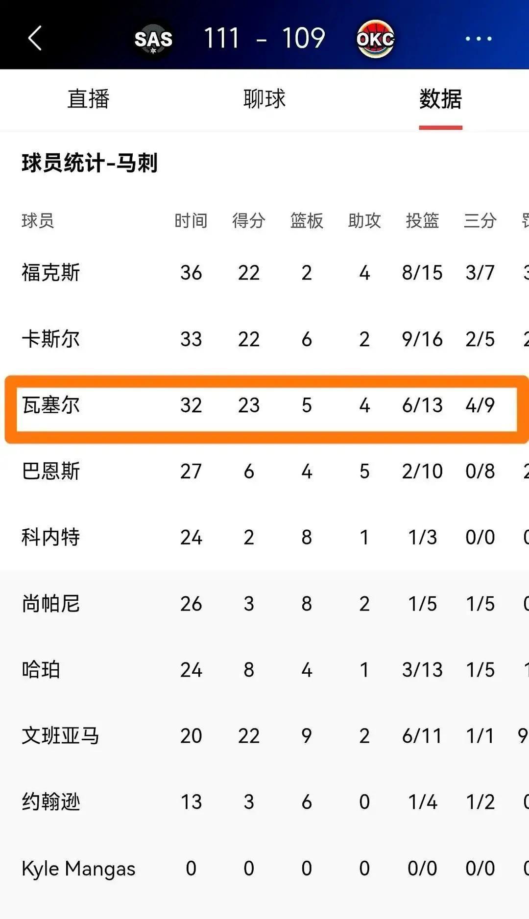 马刺又干了件“蠢事”。 赢球海报主角,不是数据最漂亮的人。 他们只认“赢球时刻”。 谁在球队要输的时候把分拿回来,谁就是主角。 这次是瓦塞尔,下半场独砍17分,把悬崖边的马刺拉了回来。 别光盯着场均19分。 看他最近5场:21.4分,三分球唰唰进,命中率四成以上。 过去10场赢6场,他的关键球是转折点。 波波维奇说得直接:他是我们要培养的核心。 从邓肯时代到现在,马刺让角色球员上海报的次数,全联盟第一。 这不是人情味,是系统。 在这里,聚光灯有一套独特的算法。 它不计算你的名气,只扫描你为胜利燃烧的瞬间。 所以,下次当你看到某个“小人物”登上马刺海报时,记住:那不是奖励,是坐标。 它告诉每一个穿着银黑球衣的人——通往伟大的路,由一个个被需要的时刻铺成。