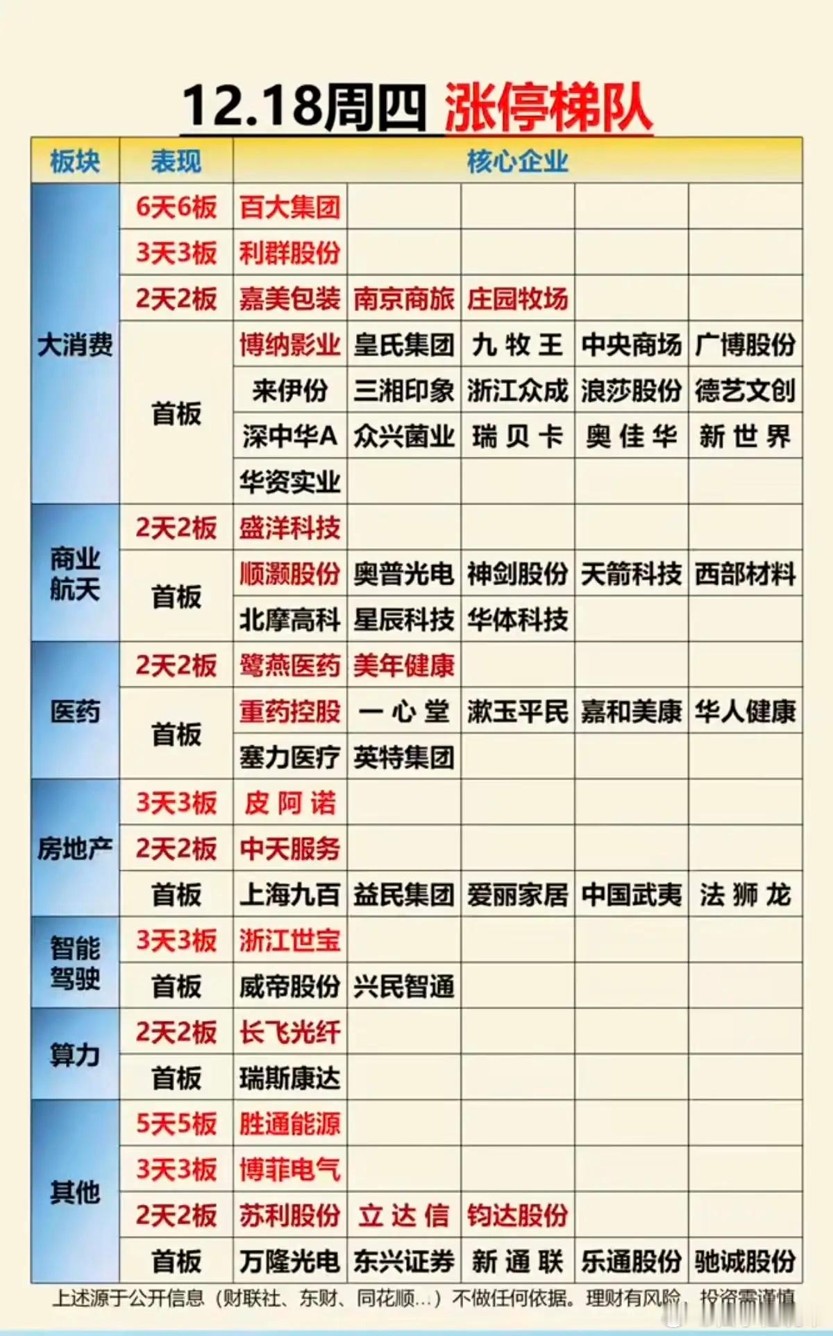 12.18周四 涨停板股票:题材+高度!1.大消费 21股涨停2.商业航天 9股涨停3.医药 9股涨停4.房地产 7股涨停5.无人驾驶 3股涨停