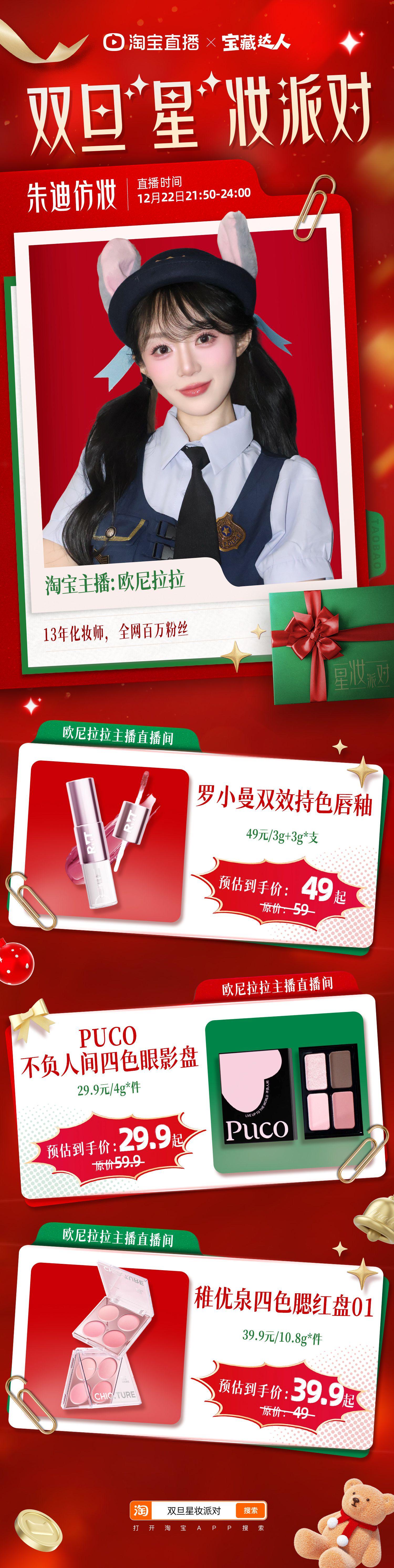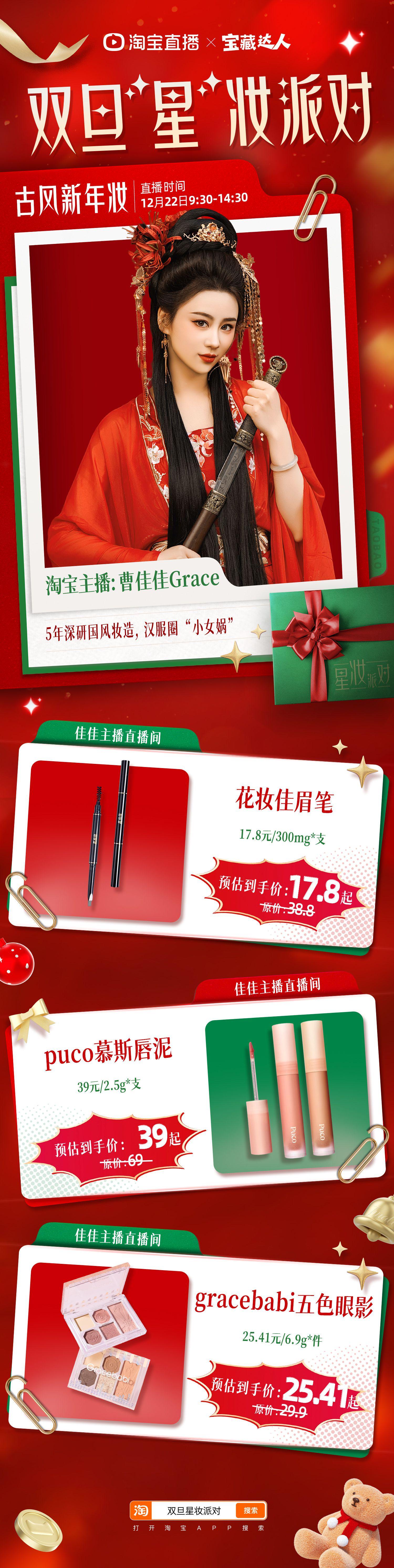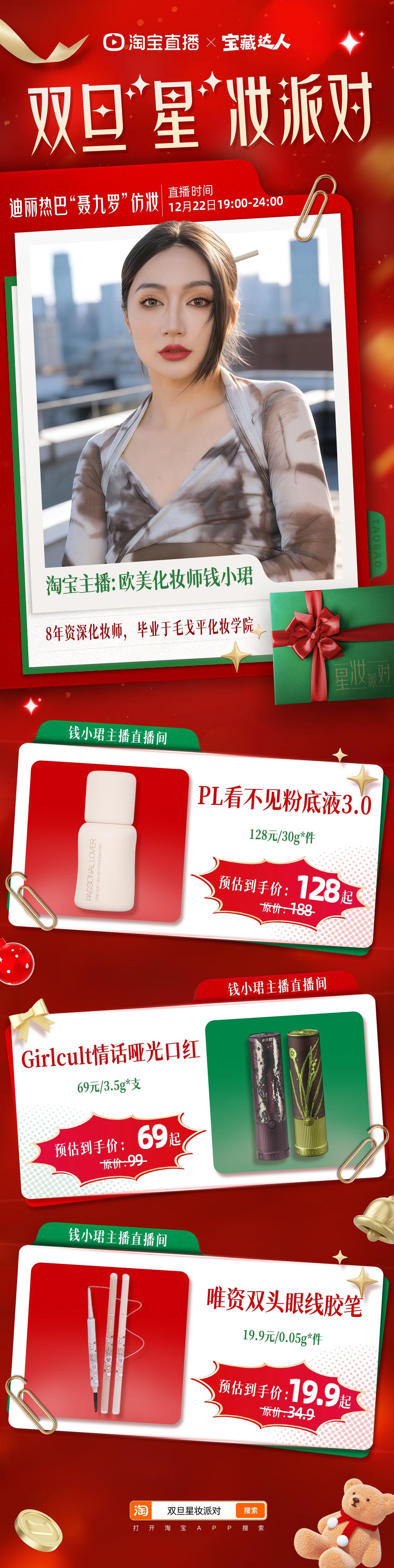 太绝了!深耕美妆圈这么久,第一次见这么有料的直播,淘宝双旦仿妆专场全是潮流硬货,专业讲解让每个细节都出彩~12月22日,变美不踩雷,记得打开淘宝APP搜索「双旦星妆派对」学淘宝直播化妆师化妆技巧!淘宝直播美妆好物低至 5 折,万元红包、免单抽奖,福利抢不停~