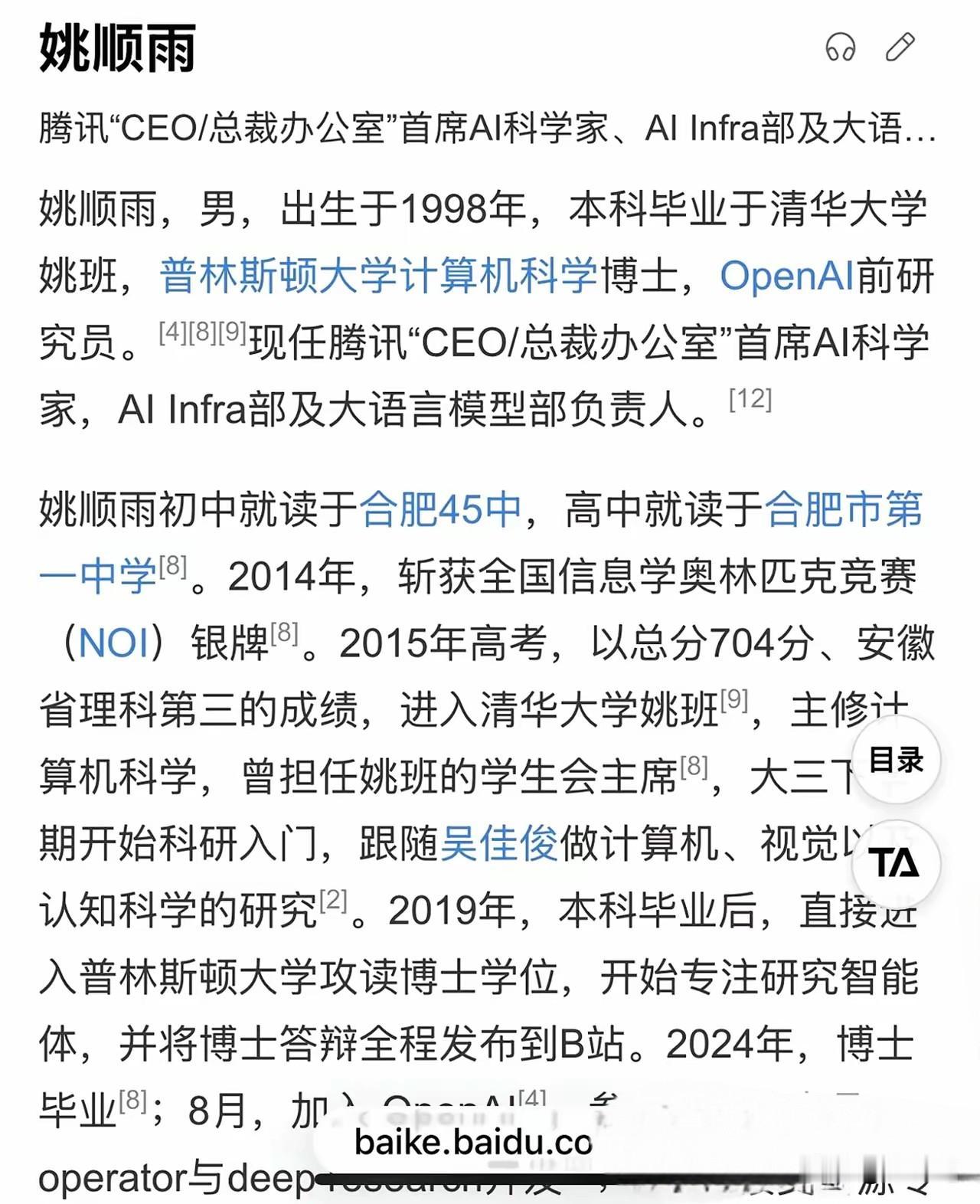 姚顺雨,98年清华学霸空降腾讯CEO,优秀的的人在哪都能绽放精彩! “姚顺雨”这个名字,乍一听就让人印象深刻——谐音“尧舜禹”,自带华夏文明的厚重与灵气。而如今,这个名字正与一个令人惊叹的标签相连:腾讯新任CEO,98年出生。 很多人第一想到的就是年轻,这么高的职位能驾驭了吗?而他的履历从大学就不简单!他高中就读于合肥一中,那时的他已是校园里的风云人物,甚至活跃到央视的镜头前。 后来以704分考入清华,在清华园里更是显示他的才华,当学生会主席,还创办了说唱社,将节奏与韵律玩转于股掌之间。篮球场上应有他挥洒汗水的身影,而在学业上,他更是稳扎稳打,以“学霸”之姿从容前行。说唱与篮球,一文一武;顶尖学府与社团创办,一静一动。在他身上,学科精英与潮流玩家这两种身份毫不违和,反而融合成一种独特的“六边形战士”魅力——学习力、创造力、领导力、文艺力、运动力、魄力,样样不缺。优秀的人到哪都优秀[赞]