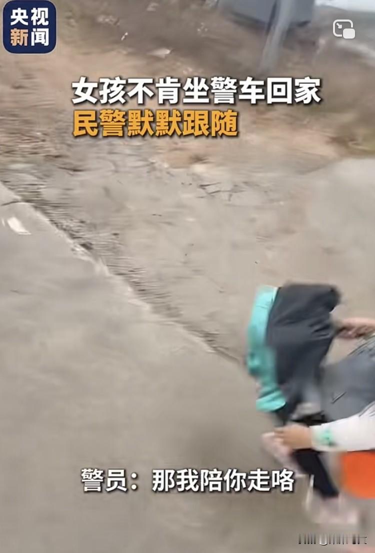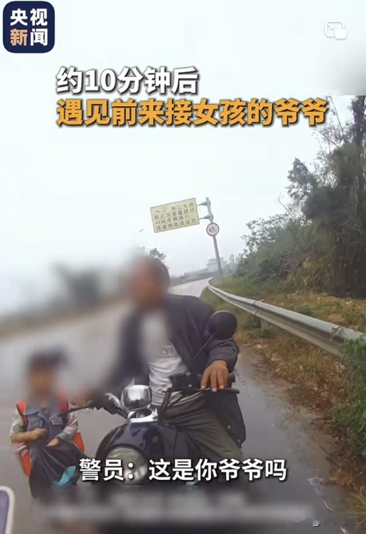 上央视新闻啦!广东湛江,民辅警在路上看到一个孤零零的小身影。他亲切的询问:“你怎么一个人在走?迷路了吗?”小女孩委屈地回应:“我爷爷不来接我回家!”下一秒,辅警的举动令人感动…… (来源:央视新闻) 广东湛江,结束校园高峰勤务的民辅警驾车返程。在归途中他们遇到了一个举着雨伞独自走在路上的小女孩。 辅警停下车摇下车窗,亲切地询问:“你怎么一个人在走?你迷路了吗?”闻言,小女孩带着委屈回应:“我爷爷不来接我回家!” 辅警打开车门下车,打算送小女孩回家。可小女孩拒绝了,头也不回地往前走,辅警只好跟了上去。 看着小小的身躯背着一个沉重的书包,辅警心疼地说:“我帮你背书包开车送你回去好不好?”女孩执拗地摇头回绝:“不要!” 辅警没有勉强,只是笑着温柔地说:“好吧,那我陪你走咯!”就这样,辅警放慢脚步,默默跟在小女孩身后,成了她路上最安心的陪伴。 走了一会,背着沉重书包的小女孩突然停下脚步委屈大哭。辅警蹲下身子轻声安抚:“没事,不要哭,我们送你回去好不好?”小女孩依旧拒绝,也许是警察这个身份太有威慑力,导致女孩不敢上警车。 一旁路过的群众也纷纷停下车子,了解了前因后果之后也跟着轻声宽慰:“不怕不怕,警察叔叔在,不要怕!” 小女孩穿着凉鞋,背着沉重的书包一边走一边哭,别提有多可怜了,看了令人怜爱。 走了大约10分钟,一个骑着电动车的老人迎面而来。辅警问:“这个是爷爷吗?”小女孩点了点头,委屈地走向爷爷。 辅警问老人:“这是你孙女吗?”老人给出了肯定的回答。老人询问孙女:“你自己走路的吗?”小女孩把玩着雨伞,委屈地点头。 一旁不放心一直跟着的群众说:“幸好有警察叔叔跟着你,不然你一个人都不知道跑哪里去了。” 确认爷孙身份后,辅警才结束了这场暖心的守护。他还再三叮嘱小女孩:“以后爷爷没来接就在学校等着,知道吗!” 小女孩轻声回应,并跟大家说了拜拜。 这短短的十几分钟的陪伴,藏着最朴实的温暖。面对小女孩的拒绝,辅警给予了尊重,耐心地默默地跟在小女孩的身后,以陪伴的方式给予她安全感。这短短一程路,是执法者的责任担当,更是普通人的善意流露。 就连路过的群众也是那样的温暖,也一直默默地跟在一旁。生活里的温暖不是什么惊天动地的壮举,往往是这般愿意为陌生人停下脚步的善意。 对此,学校也有些不负责任,怎么小的孩子,不应该是等家长接到了才能离校吗?怎么能让小学生独自离校? 大家对此有什么看法?