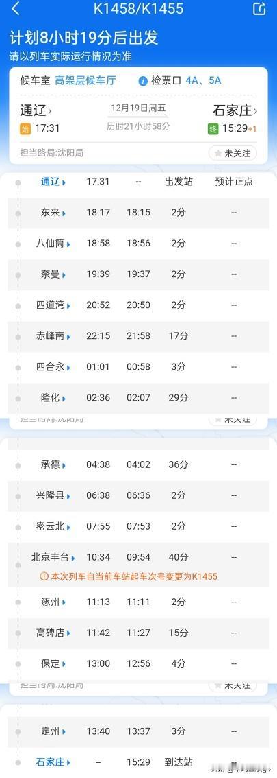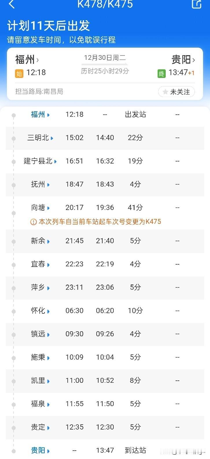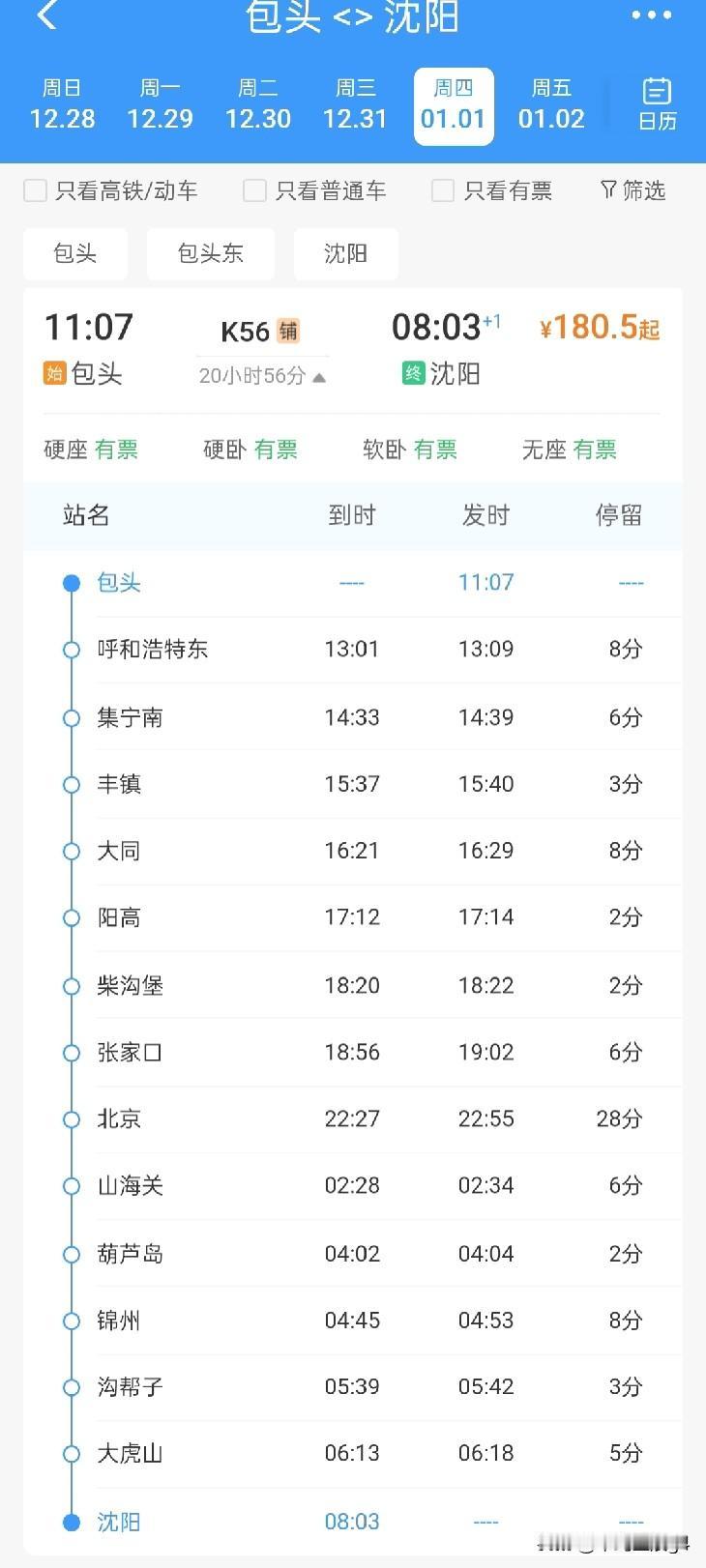 12月底多趟普速列车恢复开行 2026年的春运要到喽,12月底首批恢复开行的车次已上线一部分了,接下来还将上线很多车次,来提供更多的票额。首先,2025年12月初,京承铁路恢复通车,通州西站至承德站的6419次列车,以及通辽到石家庄的k1458次列车及往返车次恢复开行,通州地区和承德地区再次通过铁路客车连接在一起,通辽、赤峰到北京,石家庄也恢复了通行列车。 12月19日起,吉林的白山市站至吉林站的k7394次列车以及往返车次,恢复开行,途经通化、辽源,四平、长春等城市,夕发朝至,全程需要11小时,适合预算慢时出行。 12月27日起,包头到沈阳的列车k56次列车恢复开行,全程耗时约一天。 12月29日起,襄阳到湛江的列车恢复开行,这也是两地唯一一趟列车,全程耗时也需一天。 12月30日起,福州到贵阳k478次列车也恢复运营了,这趟列车跨越福建,江西,呼南,贵州等多个省份,耗时一天以上。 年底将至,车次也变得更多了起来,列车恢复开行后,车票也变得更加好买了,票源更稳,但仍需要提前预定。