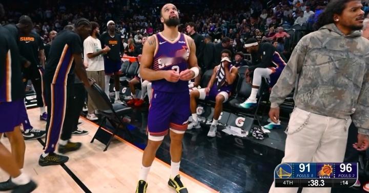 狄龙逆天了,把库里一胳膊抡倒! 这时候太阳领先5分,没有任何必要伸这一下,裁判回看之后,给了个一级恶意犯规,2罚一掷,结果库里2罚全中,巴特勒命中三分球,给追平了! 狄龙飞在空中的时候,脑子里大概在想,上一场怼翻詹姆斯,这一场也得给库里同样待遇,这哥们就盯着巨星整活,他防波杰姆的时候,老冰清玉洁了..[捂脸]