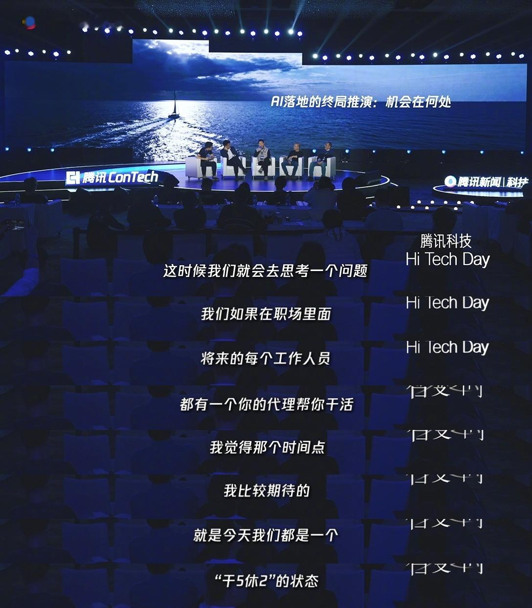 上市公司老板称干二休五指日可待 当AI代理处理报表、撰写方案,工作日不再被琐碎事务填满。 “干二休五”设想下,职场与生活的边界进一步溶解,人们可能用更多时间从事创造性探索或社区联结。这种解放不仅是工时的缩减,更是对“忙碌崇拜”的温和反驳——在技术赋能的社会里,人的价值或许不再取决于工时长度,而是生命体验的宽度。2025 腾讯 ConTech 大会 智变之时