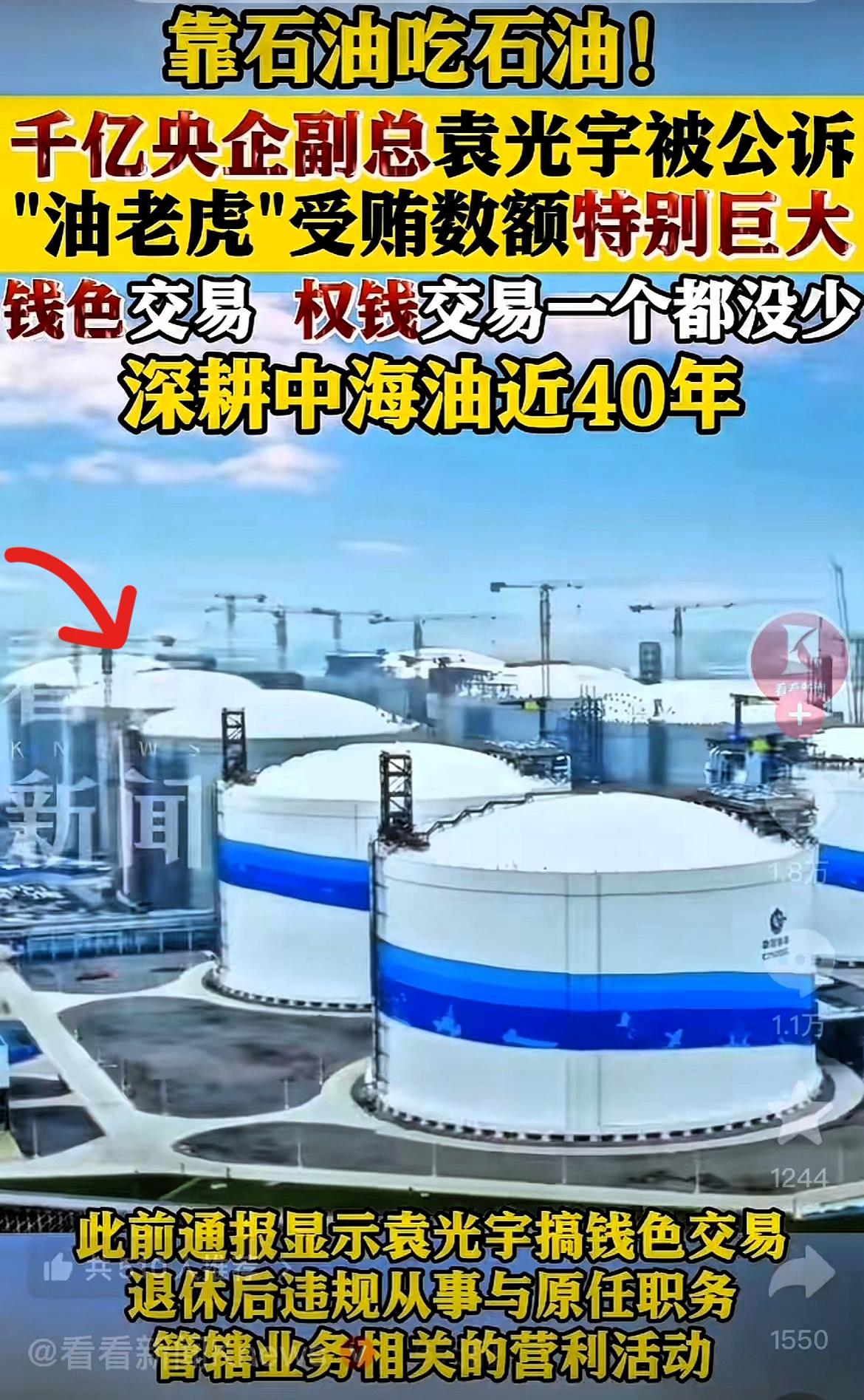 连打两虎,这个才是大虎! 怪不得油价只有涨没有跌了! 靠石油吃石油!千亿央企副总袁光宇被公诉"油老虎"受贿数额特别巨大钱色交易,权钱交易一个都没少,竟然深耕中海油近40年,居然还没有人发现这个漏洞,简直让人不可思议! 对于每一个需要开车通勤的普通人来说,站在加油机旁看着那串不断跳动的数字,心里多少都会有一种无力感。我们常被告知油价的涨跌是“顺应国际市场波动”,是为了长远的能源安全。 然而,当上海检察机关正式对原中海油副总经理袁光宇提起公诉的消息传出时,这种无力感瞬间转化为了一种难以名状的愤怒。 原来,在那些关于“市场规律”的宏大叙事背后,真的有人把这被称为“工业血液”的国家战略资源,当成了自家的私人提款机。 袁光宇案撕开的,不仅是一层贪腐的遮羞布,更是某些垄断行业深处令人咋舌的利益黑洞。通报中那个“数额特别巨大”的定性,字字千钧。 在法律的天平上,这个措辞通常意味着涉案金额不仅触碰了刑法的红线,更是达到了一个普通工薪阶层几辈子都无法想象的天文数字。 身居千亿级央企的高管之位,手握能源领域的生杀大权,本该是国家资产的看门人,结果却成了最贪婪的硕鼠。 这起案件最让人细思极恐的,是袁光宇那段长达近四十年的职业履历。他并非空降的过客,而是从最一线的钻井平台领班起步,一步一个脚印爬到了金字塔尖。 这本该是一个关于奋斗和专业的励志故事,但在权力的腐蚀下,这四十年的深耕,反而成了他编织那张巨大关系网的时间资本。 因为懂行,所以更知道哪里的闸门有缝隙;因为资深,所以在他经营的圈子里,权力寻租变得更加隐秘和顺理成章。 那个在通报中看似不起眼的“违规打高尔夫球”细节,实则是这场权钱交易游戏的一个缩影。对于像他这样级别的“油老虎”来说,绿茵场不仅是休闲地,更是围猎与被围猎的狩猎场。 就在挥杆谈笑之间,涉及国家能源命脉的项目可能就已经被私下勾兑,换成了他口袋里的真金白银,甚至是用公权力换取的声色犬马。 所谓的“钱色交易”,赤裸裸地展示了当信仰崩塌后,人性的贪婪可以丑陋到什么地步。 更具讽刺意味的是袁光宇对于“退休”二字的算计。他显然深谙官场的“隐身术”,以为卸任就是进了保险箱。 哪怕退休了,他依然不知收敛,违规在关联企业里兼职任职,继续靠着往日的人脉影响力“吸血”。 这种“期权式腐败”曾经是很多贪官的最后一根救命稻草,以为只要不在位子上收钱就能瞒天过海。但2025年的反腐雷霆手段,给了这种侥幸心理一记响亮的耳光。 看看这个办案速度:从3月份被官宣调查,到7月份被开除党籍,再到12月份就被提起公诉。这一连串动作行云流水,没有丝毫拖泥带水。 这种“加速度”不仅意味着证据链条的扎实,更传递出一个清晰的信号——在能源这种关系国计民生的核心领域,不存在什么“法不责众”,更不存在什么“既往不咎”。 哪怕你是行业内的“老资格”,哪怕你已经退休回家抱孙子,只要当初伸了手,账单迟早会寄到头上。 每一次这样的“大虎”落马,民众拍手称快之余,心里也总会有一丝苦涩。 大家关心的不仅仅是一个袁光宇将面临多少年的牢狱之灾,更是这只“油老虎”在位期间,究竟造成了多少国有资产的流失,又在多大程度上推高了社会的运行成本。 反腐败不是为了看热闹,而是为了让规则回归公平,为了让老百姓加的那每一升油里,不再包含这些蛀虫贪得无厌的“附加费”。 将权力关进笼子,不让国家命脉成为少数人的牟利工具,这才是对民生最大的交代。 信息来源:京报网—中共中央批准,开除袁光宇、刘卫东党籍