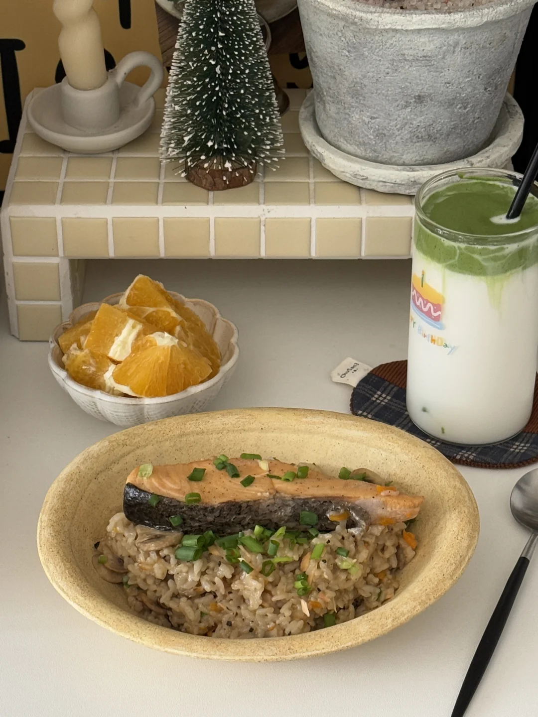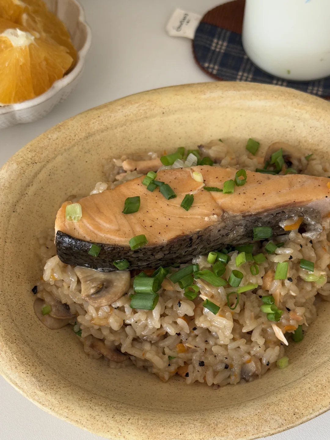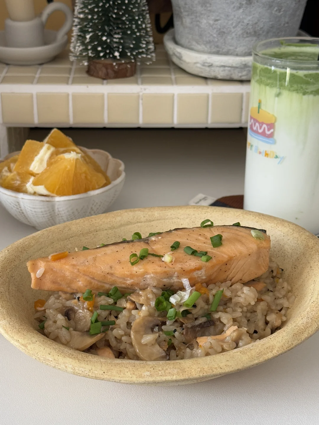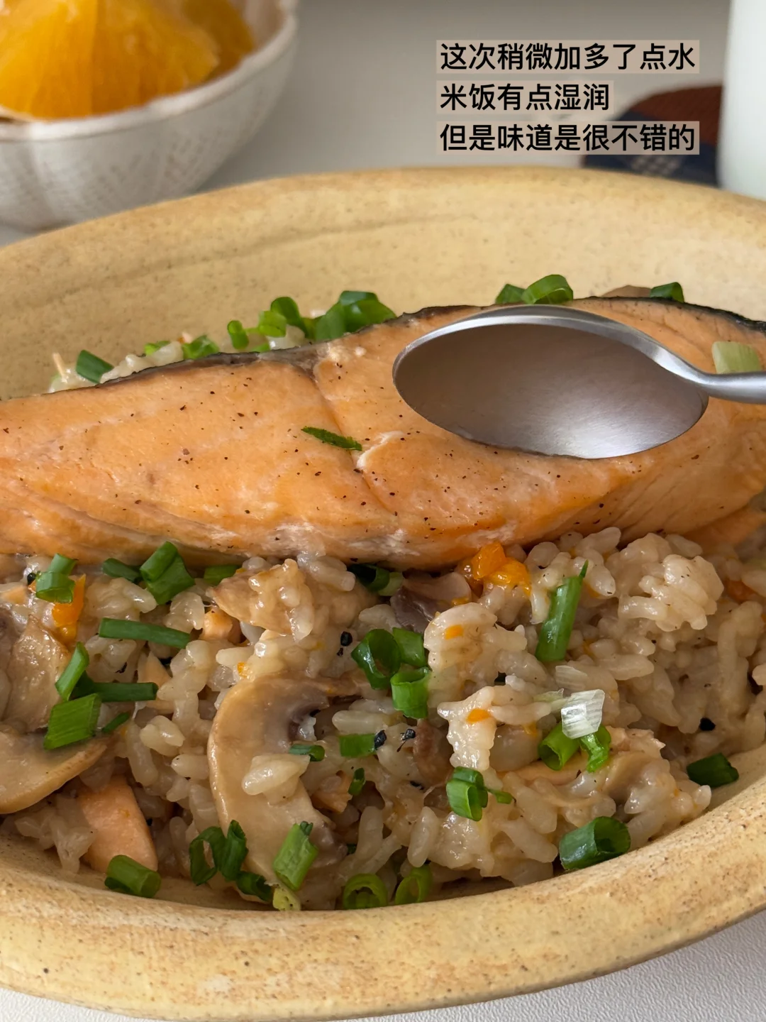 一人吃完一锅🍣黑松露口蘑三文鱼饭🥄