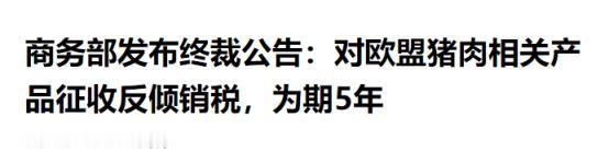 中方终于出手了, 12 月 17 日,中方正式发布最终裁定:从即日起,对原产于欧盟的进口猪肉及猪副产品征收为期五年的反倾销税,税率从 4.9% 到 19.8% 不等。 要知道,这可不是随便拍板的决定,背后是一整套合法合规的调查流程,更是对国内产业的切实保护,而在这其中,荷兰这个欧盟内人均猪肉出口量最高的国家,无疑会受到最直接的影响。 可能有人会问,咱们为啥要对欧盟猪肉下这个决心?其实答案很简单,就是为了维护国内市场的公平,保住咱们自己的养猪产业。 中国可是全球最大的猪肉生产国和消费国,平时咱们吃的猪肉,绝大多数都是国内养殖户辛辛苦苦养出来的,进口猪肉本来只是起到一个补充调剂的作用,让市场供应更稳定。 但最近这几年,情况有点不对劲了,欧盟那边为了消化自己过剩的猪肉产能,一个劲地往中国市场砸货,带着低价倾销的架势来的。数据能说明一切,这些年欧盟一直是中国猪肉及猪副产品的第一大进口来源地,2024年咱们进口的48亿美元猪肉里,超过一半都来自欧盟。 这么大的进口量,再加上低价倾销,直接给国内市场带来了不小的冲击。国内猪价本来就受市场供需影响波动挺大,欧盟低价猪肉一进来,更是让国内猪价的下行压力雪上加霜,很多国内养猪企业和养殖户的盈利水平直线下降,不少人都陷入了生产经营的困境。 这种情况下,国内产业要求保护的呼声越来越强烈,也正是在这个背景下,相关行业协会代表国内产业,在2024年6月6日正式向商务部提交了反倾销调查申请。 咱们国家做事一向讲究依法依规,不会凭空出手。收到申请之后,商务部按照《中华人民共和国反倾销条例》的规定,先花了60天时间审查申请材料,确认申请是代表国内产业提出的,材料也齐全合规,于是在2024年6月17日正式决定立案调查。 经过严谨细致的调查,今年9月5日,商务部发布了初步裁定,已经初步认定欧盟的相关猪肉产品存在倾销,而且给国内产业造成了实质损害,两者之间的因果关系也很明确。 之后,调查机关又继续深入调查,把所有细节都核实清楚,直到12月16日正式公布最终裁定,确认了初裁的结论,然后才有了12月17日生效的征税决定。 整个过程完全符合世贸组织的规则,一位业内专家也说了,这次反倾销调查从始至终都严格遵循法律规定,结果客观公正,目的就是用规则维护公平贸易,保障国内产业的健康发展。 这里必须重点提一下荷兰,作为欧盟内部人均猪肉出口量最高的国家,荷兰的猪肉产业对出口的依赖度极高,而中国又是欧盟猪肉的重要市场,这次19.8%的最高税率落在荷兰企业头上,对荷兰的猪肉出口产业来说,无疑是一记重拳。 欧盟内部的反应也挺有意思,并不是一边倒的反对,而是出现了明显的分歧。欧盟委员会的官方表态比较谨慎,只说会审查中方的决定是否符合世贸组织规则,没敢直接指责。 西班牙和法国这两个同样是猪肉出口大国的国家,反应却很平和,甚至觉得这个结果“好于预期”。他们认为中方没有完全关闭市场大门,还留了余地,毕竟还有企业能享受到4.9%的低税率,总比全面禁止进口要强。 这也能理解,毕竟这两个国家的不少企业都积极配合了调查,拿到了相对有利的税率,自然不会有太多抱怨。可能有人会把这件事和之前的中欧贸易摩擦联系起来,之前欧盟对中国电动车加征高额关税,之后中方就对欧洲的猪肉、白兰地、乳制品启动了调查,外界也确实把这些调查看作是中方的反制措施。 但必须明确的是,这次对欧盟猪肉的反倾销裁定,是完全基于事实的合法举措,有充分的证据证明欧盟企业存在倾销行为,而且给国内产业造成了实质损害,这和贸易报复有着本质的区别。 世贸组织本来就赋予了各成员方对造成产业损害的倾销行为采取反倾销措施的权利,中方这么做,只是在依法行使自己的正当权利。对国内产业来说,这个裁定无疑是一场“及时雨”。 这几年国内养猪户过得不容易,猪价起起落落,再加上欧盟低价猪肉的冲击,不少企业都在亏本经营。征收反倾销税之后,欧盟猪肉的低价优势会被大幅削弱,国内猪肉产品的市场竞争力会得到提升,有助于稳定国内猪价,让国内的养猪企业和养殖户能喘口气,慢慢恢复元气。 五年的实施期限,也能给国内产业足够的时间进行调整和升级,增强长期竞争力。中方这次的举措,核心就是两个字:公平。我们欢迎合法合规的国际贸易,但绝对不允许任何国家的企业通过低价倾销的方式,破坏国内市场的公平竞争环境,损害国内产业的利益。 这次对欧盟猪肉征收反倾销税,就是要给所有国际贸易参与者一个明确的信号:中国的市场大门是敞开的,但必须在公平竞争的规则下来做生意。 对于那些遵守规则的企业,我们依然欢迎;但对于那些想通过不正当手段抢占市场的,我们也绝不会手软,一定会依法维护国内产业的合法权益。