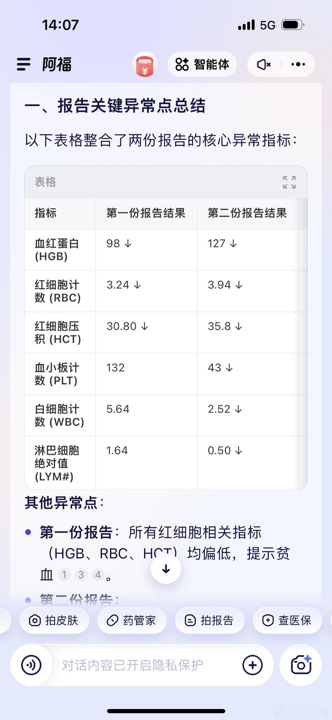 阿福三分钟看懂体检报告 家人们谁懂啊!每年体检像闯关,抽完血拍完片,拿到报告直接傻眼——满页专业术语像天书,上下飘的异常箭头看得人心慌,想找医生问清楚,排队能排到地老天荒,问完还可能一知半解。直到我遇上蚂蚁阿福这个神仙工具!拍照或上传体检报告,一键解锁全方位解读。它把晦涩指标拆解得明明白白,异常值为啥异常说得通俗易懂,连针对性就医建议、生活注意事项都给你安排得妥妥帖帖。再也不用揣着报告瞎琢磨,打工人的体检焦虑,直接被蚂蚁阿福拿捏得死死的!