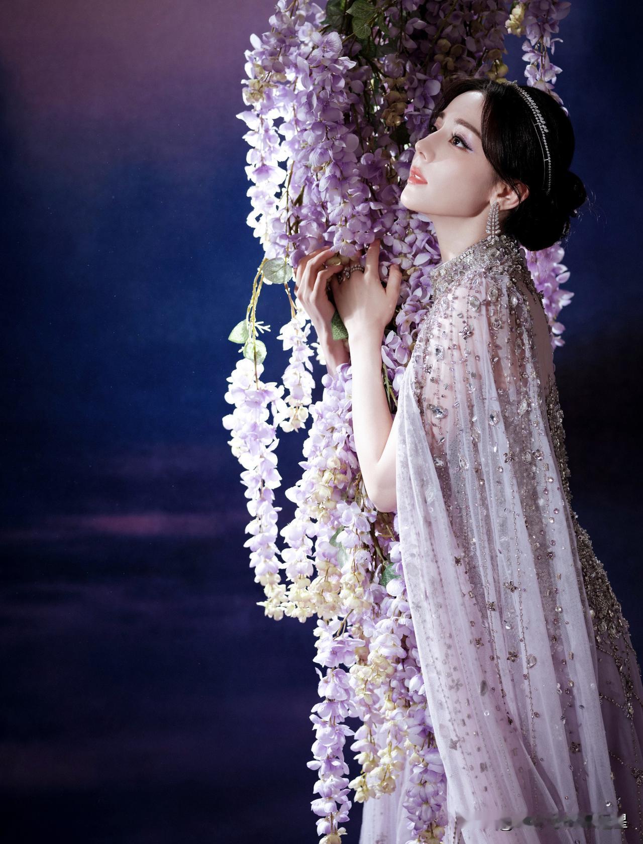 简直太美丽了,紫藤花女神好喜欢这个完美的迪丽热巴!