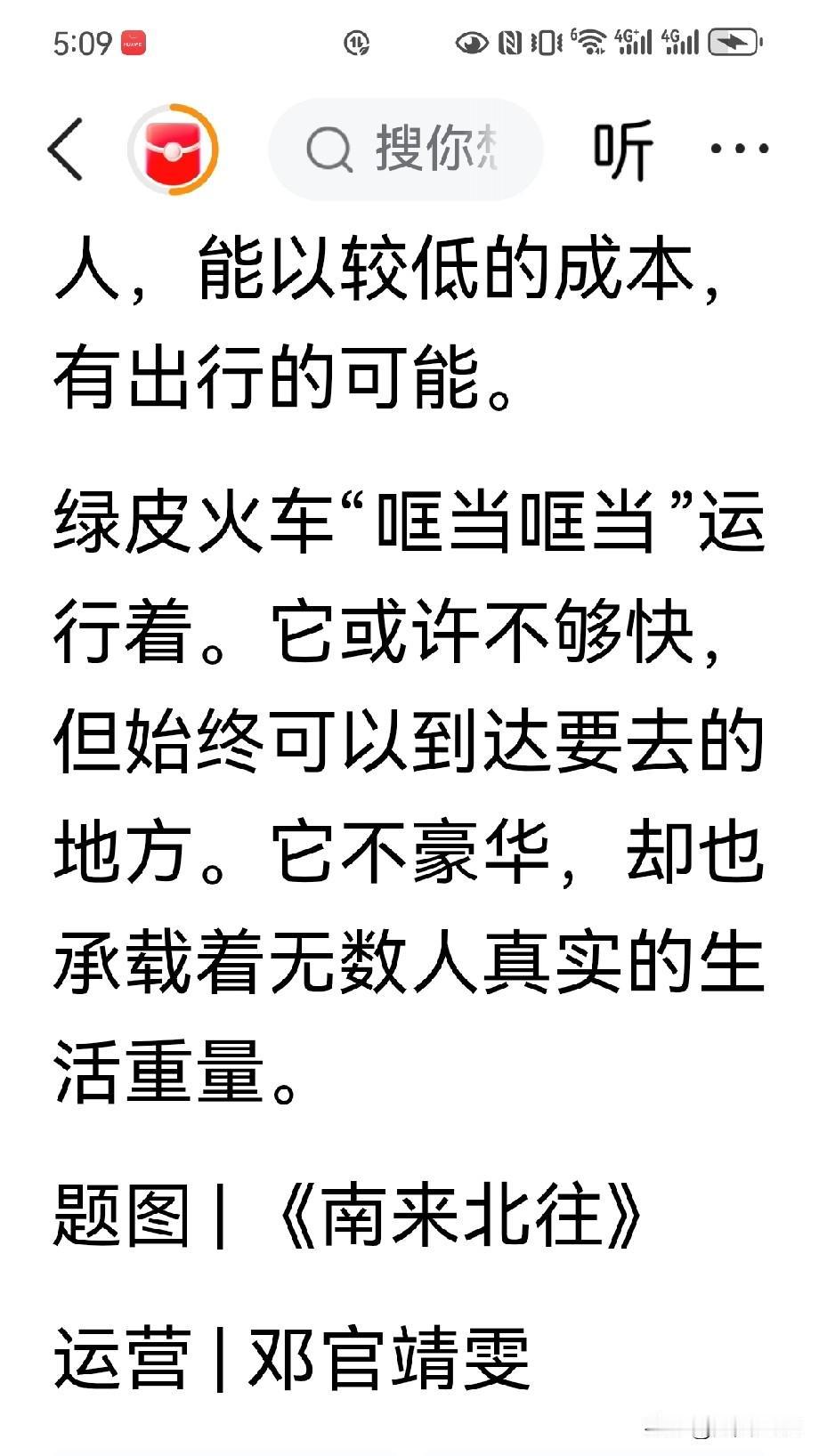 今天看到了由新周刊写的“多花一小时省30块”,最省钱的打工人坐绿皮火车通勤。 看到了这个文章,我也深刻的感受到,绿皮火车最突出的优势,就是票价便宜。有着同样的距离,而绿皮车的票价往往只是高铁票价的一半甚至是更低,只要花上几十块钱,就能从一个城市去到另一个城市。所以绿皮火车至今仍是许多务工者、学生和收入不高的人群出行的首选。 绿皮车它的优势就集中在有高的性价比、而且线路覆盖又广、非常适合复杂的路况。它的价格要比高铁动车更加的优惠,只是高铁票价的一半甚至更低。它可是普通老百姓和收入不高的打工者的首选!