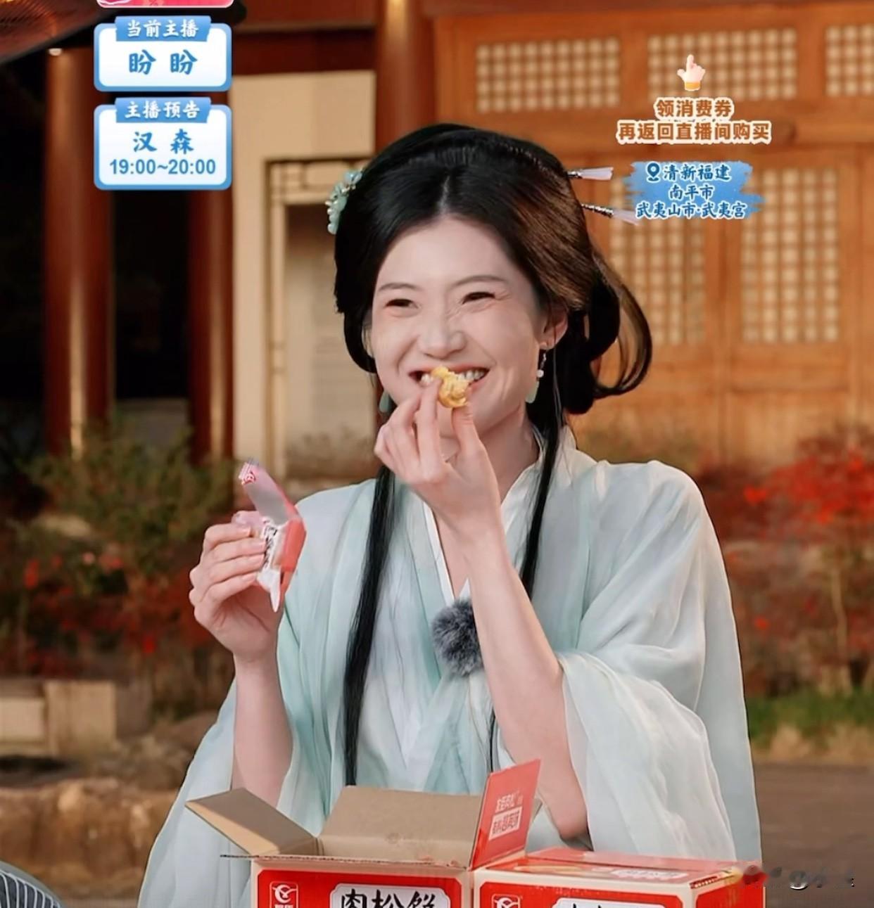 盼盼已经在福建外场直播 一身汉服清雅秀丽简直美翻了 这份端庄维持到美食环节直接破功[偷笑] 盼盼讲了那么久的茶 终于可以开吃了[耶] 孩子急吼吼把肉松饼放嘴里 围观的观众替她着急 这个少吃点,留着点肚子 后面好多好吃的 盼盼豪迈的把手一挥, “这算啥,开胃菜而已”[笑哭] 行行行 忘了我们美盼的外号了 许五顿是白叫的吗? 战斗力那是杠杠的 阅山河最后一天安排她来 就是打扫战场的[偷笑] 总不能再把样品带回去吧[笑哭]