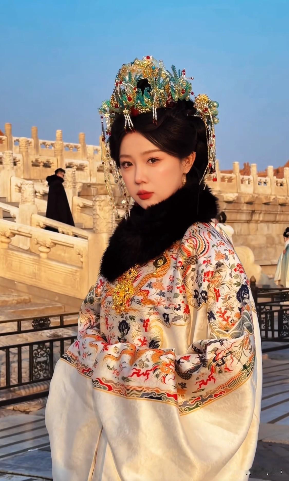 网友复刻明朝皇后服饰。明朝天启皇帝的皇后张嫣大概也是如此美丽。张嫣皇后号称是明朝最美的皇后,历史记载,张嫣皇后美貌举世无双,窈窕端丽。 人们对张皇后的美貌有很多猜想。网友身穿明式汉服,在故宫拍照,大概复原了张嫣皇后的美貌。 据说,张嫣皇后从5000名佳丽中脱颖而出,容貌举世无双,天启皇帝一见倾心。更关键的是,张皇后为人正直,历史上有好名声。