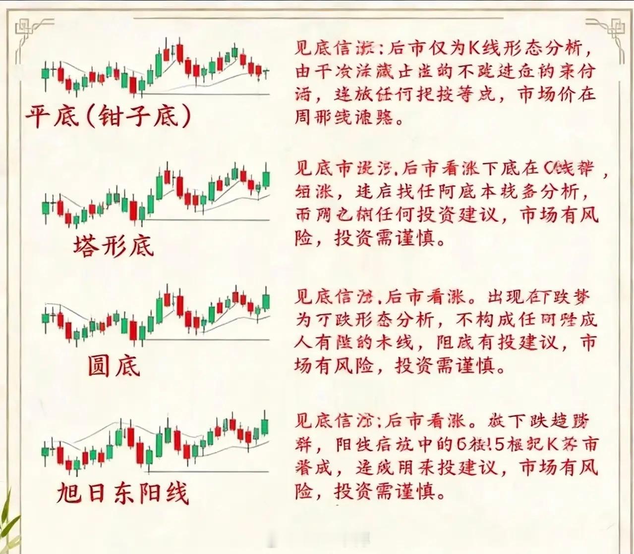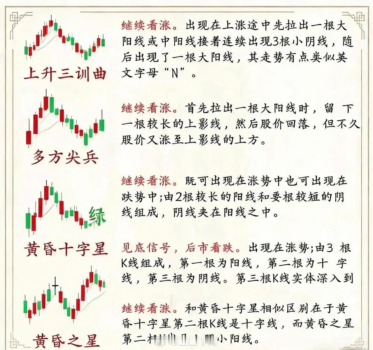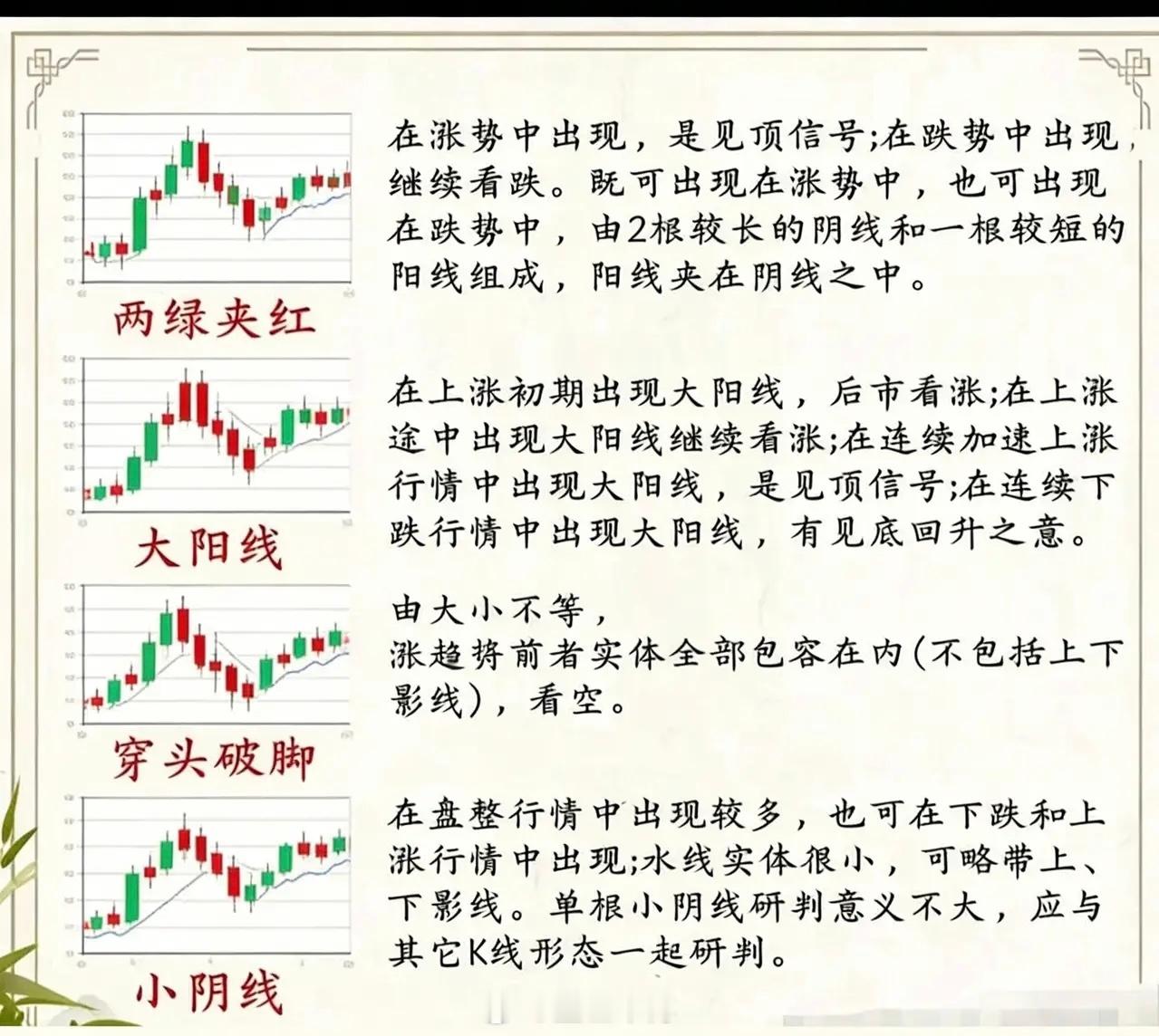 做短线交易想摸透盘面信号,这7类经典K线形态可以多研究!不管是看底部反转信号、辨趋势延续节奏,还是防顶部回调风险,这些都是我复盘总结的实战观察心得,供大家参考。具体的形态识别细节、信号强弱的判断角度,还有实操里容易误判的点,我都整理在配图里了,每一张都是实打实的复盘总结,没有多余内容。建议大家截图保存,结合实际盘面反复对照,把这些形态的特征记熟,下次看盘时能更快读懂K线给出的线索!
