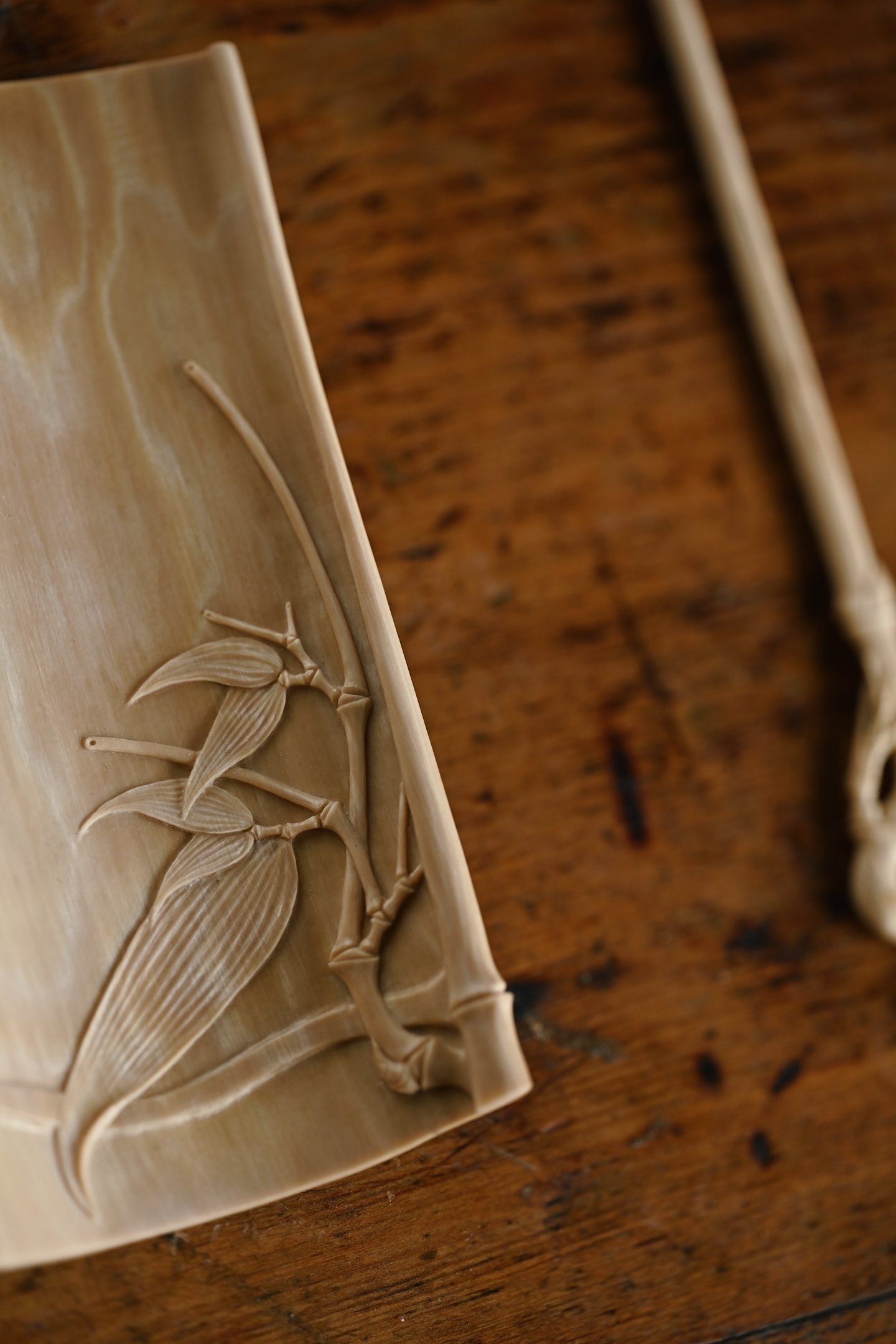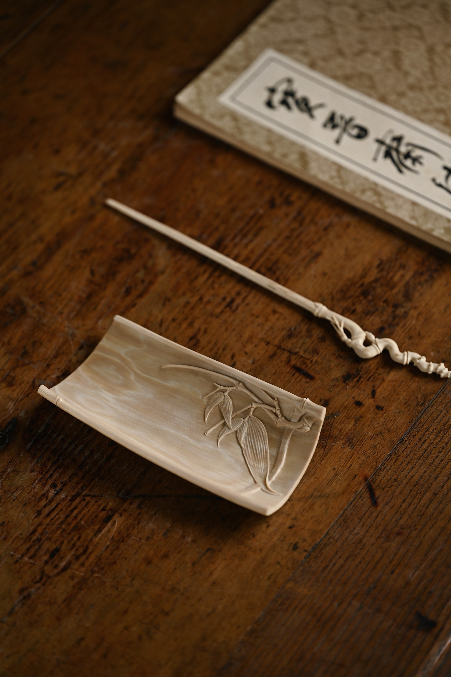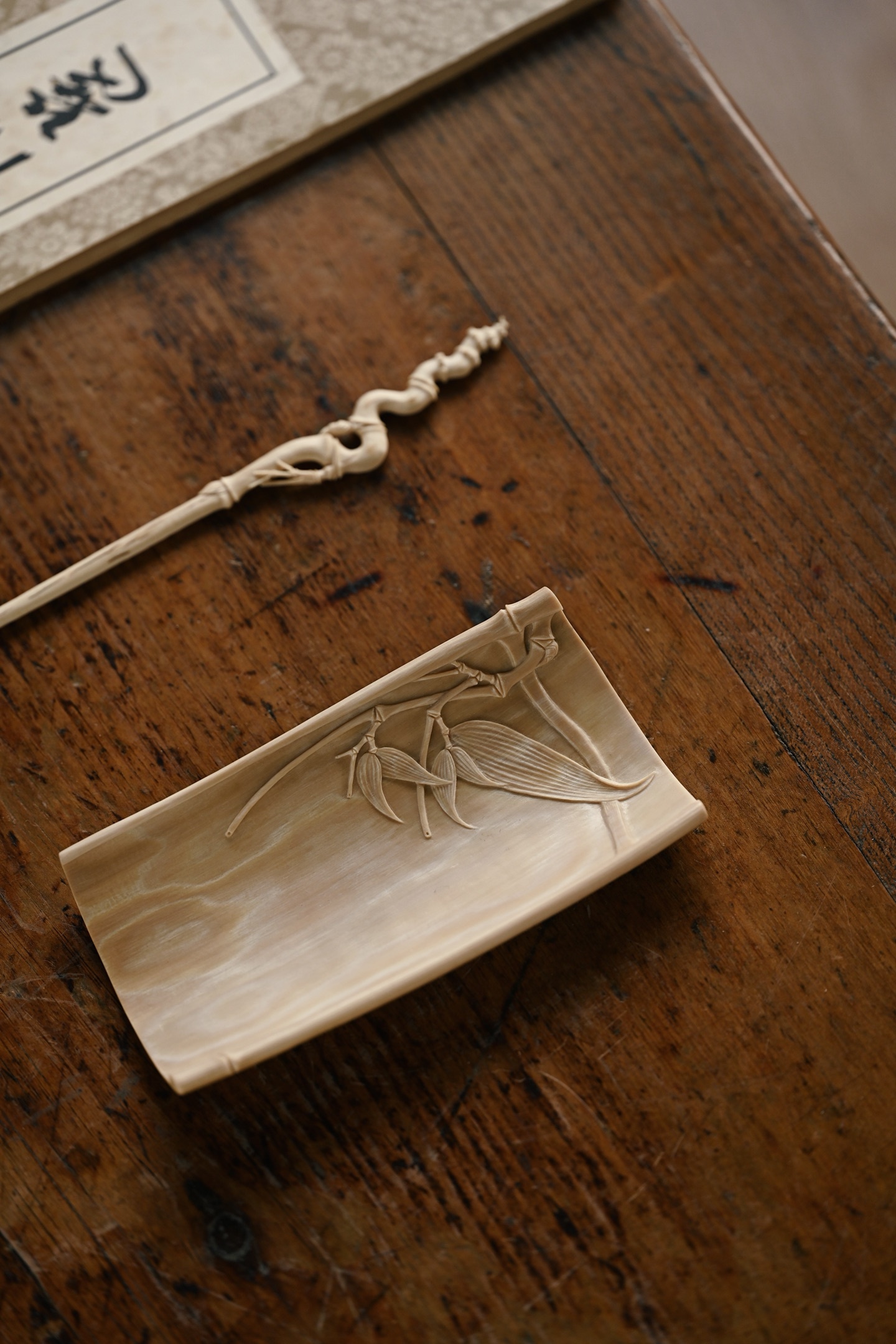 猛犸 | 竹风清清 茶则色泽温润,打磨细致,雕刻竹叶通透清朗,如随风动,为素雅茶席之佳选茶则:13*6.7*2.5cm 56g茶拨:21.5*1.7*0.5cm 4g