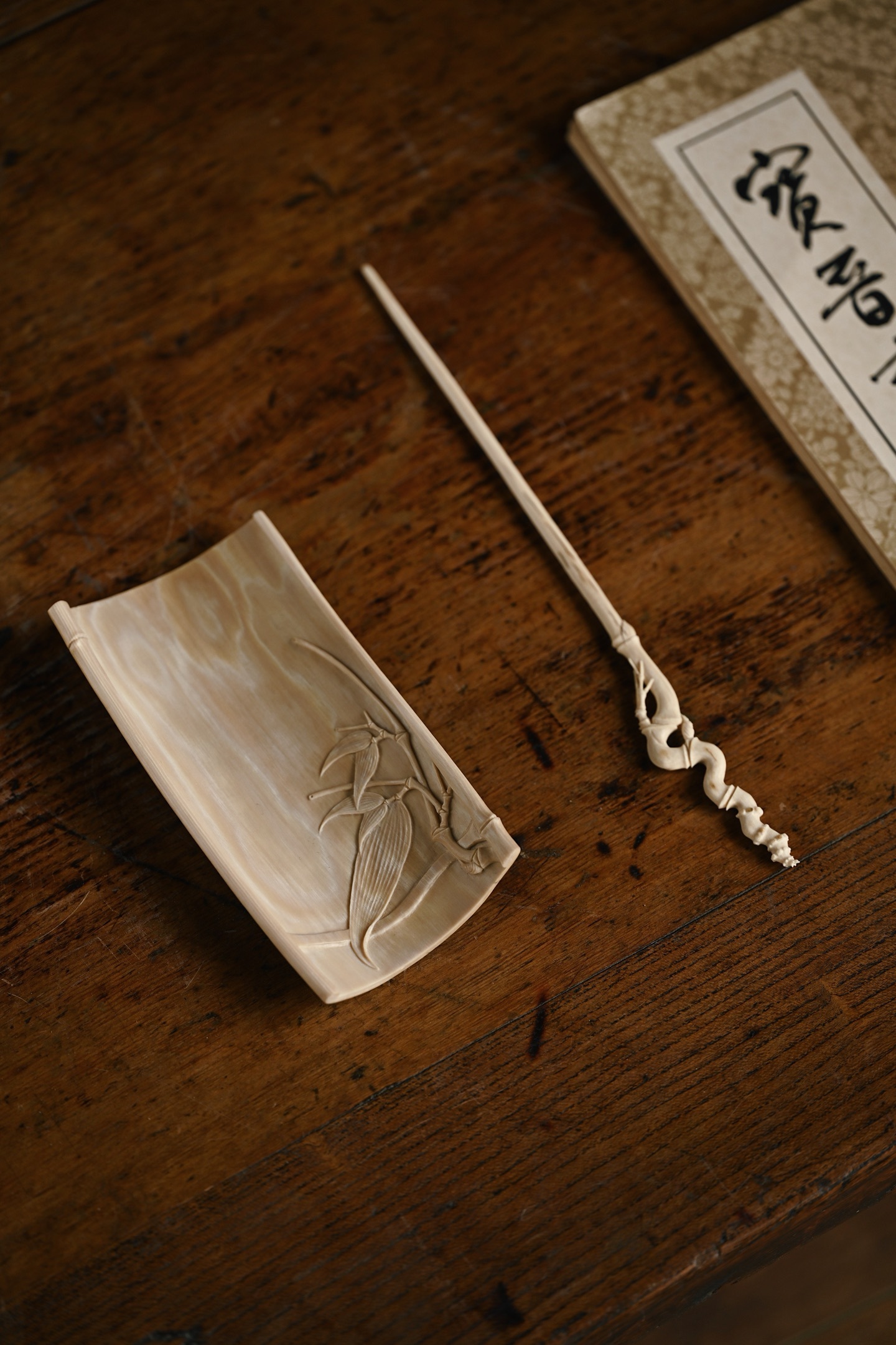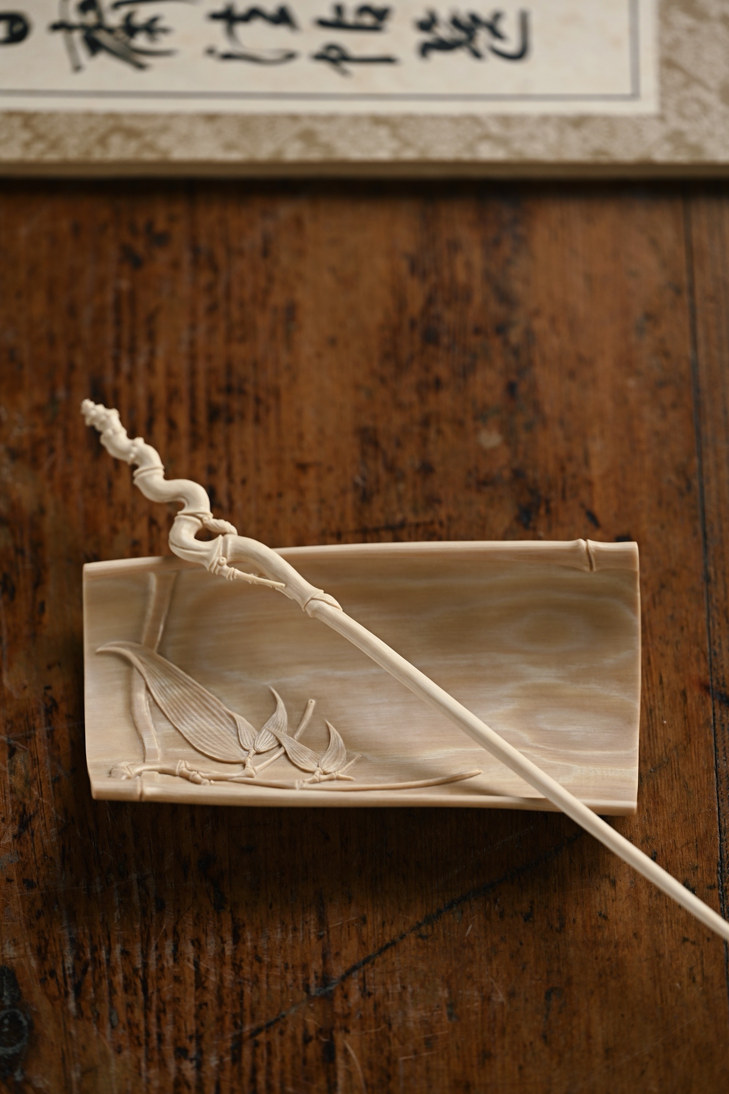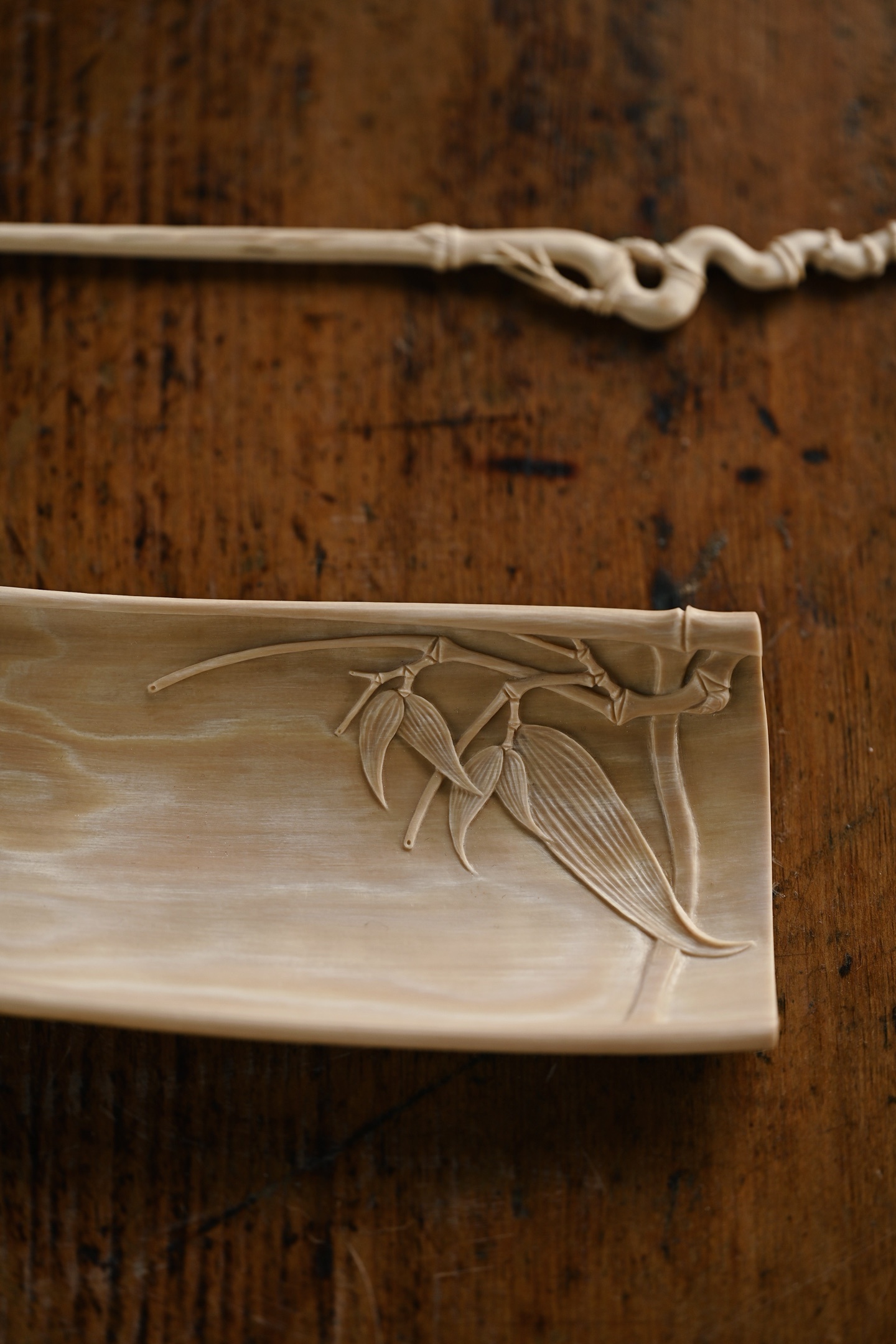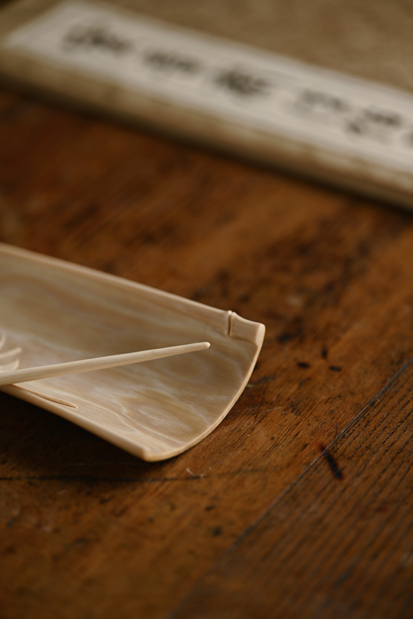 猛犸 | 竹风清清 茶则色泽温润,打磨细致,雕刻竹叶通透清朗,如随风动,为素雅茶席之佳选茶则:13*6.7*2.5cm 56g茶拨:21.5*1.7*0.5cm 4g