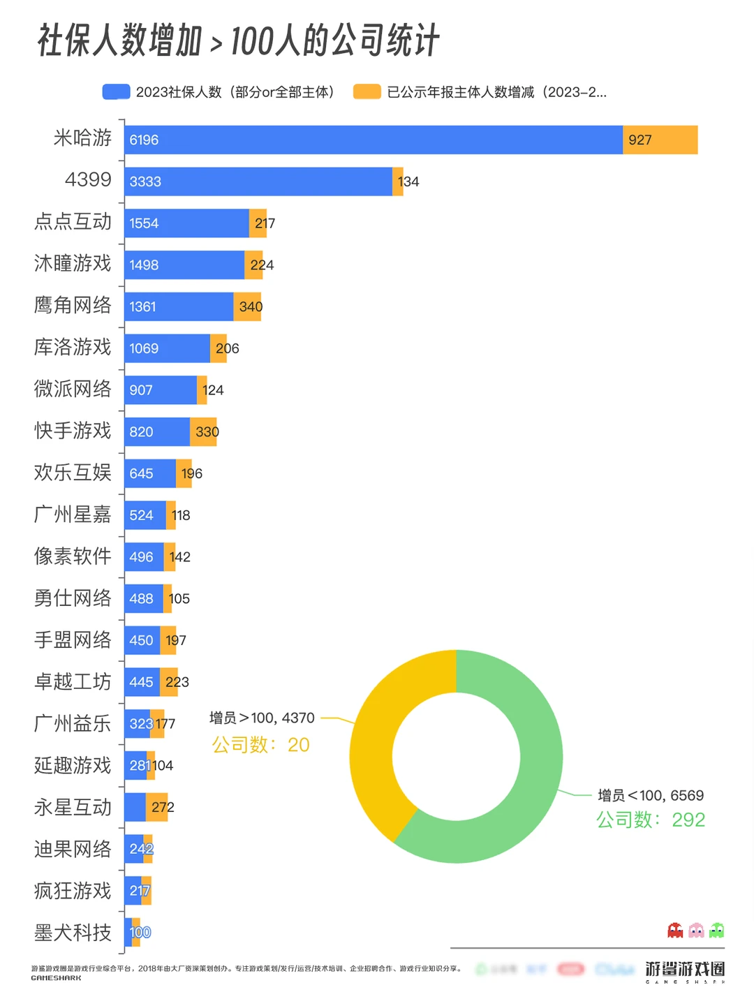 2023社保人数增减>100人的公司统计 数据来源:游鲨游戏行业资料共享文档