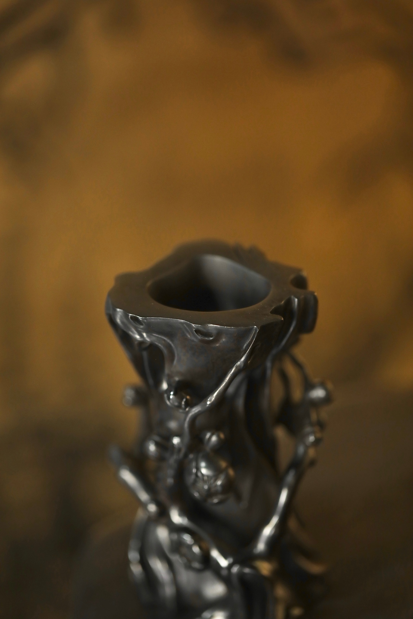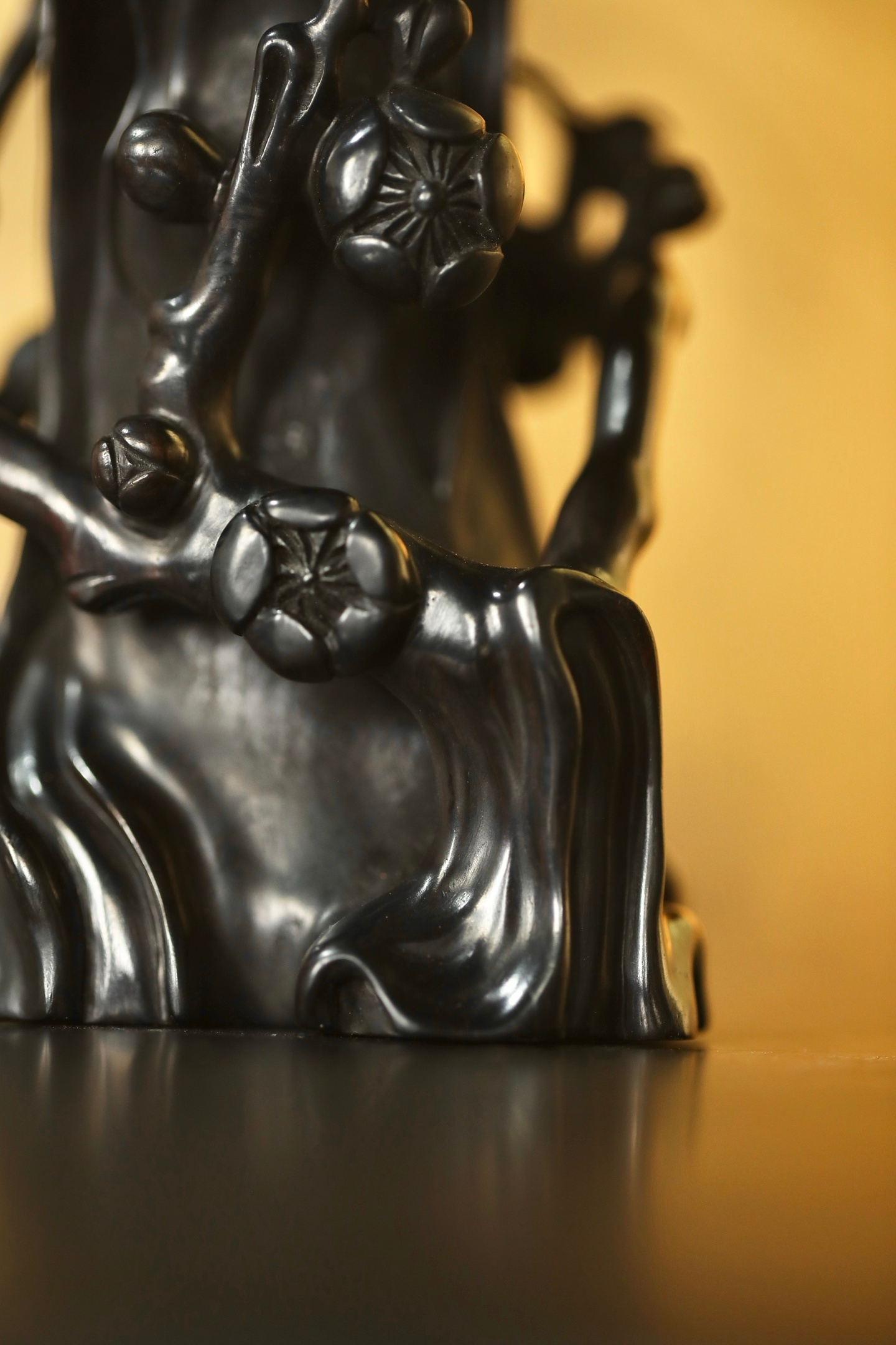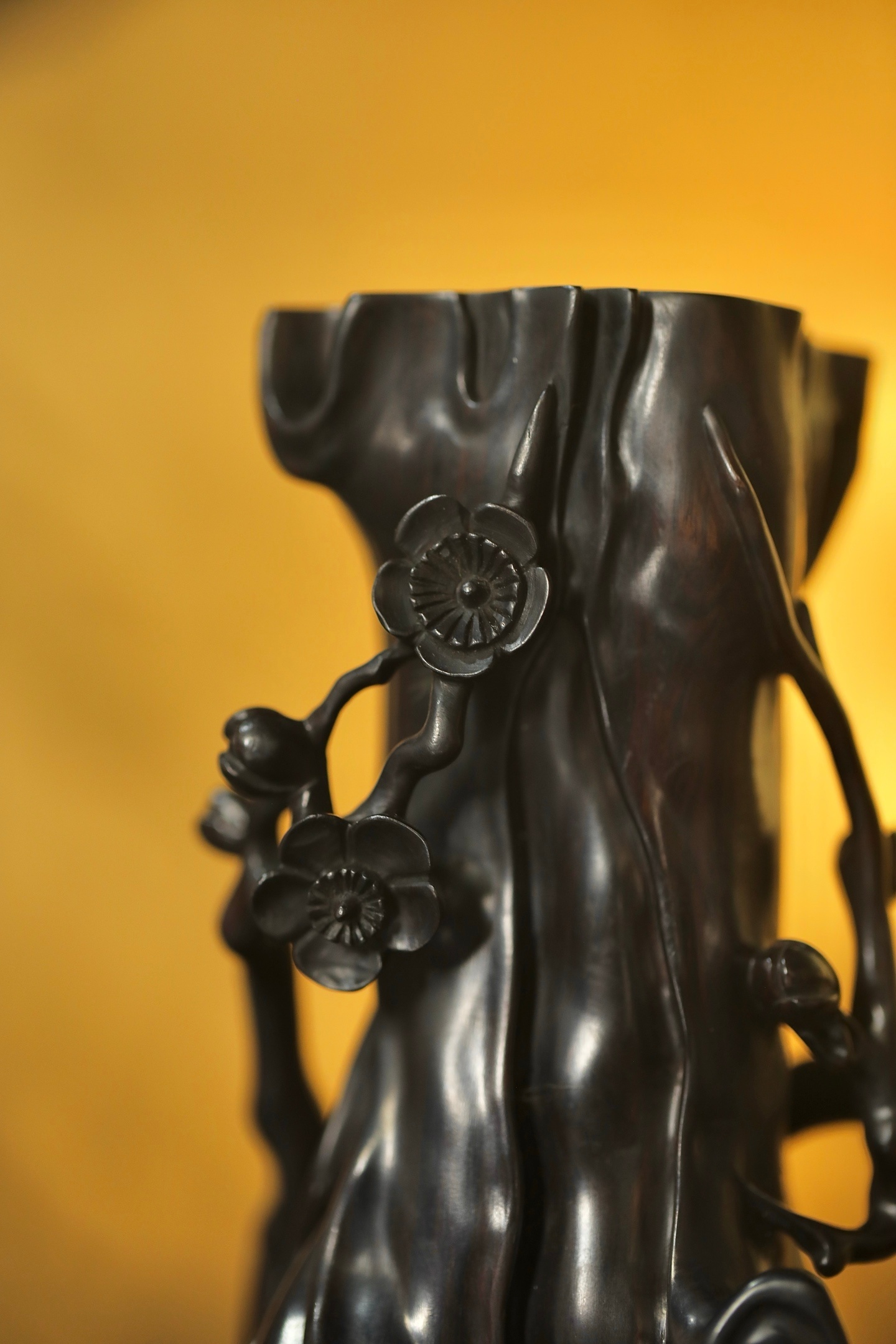 紫光檀 | 梅花花插匠人随木形雕作梅干虬曲之态,枝桠盘绕间,梅花朵朵凹凸有致,似迎寒绽放。花插中空可插细枝,置于案头,无花时见木之苍劲,插枝时融花之灵秀,一器藏尽「疏影横斜水清浅」的中式梅韵。6.8*5.7*12cm