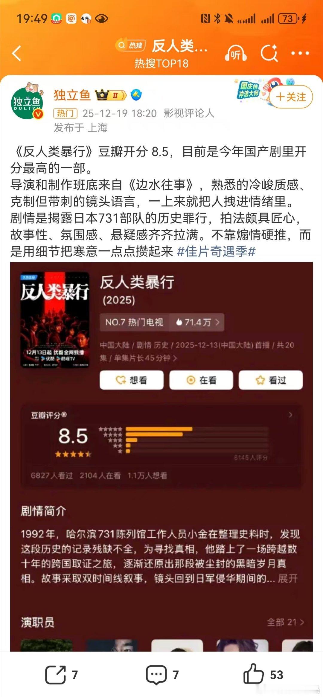 作为一个历史专业的人来说 看到这个分数真的有点激动 反人类暴行豆瓣开分8.5