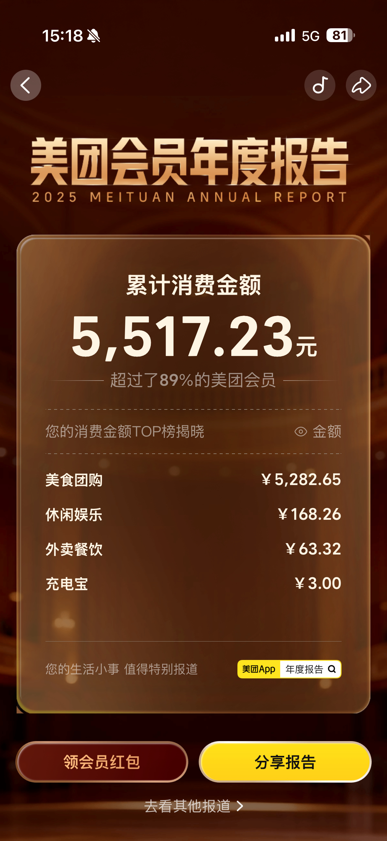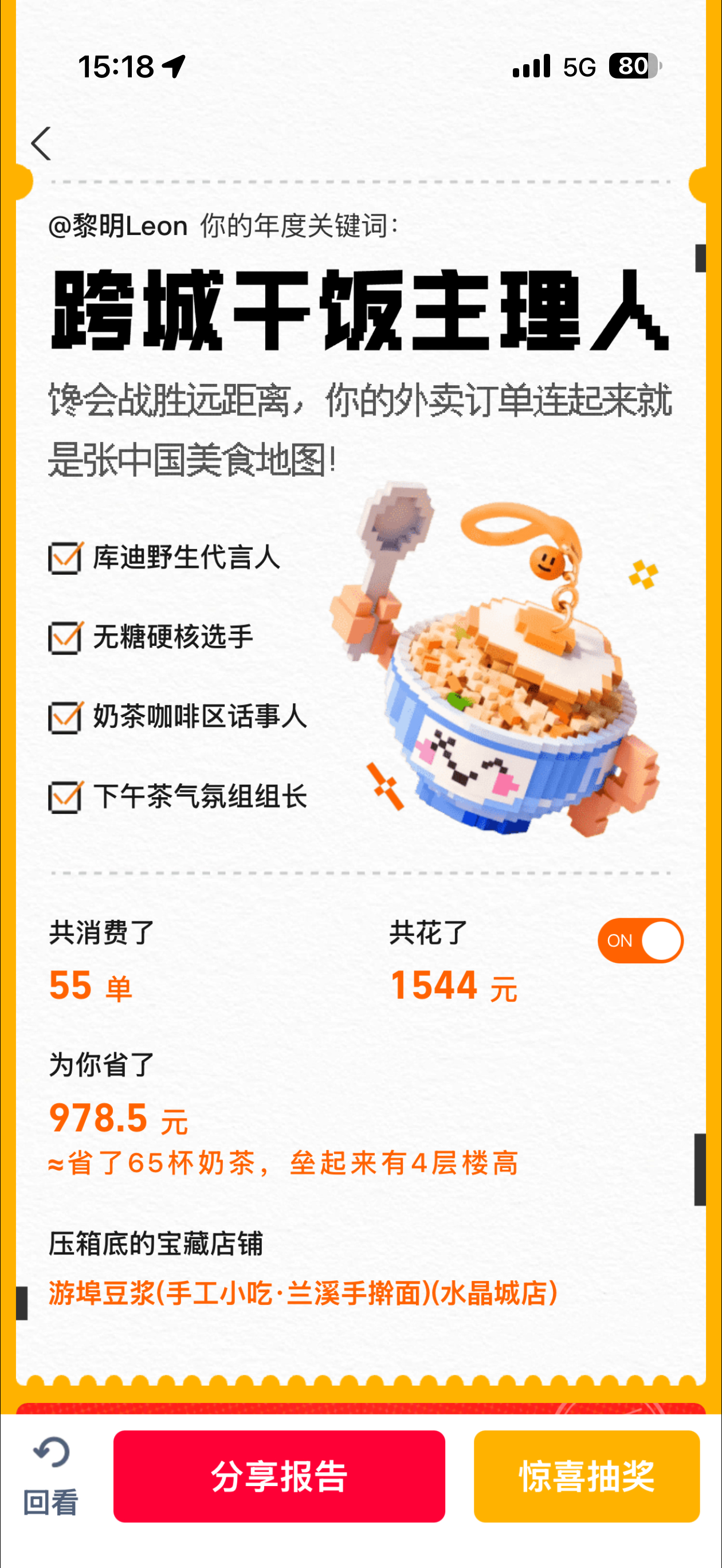 年度报告今年外卖点的不算多基本上都是奶茶咖啡而且美团/饿了么/京东混战基本每家都雨露均沾了朋友们今年花了多少?