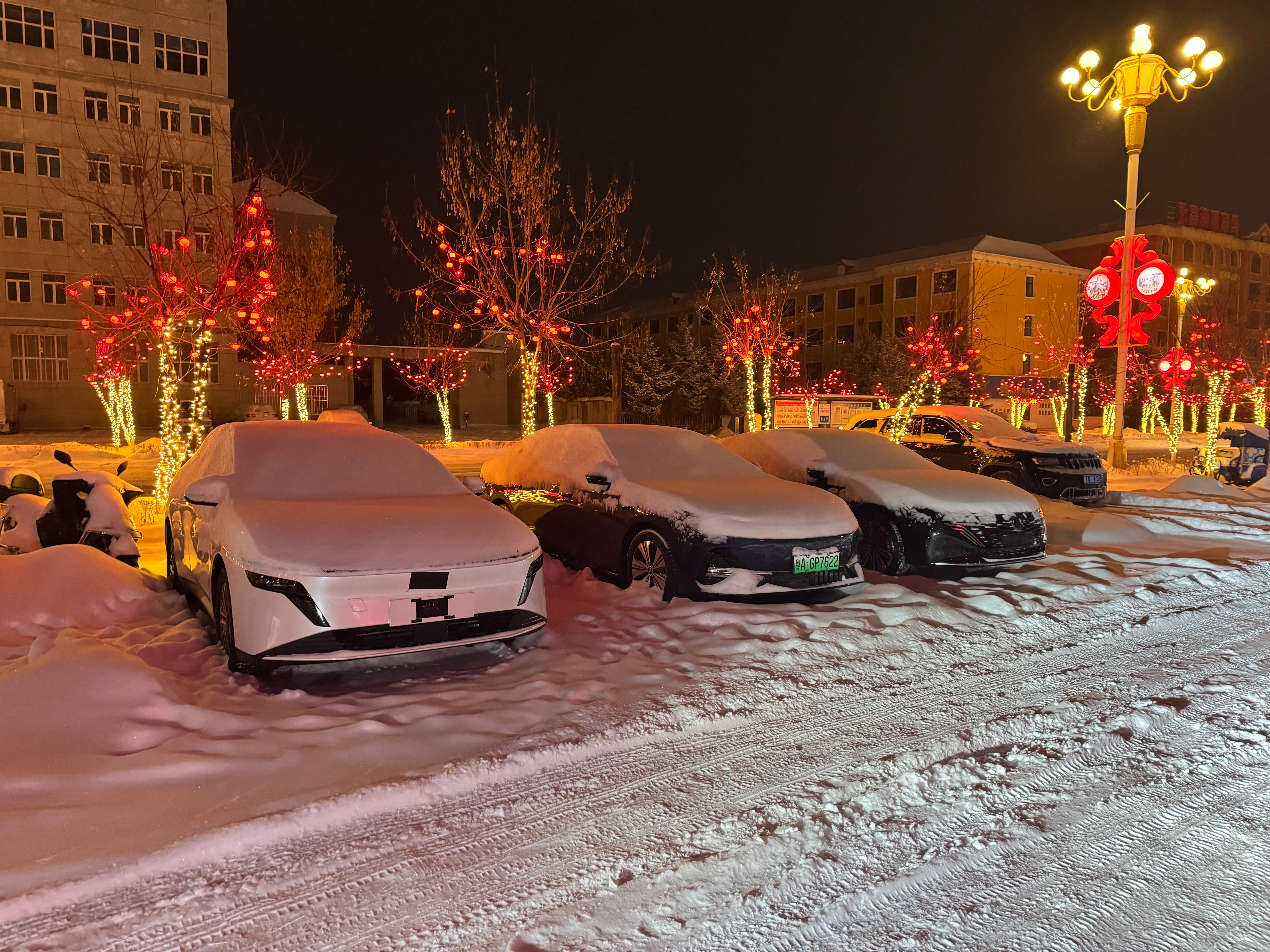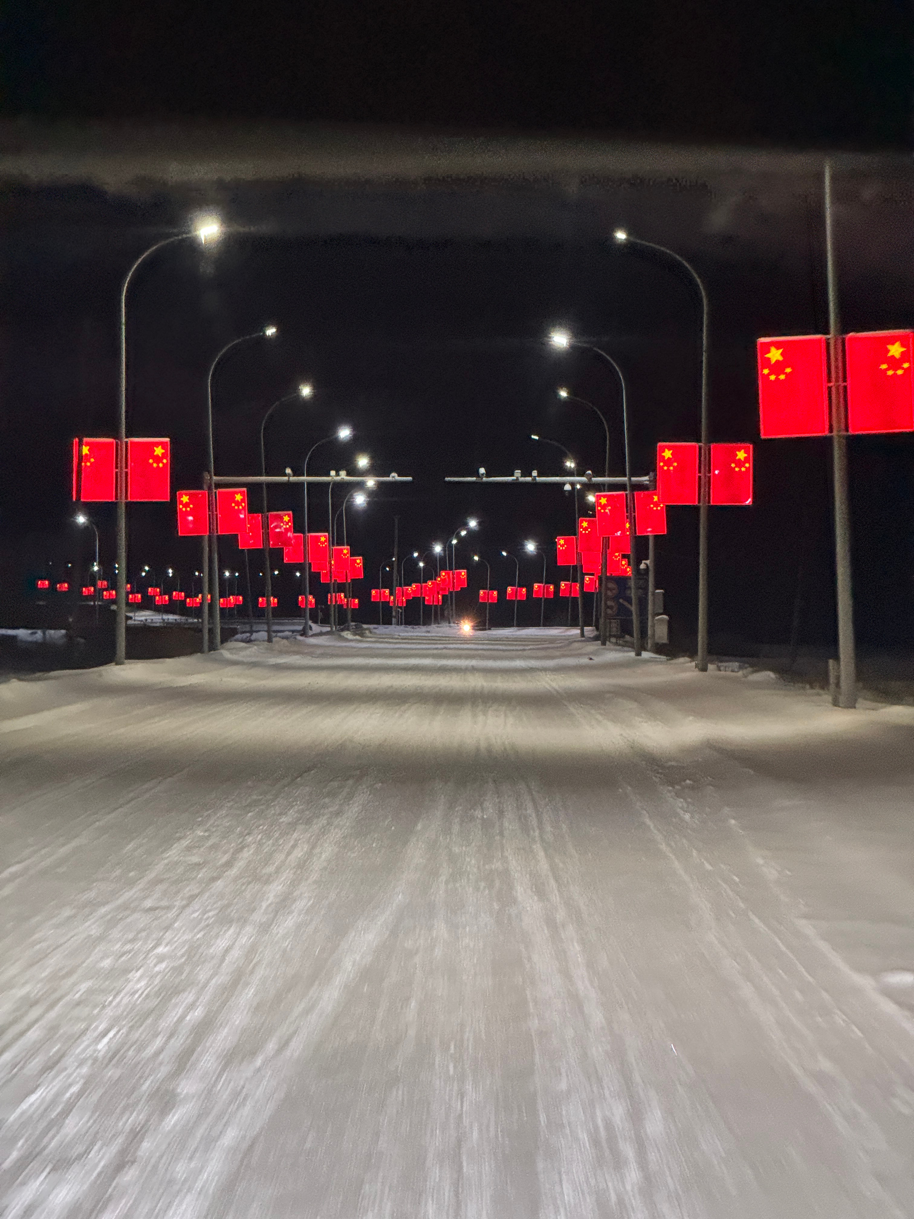 一早从哈尔滨出发开车去黑河,结果大雪高速封了,走了14个小时的国道,全程三四十公里的速度在铺满厚厚的雪和冰的路上嘎悠,眼看还有一百公里就到胜利的终点了!结果经过这个镇子只进不出…不过这小镇真的好漂亮呀,全镇的路都挂满了彩灯,厚厚的雪像雪场初级道~找了个烧烤店吃点东西明天出发吧
