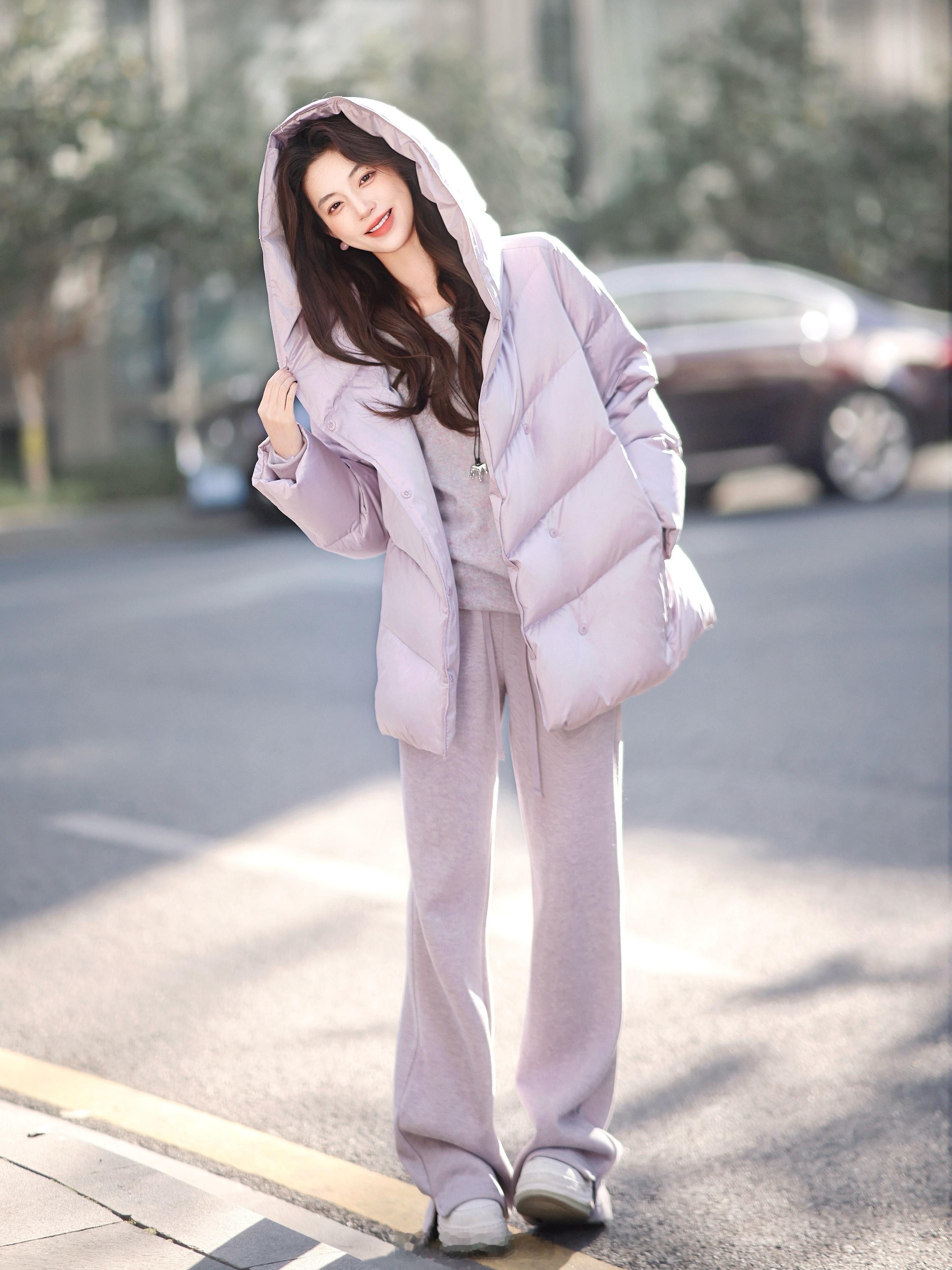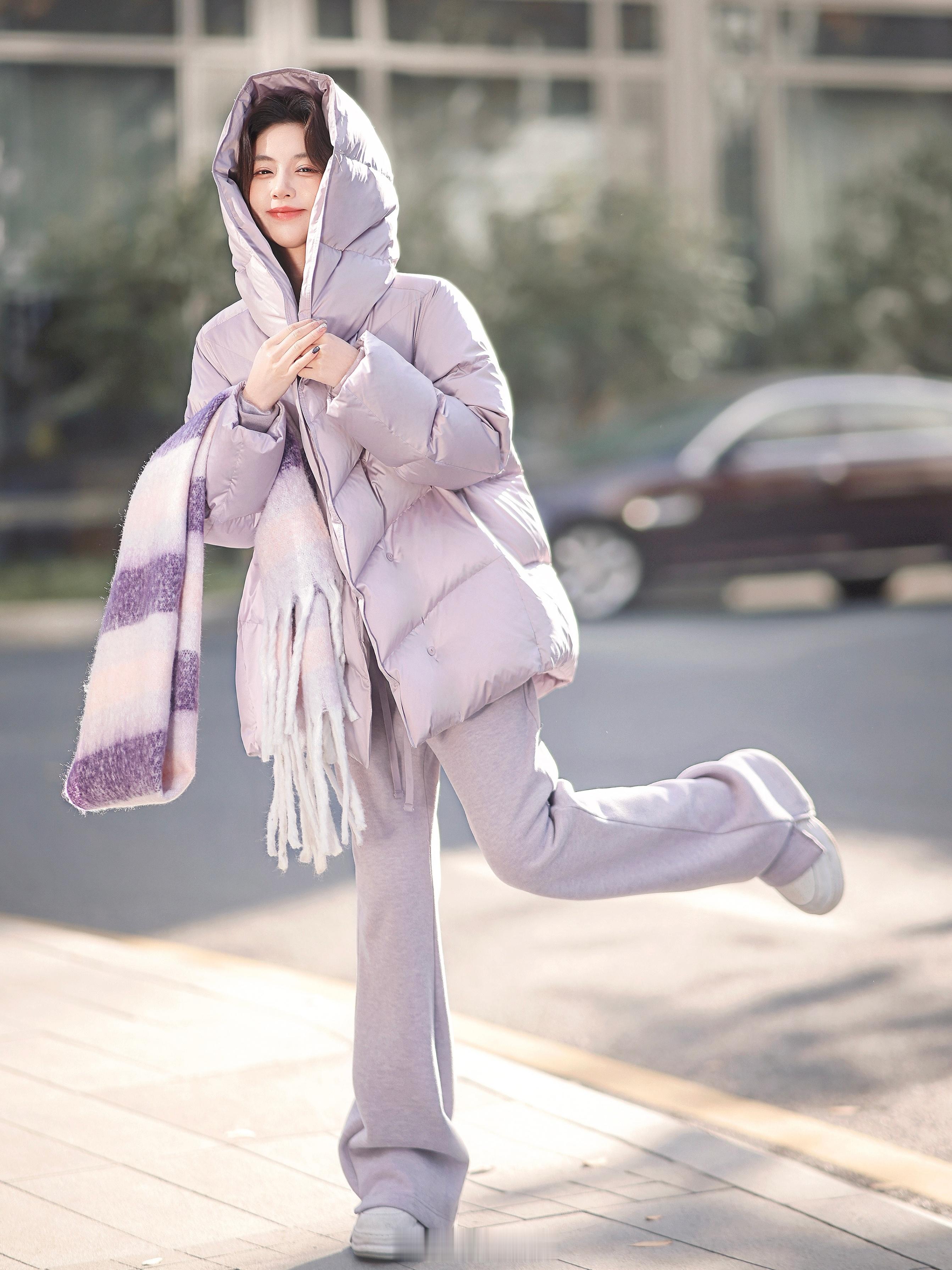 软软的香芋紫羽绒服 这谁能拒绝啊90白鹅+面包廓形 暖暖的裹住身体好温柔好浪漫好舒服~