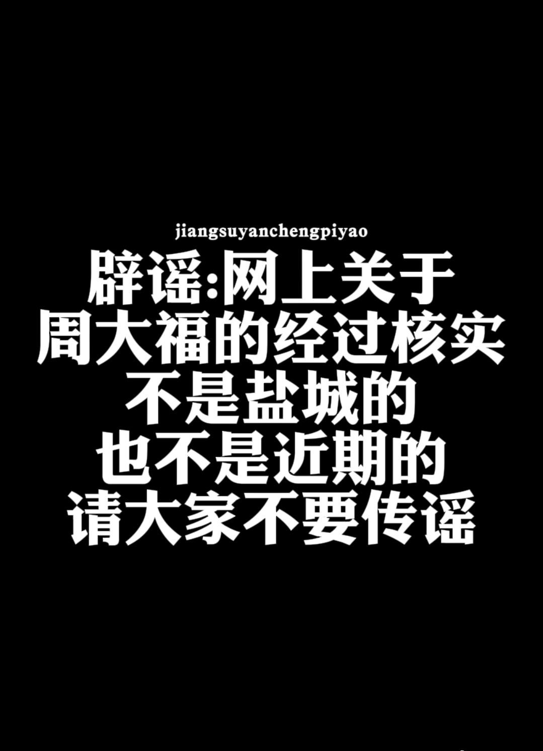辟谣:网上关于 周大福的经过核实 不是盐城的 也不是近期的 请大家不要传谣