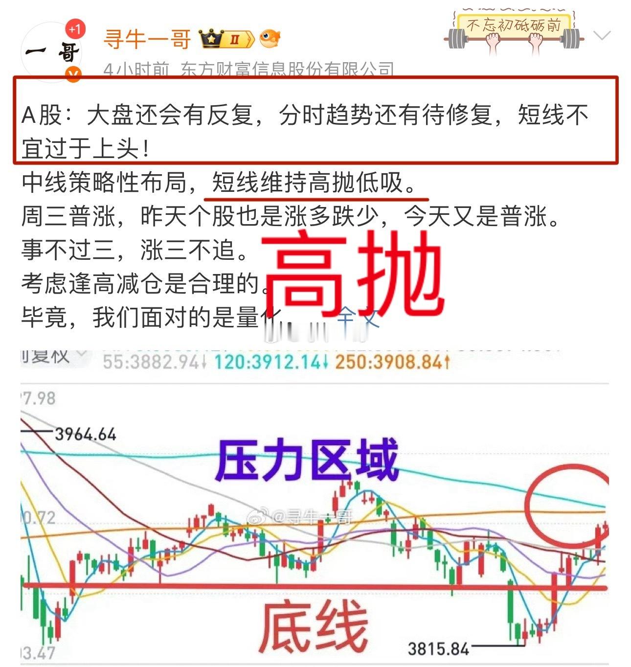 A股:今天开盘前,有朋友在评论席问,一哥答,如果涨到3900点上方,考虑高抛。尾盘的时候,场内不少高标个股跳水!沪深两市成交金额1.72万亿,比昨天略有放大,大约是700亿左右。虽然成交金额比昨天放大了,但还是属于相对较低水平。盘中最高点是3902点,这是早盘的最高点。早盘收盘3899点,最终收盘是3890点,大盘下午跌了9个点。创业板早盘最高点是3157点,最终收盘是3122点,跌了33点。早盘收盘后,一哥发现成交金额只有万亿水平。一哥感觉今天不能再好了,午评时再次提醒逢高减仓。大盘是大盘,个股是个股。今天上涨个股超过了4200只,下跌个股只有850余只,红肥绿瘦。实际上,周三的时候,一哥讲过,市场【超跌个股反弹】已经发展为趋势。所以,市场成交量不算理想,大盘表现也不咋滴,但个股普涨。昨天收盘后,一哥讲过,如果创业板今天守住了3100点,下周还有可能再次跌破3100点。下周,一起来验证个人观点,仅供交流,不构成投资建议!理财有风险,投资需谨慎!a股今日看盘股票财经a股行情