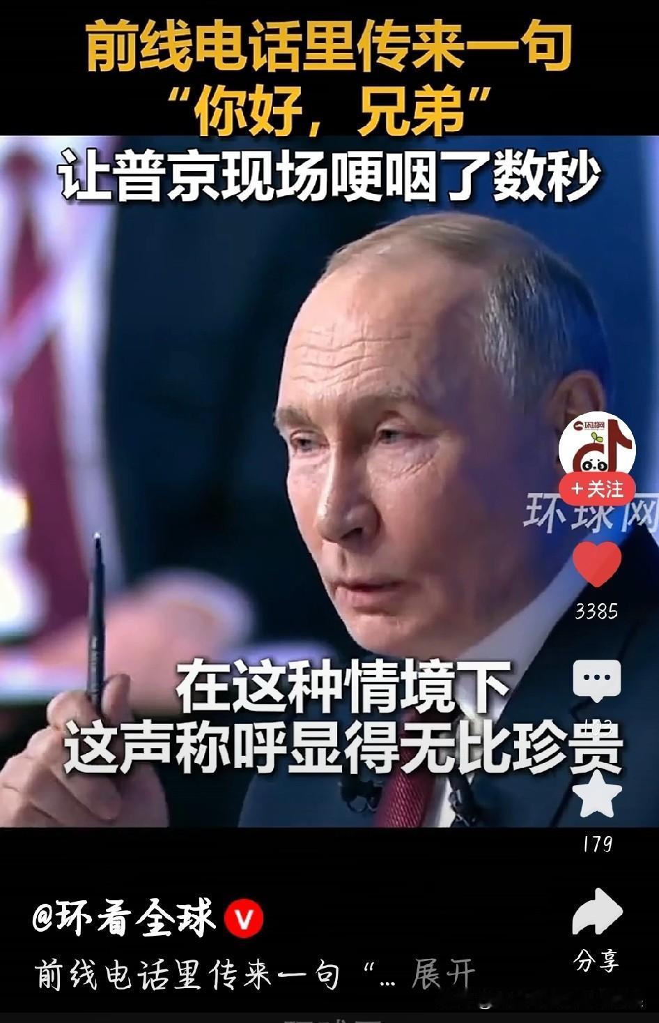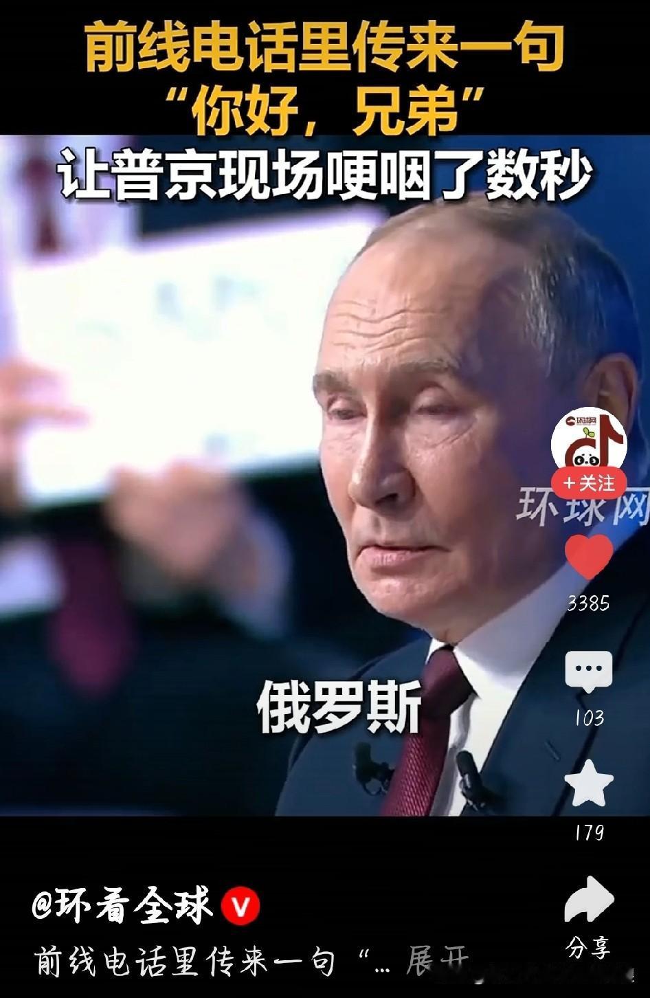 破防了!前线一声“兄弟”,让硬汉普京当场哽咽 刷到普京年度盘点节目这段,是真让人动容! 12月19号节目里,普京聊起和顿巴斯前线指挥官的电话,说电话那头突然传来一句“你好,兄弟”。就这简单三个字,让向来强硬的他当场哽咽了好几秒。 普京说,男人之间常这么称呼,但从浴血奋战的军官嘴里说出来,格外不一样,这份情谊太珍贵了。 前线士兵拼着命保家卫国,总统记着他们的付出,这声“兄弟”藏着的是信任和牵挂。 铁汉也有柔情面,这份军民同心的画面,真的太好哭了! 普京谈前线兄弟哽咽 硬汉的柔情瞬间 普京承认自己正在恋爱中 前线电话一声兄弟 普京谈起时哽咽