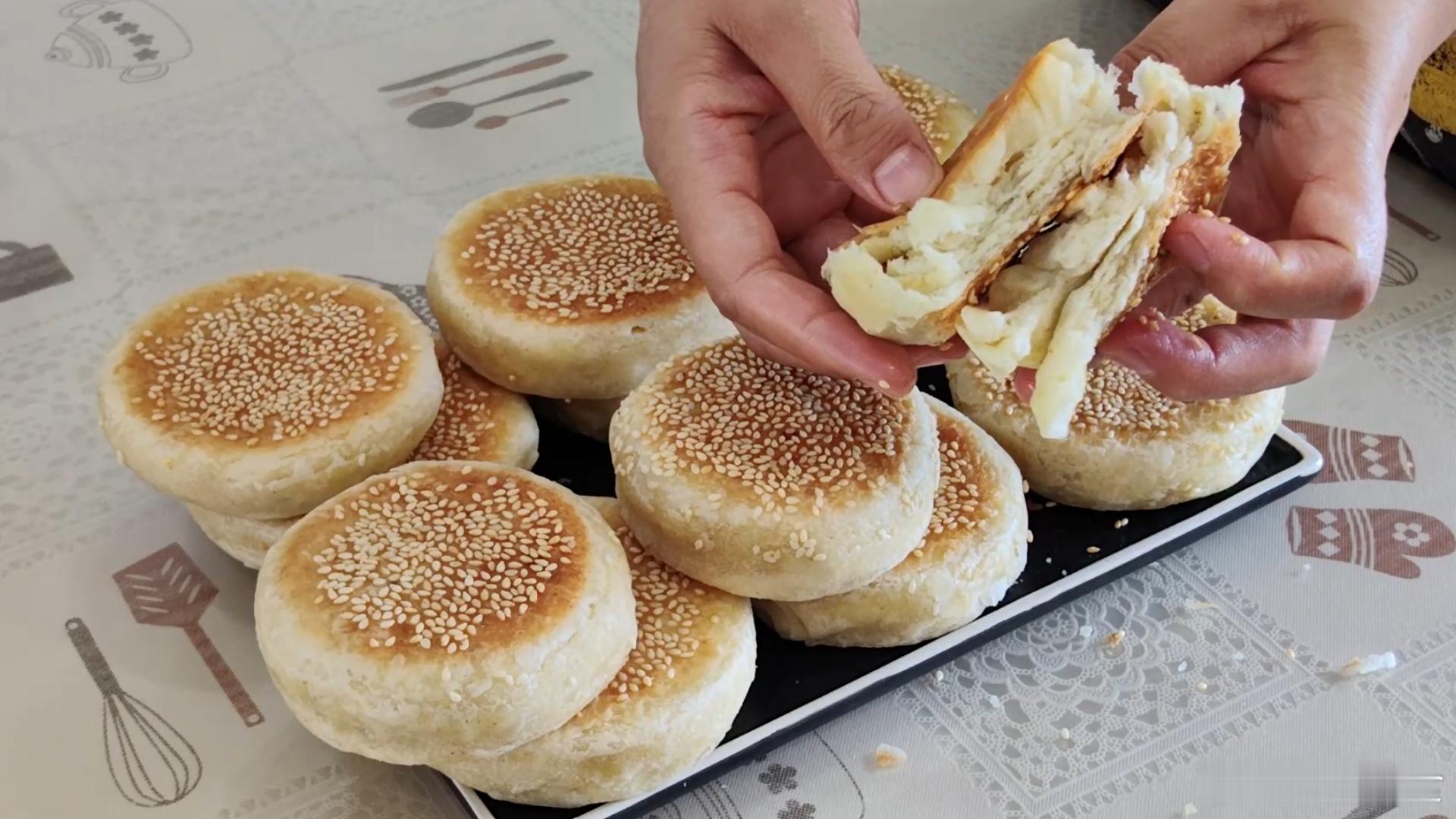 椒盐烧饼家常做法(多层酥脆版)材料:中筋面粉 300克温水 180毫升酵母 2克(可选,做半发面更松软)食用油 适量椒盐(花椒粉+盐,比例约2:1)白芝麻 少许(装饰用)步骤:和面:面粉加酵母(如用)、温水揉成光滑面团,盖保鲜膜醒发30分钟(若做死面则省略发酵,直接揉匀醒20分钟)。制油酥(可选更酥):小碗中混合2勺面粉 + 3勺热油 + 1–2勺椒盐,搅匀成油酥。擀面叠层:面团分剂子,擀成长方形薄片,均匀刷一层油或油酥,撒上椒盐。卷起再盘:从长边卷起成长条,再盘成螺旋状,压扁后擀成圆饼(约0.8cm厚)。烤/烙制:烤箱版:表面刷水,沾白芝麻,放入预热200℃烤箱,上下火烤15–18分钟至金黄。平底锅版:中小火烙至两面鼓起、金黄酥脆,约8–10分钟。出炉趁热吃!外酥里软,椒香扑鼻,层层分明。💡小贴士:多折叠一次,层次更丰富;椒盐可按口味调整麻咸度。