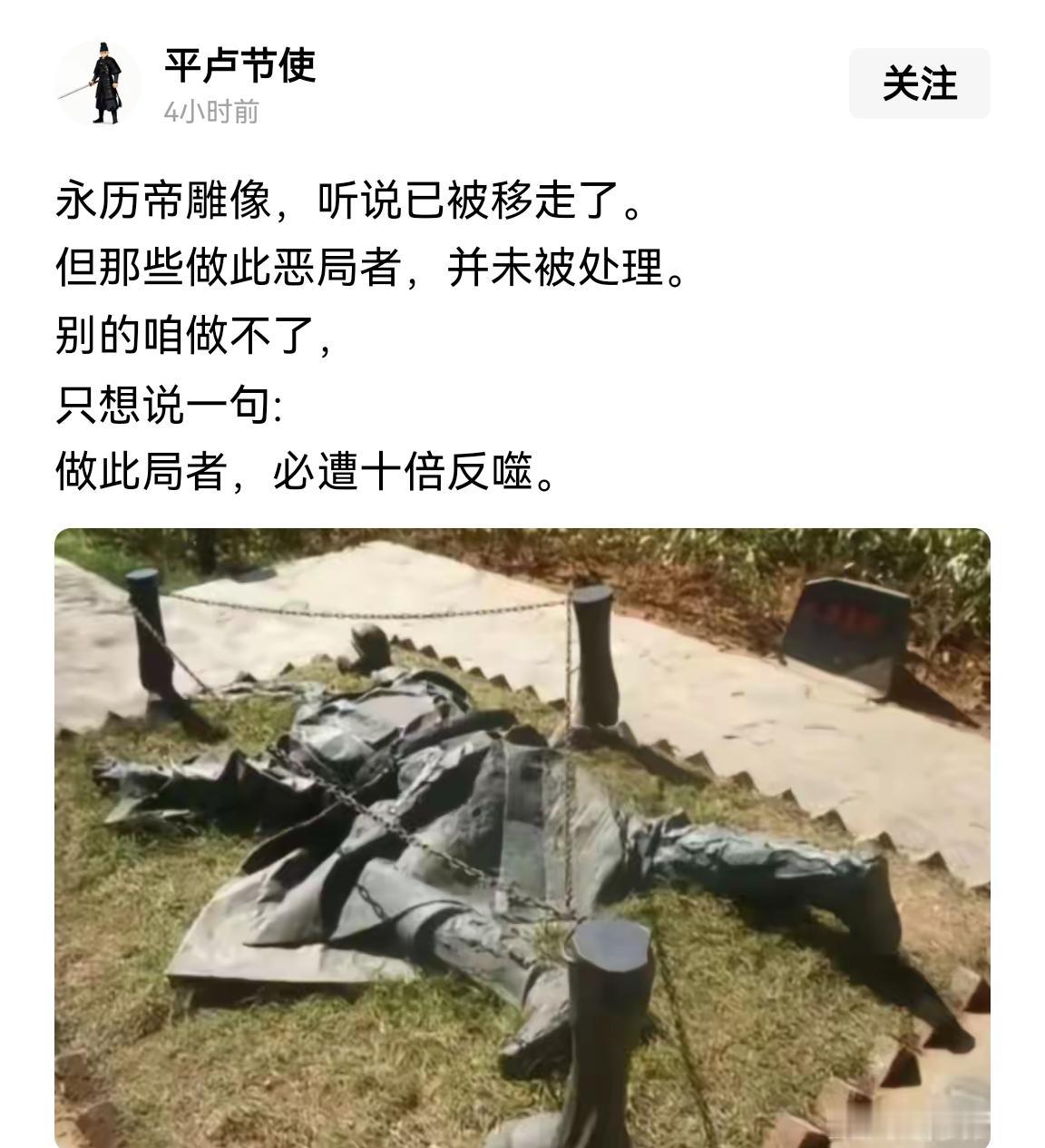 为什么清朝不能善待永历帝呢? 清朝善不善待永历帝大家其实并不是最重要,因为清朝最后已经成为了半封建半殖民社会。 清朝再黑暗,再残暴,再没人性,毕竟已经被英雄的革命先烈们打败了推翻了。 大家更为关心的是:现在到底是什么一股力量,掌控力如此之恐怖。 它们能让永历帝扒在泥地里,用铁链锁住再踏上三个马蹄。 还能让“大汉奸们”纷纷建起纪念馆立起了雄伟的雕像。 所以比起清朝不能善待永历帝,我们更担心那群“精神旗人”是不是已经悄悄的渗透进了我们的新中国。 请大家理性思考。