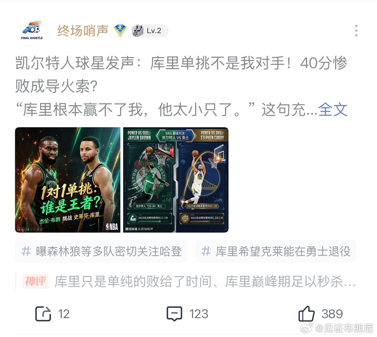 继续清算!杰伦布朗:“库里单挑根本赢不了我”!