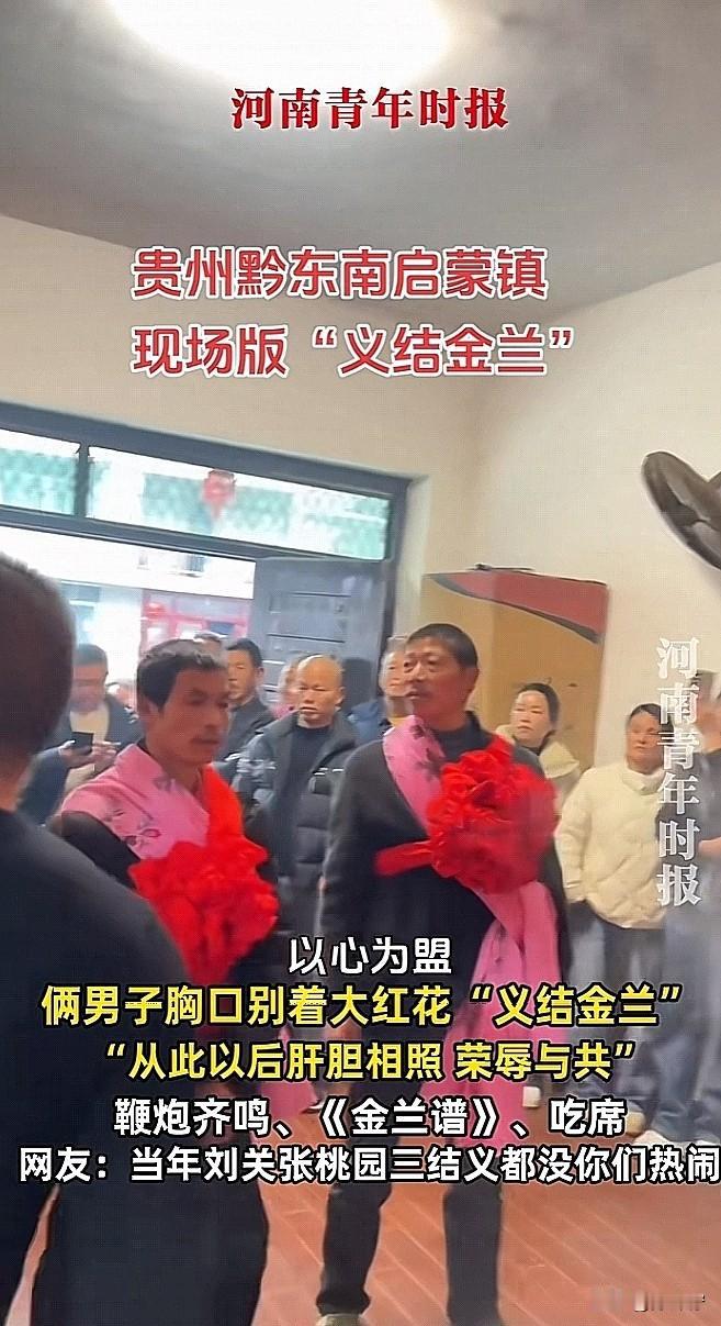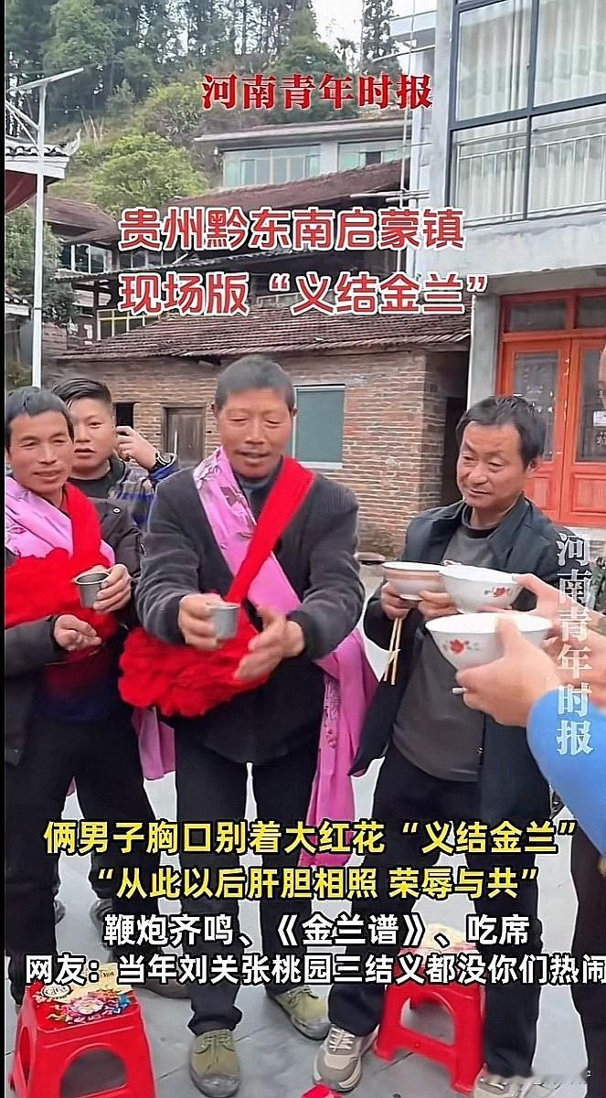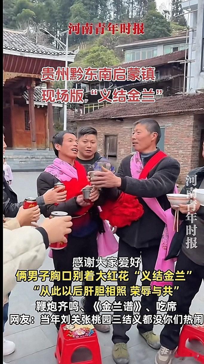 贵州俩大哥“义结金兰”,胸口都戴着大红花,当着一众乡亲的面郑重结拜,一句“从此以